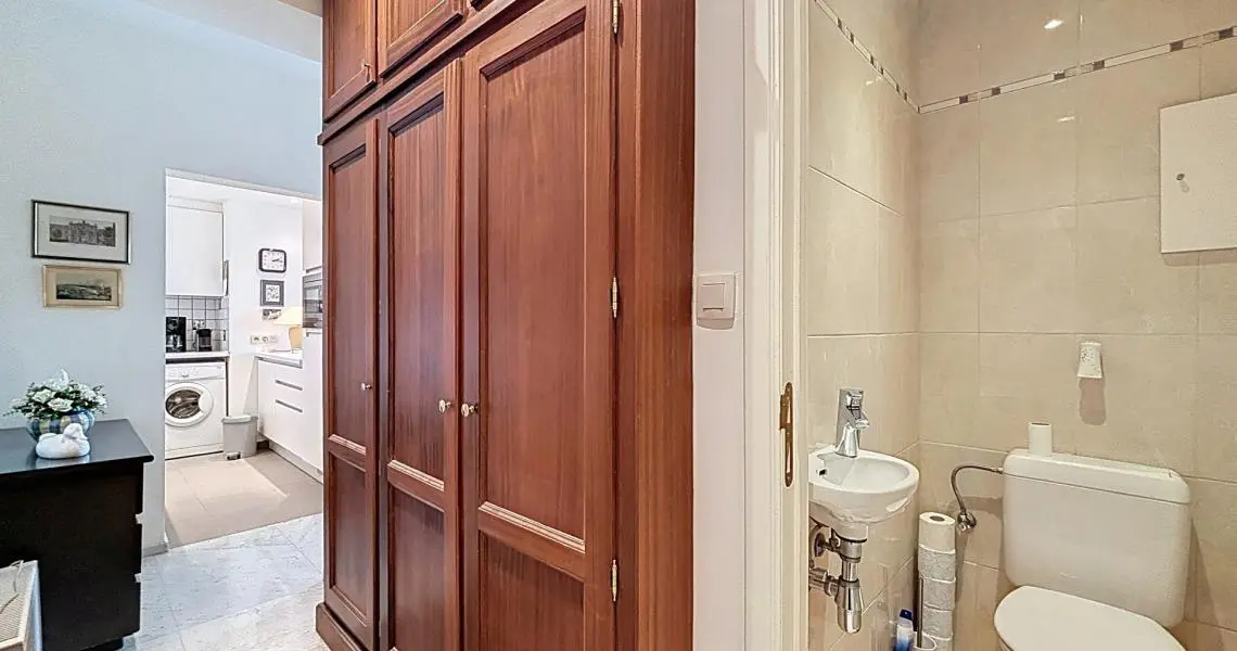 À proximité immédiate des transports en commun (bus et métro Hankar), des commerces de quartier, écoles et autres commodités, cet appartement constitue un cadre de vie agréable, à la fois pratique et verdoyant.