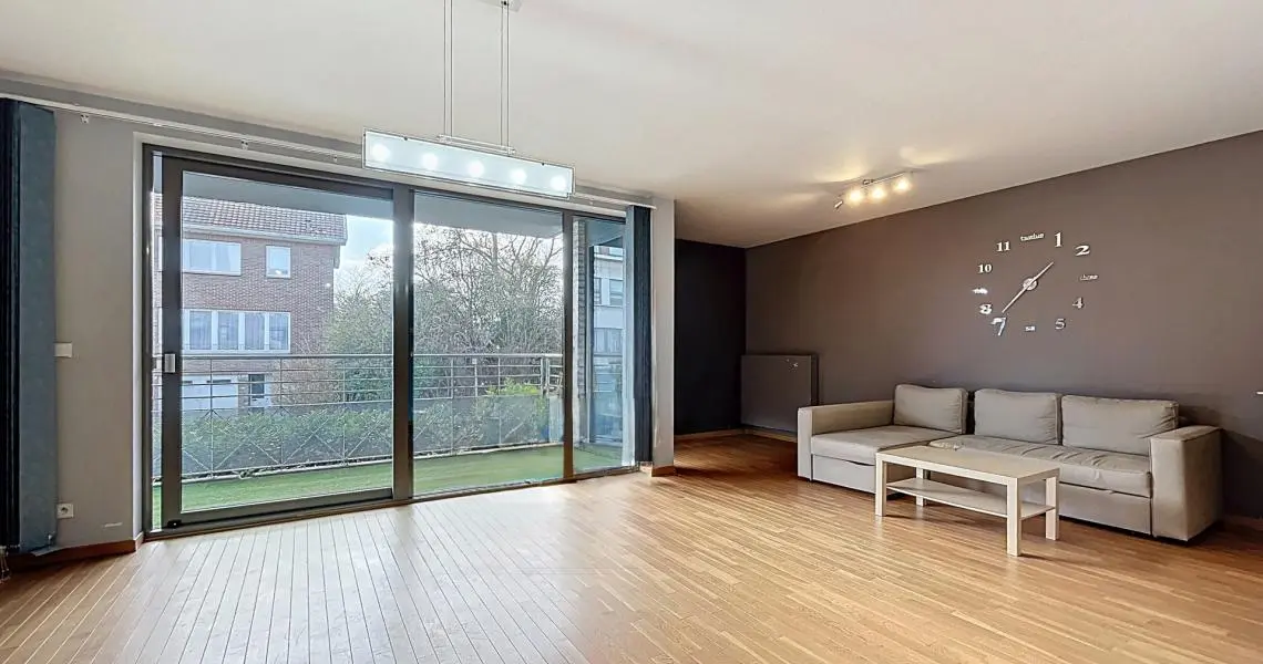 MYIMMO Auderghem vous propose un magnifique appartement 2 chambres idéalement situé dans un quartier vert et résidentiel recherché, à proximité immédiate du métro Delta, des lignes de bus STIB, de l’hôpital Delta – CHIREC, des campus universitaires (ULB, VUB), des commerces de proximité, ainsi que d’un accès aisé au Ring et à l’E411. Situé dans un immeuble moderne et bien entretenu, l’appartement développe une superficie généreuse de +/- 112 m² et offre un agencement confortable et lumineux. Il se compose d’un vaste séjour de +/- 36 m² intégrant salon et salle à manger, ouvert sur une cuisine équipée de +/- 12 m², idéale pour recevoir. L’espace nuit comprend deux chambres de +/- 14 m² et +/- 16 m², une salle de bain avec bain et douche séparés, ainsi que deux WC distincts et une buanderie. Une agréable terrasse bien orientée de +/- 12 m² prolonge l’espace de vie et permet de profiter pleinement des beaux jours. Une grande cave vient compléter l’ensemble. Un emplacement de parking intérieur est proposé en supplément pour 100 €/mois. L'appartement sera complètement repeint avant votre entrée. Un bien spacieux et parfaitement situé, offrant confort, accessibilité et qualité de vie au cœur d’Auderghem. À visiter sans tarder. D’autres biens disponibles sur notre site www.myimmo.be