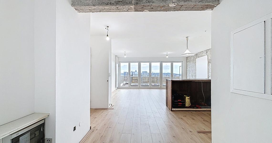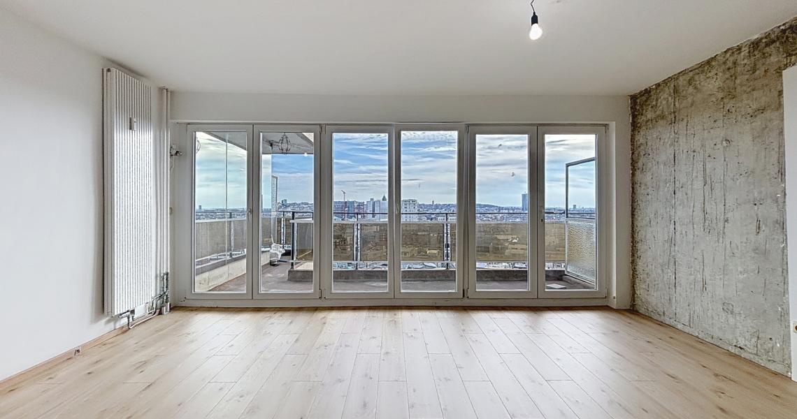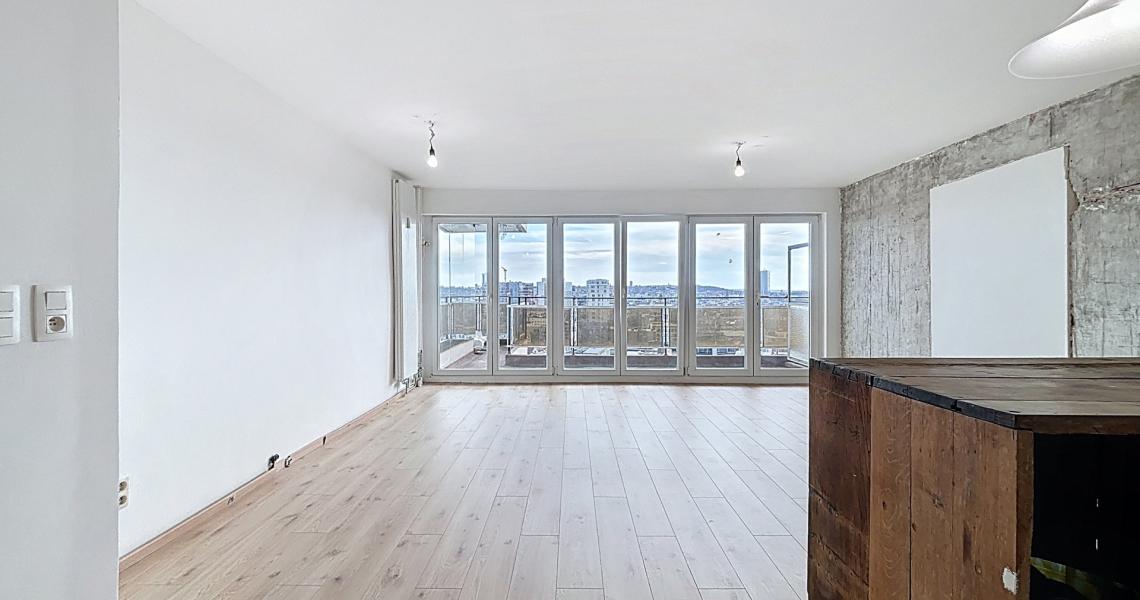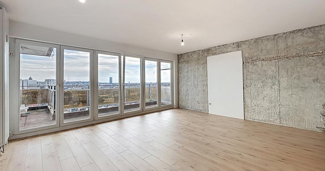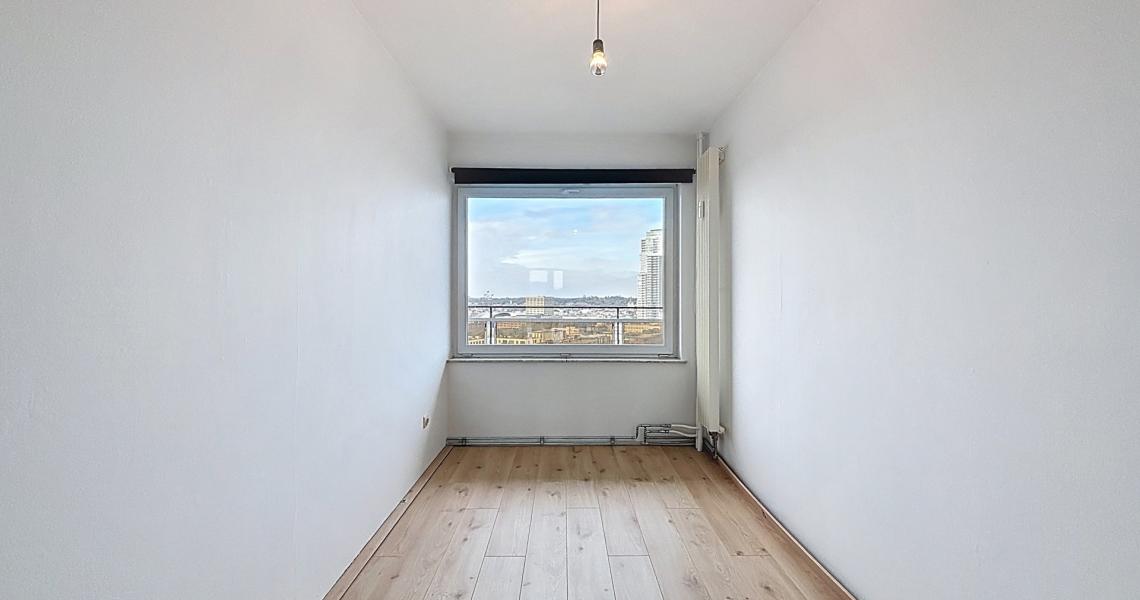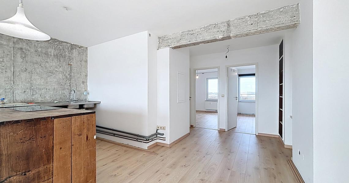 MYIMMO Etterbeek a le plaisir de vous présenter ce splendide appartement renové, offrant un panorama traversant exceptionnel sur Bruxelles. Dès l’entrée, vous découvrirez un vaste espace de vie, idéal pour aménager un salon et une salle à manger confortables. La pièce exposée plein sud, est baignée de lumière naturelle tout au long de la journée, créant une atmosphère chaleureuse et accueillante. L’espace de vie dispose d’une cuisine semi équipée ( plaques à induction, lave-vaisselle, four) pour un confort optimal. Vous profiterez également d’une grande terrasse de +/- 10 m², offrant une vue imprenable sur la ville, un véritable havre de paix en hauteur. Côté nuit, l’appartement dispose de deux agréables chambres : une première de +/- 9 m² et une seconde de +/- 14 m² avec accès à une terrasse arrière. Ces deux chambres bénéficient d’une vue dégagée unique sur le canal de Bruxelles et sur l’Atomium. Vous bénéficierez également d'une salle de douche moderne, équipée d’une douche à l’italienne et de toilette. Vous disposerez également d’une cave, d’un local à vélos au sein de l’immeuble, ainsi que de la possibilité de louer une place de parking dans un box fermé pour 150 € supplémentaires. Ce bien rare, allie charme, fonctionnalité et situation géographique privilégiée, à proximité des transports, commerces et espaces verts. N'attendez plus pour découvrir ce véritable coup de coeur ! Plus de biens sur myimmo.be