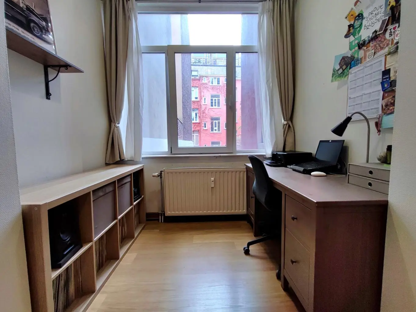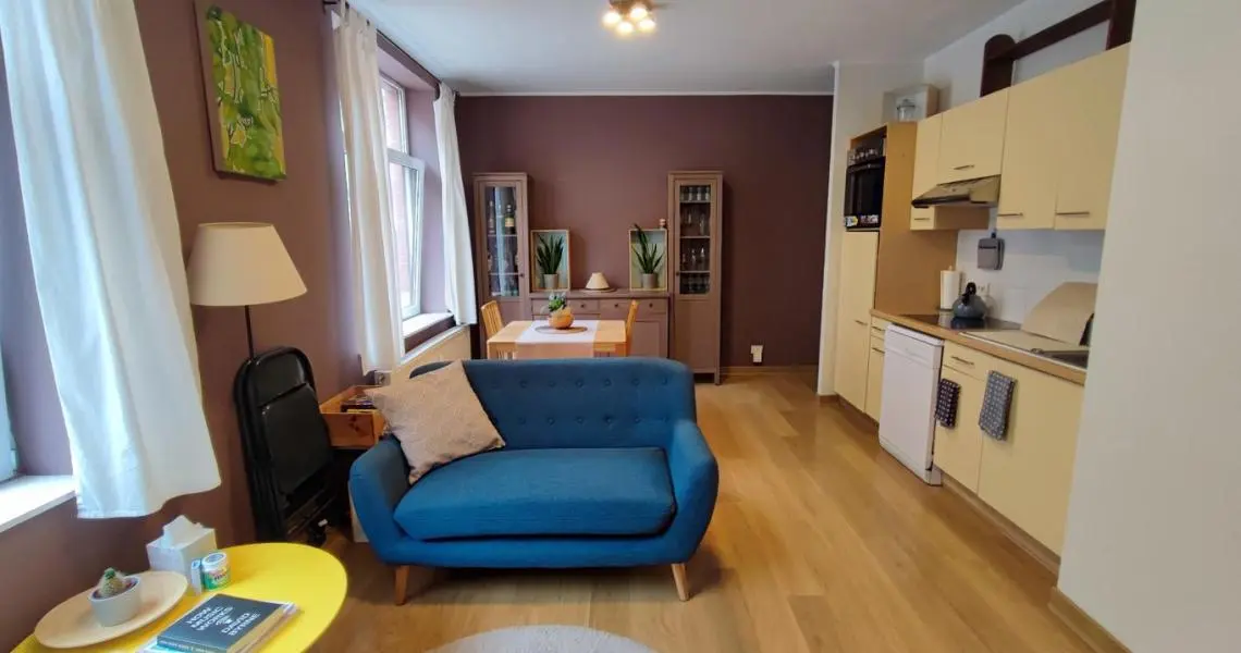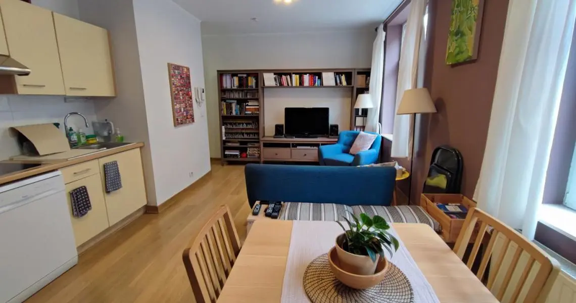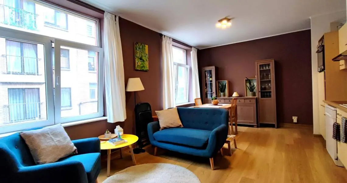 Proximité Centre Ville - Bel appartement partiellement meublé d'une superficie totale de +/-55m² situé à deux pas du métro Louise, comprenant un hall d'entrée, une toilette séparée, un salon/salle à manger avec cuisine murale équipée (frigo, four, taque, lave vaisselle, hotte à filtre) de +/-25m², une chambre de +/-13m² avec coin bureau de +/-5m², une salle de bains de +/-3m² (machine à laver). Un emplacement en cave. Charges : une provision de 270€/mois pour le chauffage et l'eau ainsi que les communs (ascenseur, nettoyage, entretien et électricité des communs).