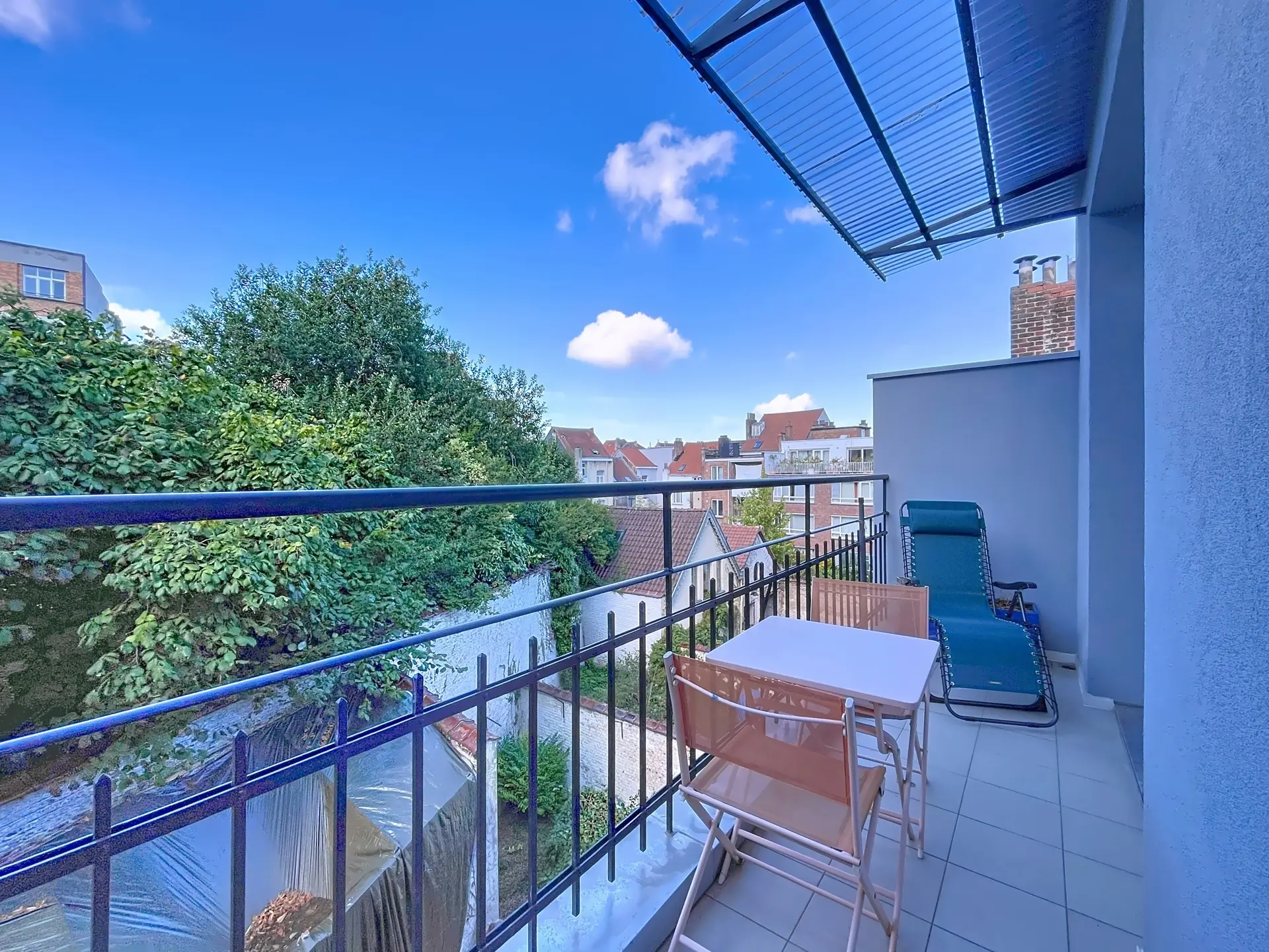 L’appartement se compose comme suit : Une agréable pièce de vie de ± 32 m² comprenant le séjour et une salle à manger avec une cuisine ouverte super-équipée de ± 5 m². Une terrasse de de ± 6 m² orientée Sud-Ouest est accessible par le séjour et la cuisine. Le hall de nuit dessert ensuite deux chambres de ± 12 m² et ± 10 m². Une salle de douche comprenant une douche, un meuble lavabo, un wc séparé ainsi qu'un espace pour machine à laver et séchoir. Une cave privative est également incluse.