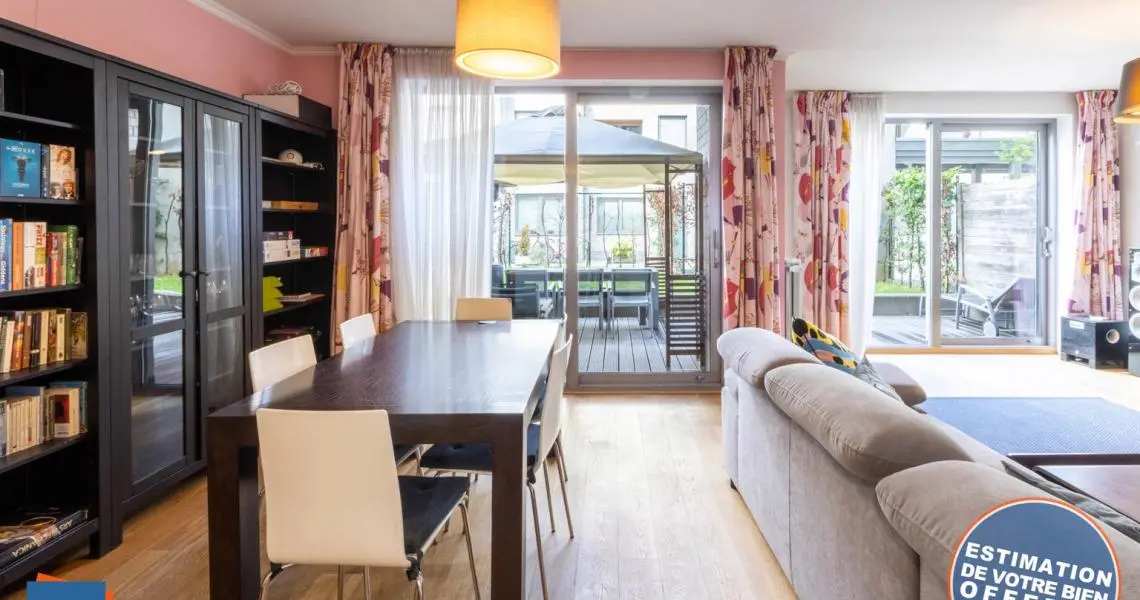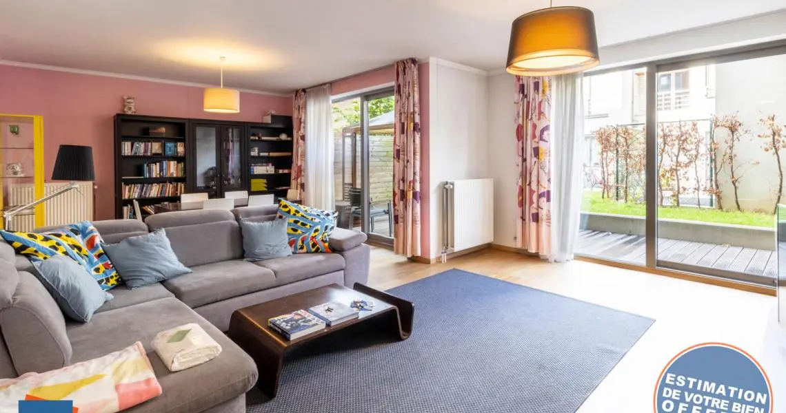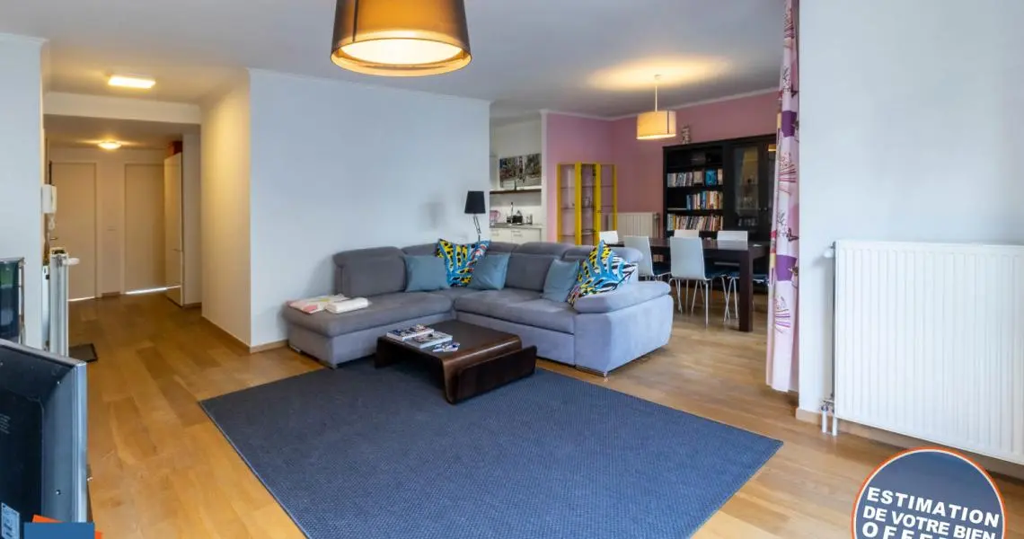 Quartier européen / Place Jourdan - MYIMMO Etterbeek vous propose un splendide et spacieux appartement MEUBLE 2 chambres de +/- 100m² qui se compose comme suit : Un hall d'entrée qui vous emmènera à une lumineuse et spacieuse pièce à vivre de +/- 35m² donnant accès à un magnifique espace extérieur de +/- 55m2 ainsi qu'à une belle cuisine super équipée semi-ouverte. Vous trouverez également 2 belles et grandes chambres dont une de +/- 16m² avec un coin dressing et une plus petite de +/- 14m² ainsi qu'une belle salle de bain avec une machine à laver incluse. Enfin vous trouverez un espace rangement ainsi qu'une toilette séparée. Le bien inclut une cave ainsi qu'un emplacement de parking obligatoire au prix de 100€/mois supplémentaire. Idéalement situé à proximité de la place Jourdan et des institutions européennes, le quartier vous desservira de nombreux transports en commun comme les lignes de bus 34,60,59,80 à l'arrêt "Etangs" mais vous serez aussi à 10 minutes à pied de la gare de "Germoir" ainsi que de la gare "Bruxelles-Luxembourg".