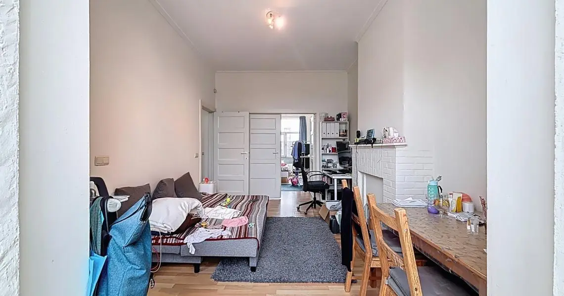 Séjour lumineux d’environ 15 m² avec un espace de rangement attenant (±2 m²)