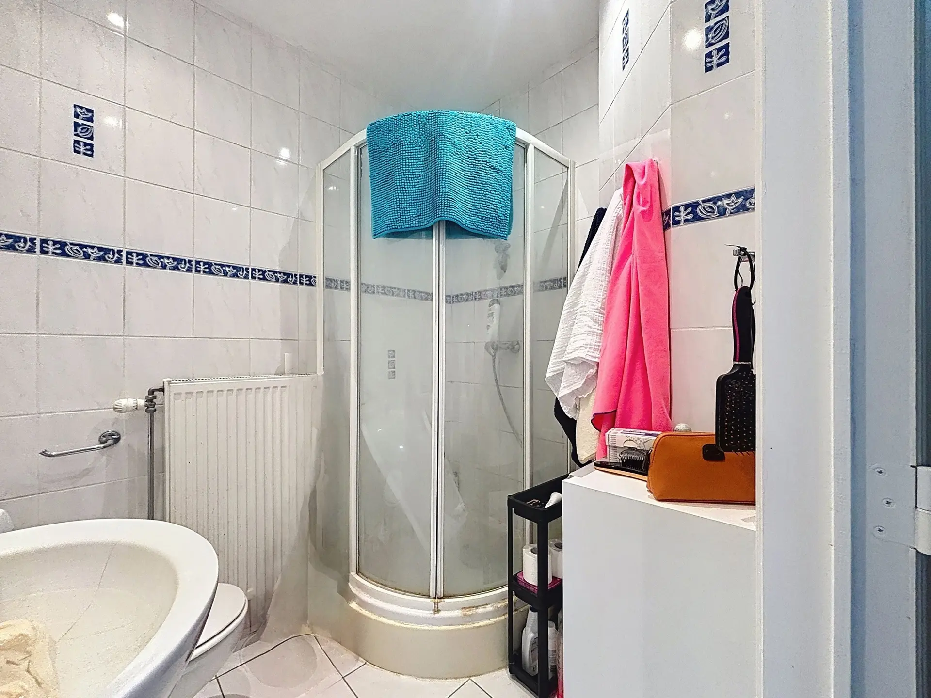 Salle de douche fonctionnelle avec WC, qui sera rafraîchie avant le début du bail (nouveau lavabo et nouvelle cabine de douche)