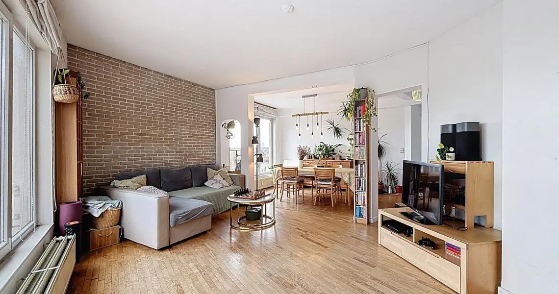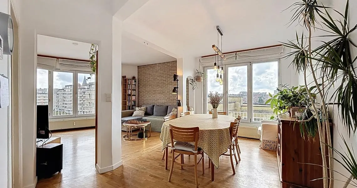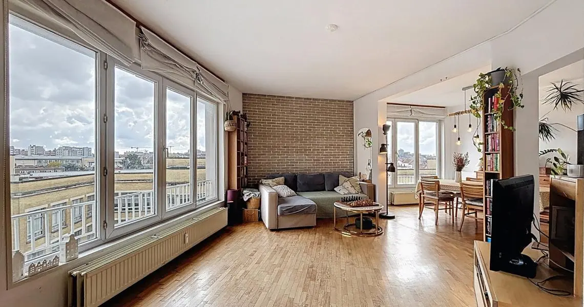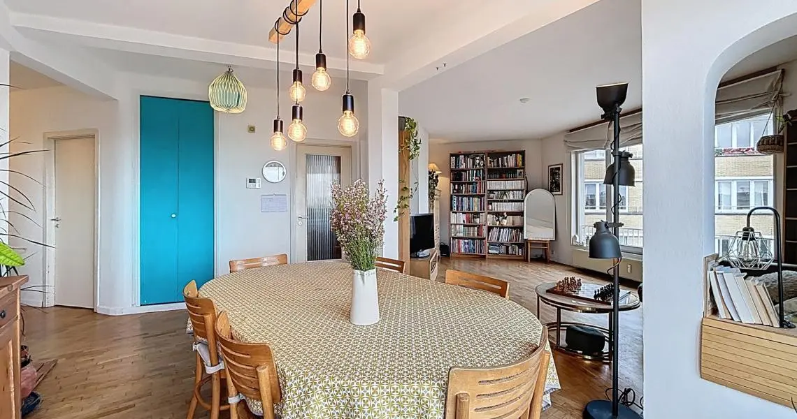 MYIMMO ETTERBEEK vous propose en exclusivité ce superbe appartement 2 chambres de 109m2 brute (surf.PEB) situé entre Thieffry et La Chasse, à deux pas de la Place du Roi Vainqueur. Niché au 6ᵉ et dernier étage avec ascenseur, il offre un cadre de vie lumineux et paisible dans un quartier recherché.