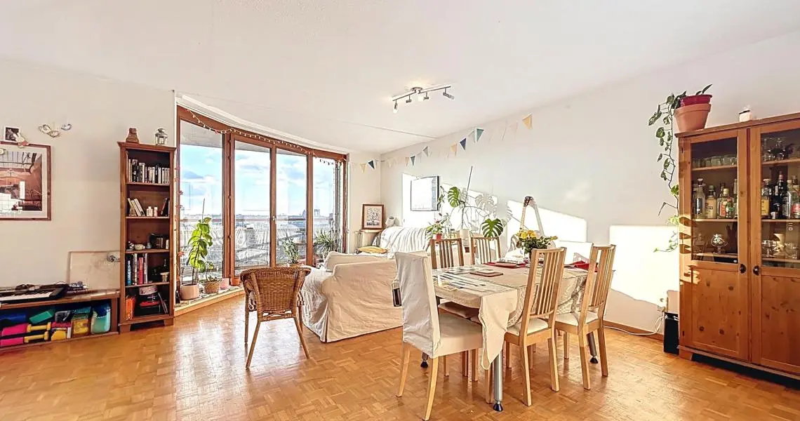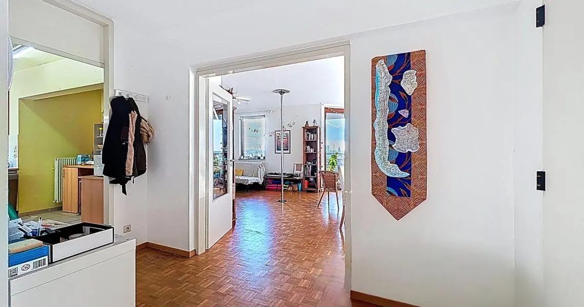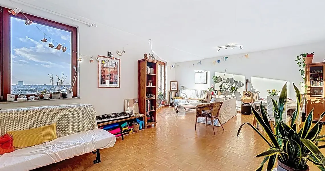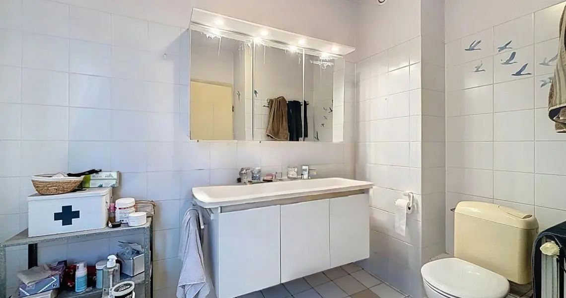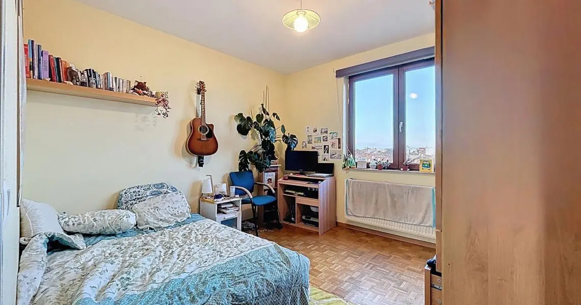 Perché au 7ᵉ étage d’un immeuble de 2001, l’appartement s’ouvre sur un hall accueillant avec porte blindée et toilette séparée. Vous découvrirez ensuite un superbe living de 45 m², baigné de lumière. Celui-ci se prolonge par une terrasse orientée sud-ouest offrant une vue agréable totalement dégagée sur la ville. La spacieuse cuisine équipée et fonctionnelle, ravira les amateurs de confort.