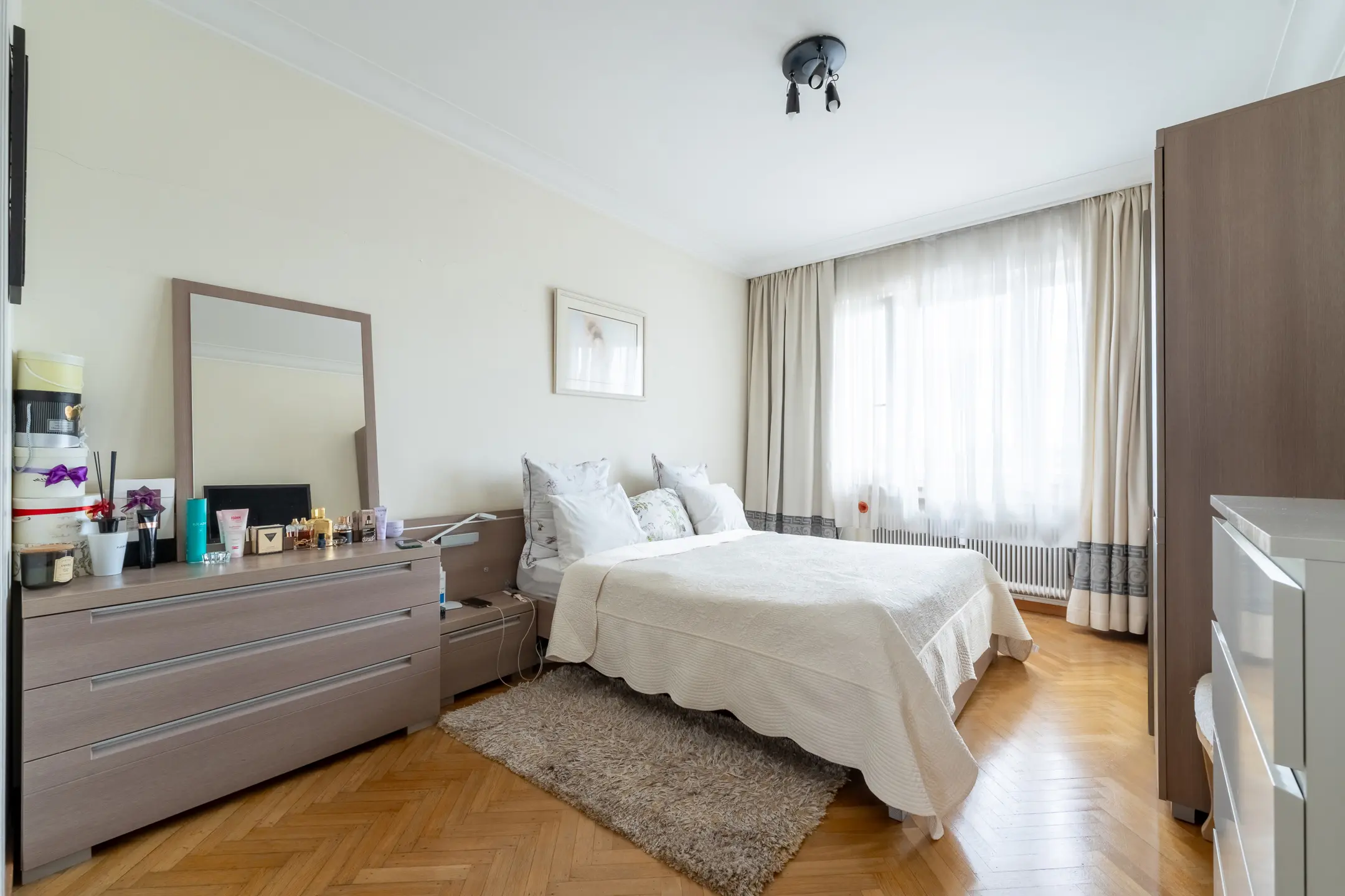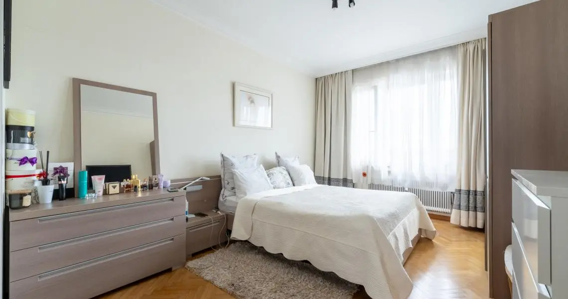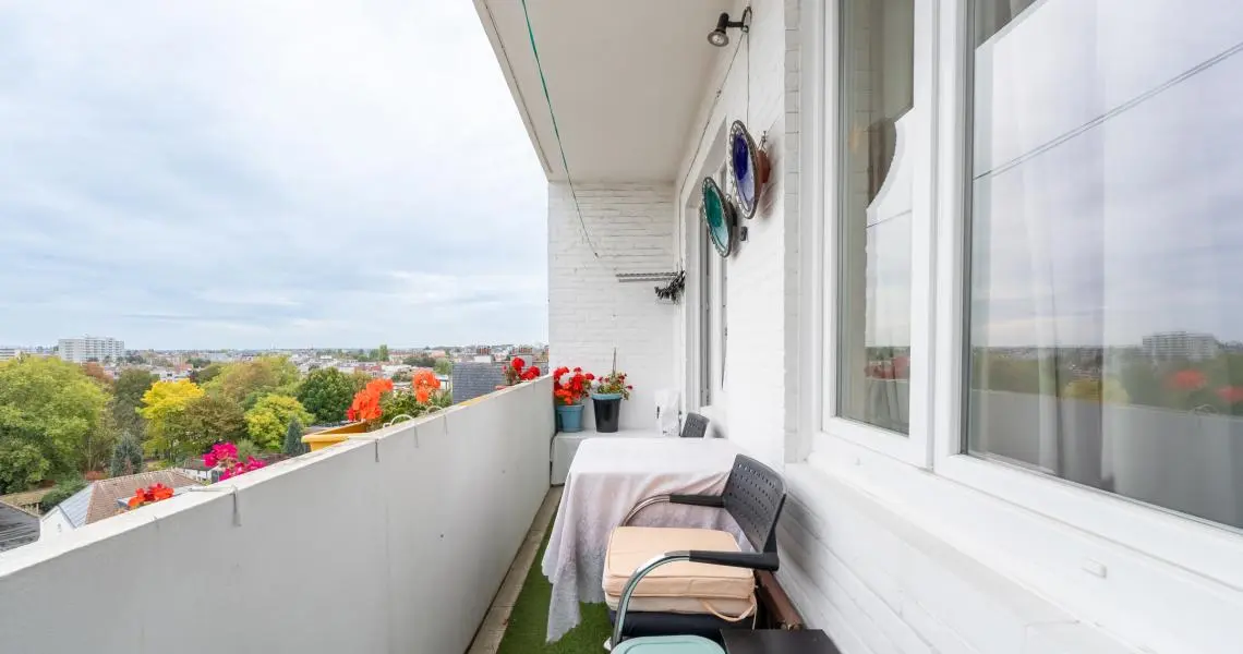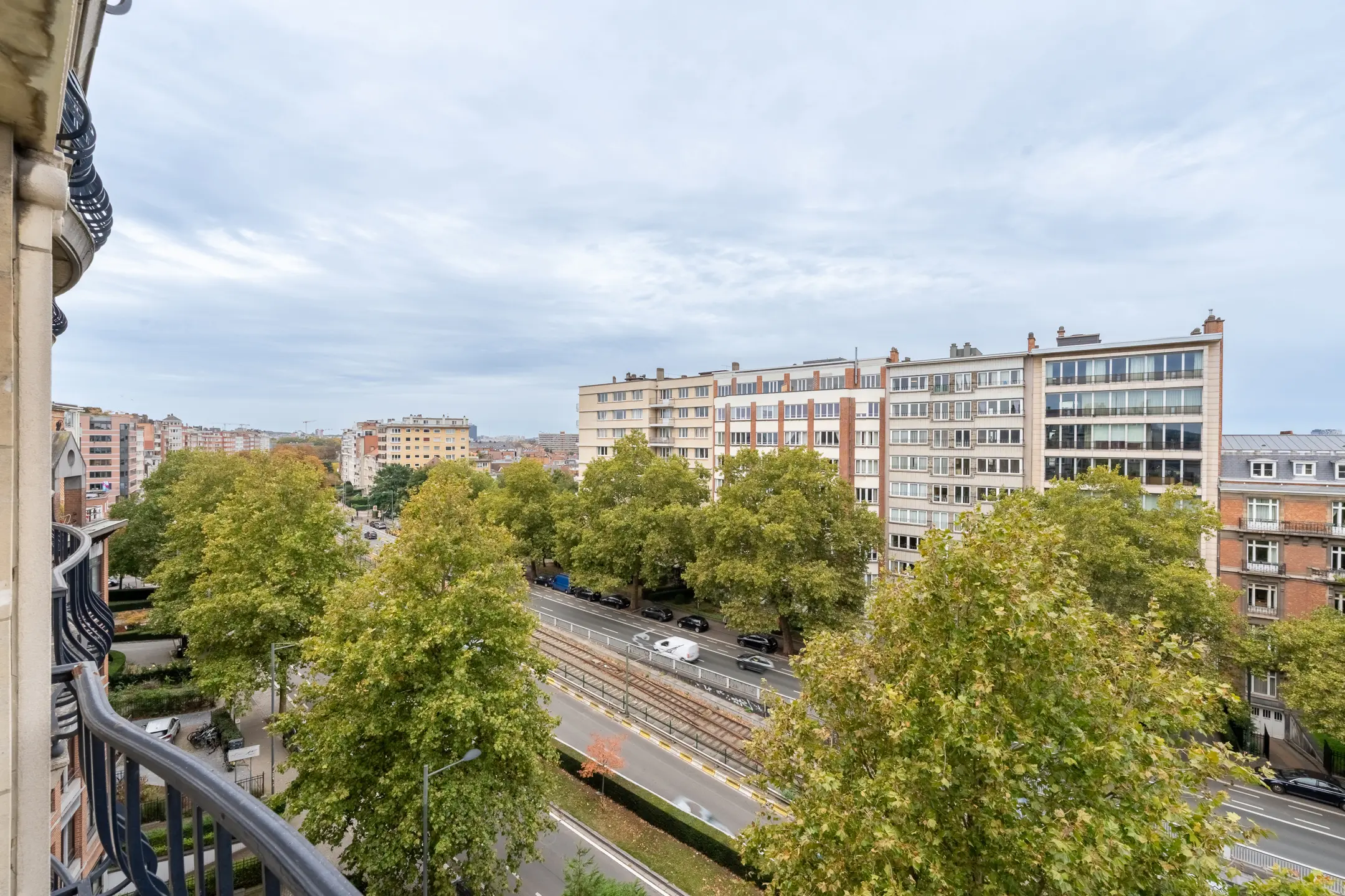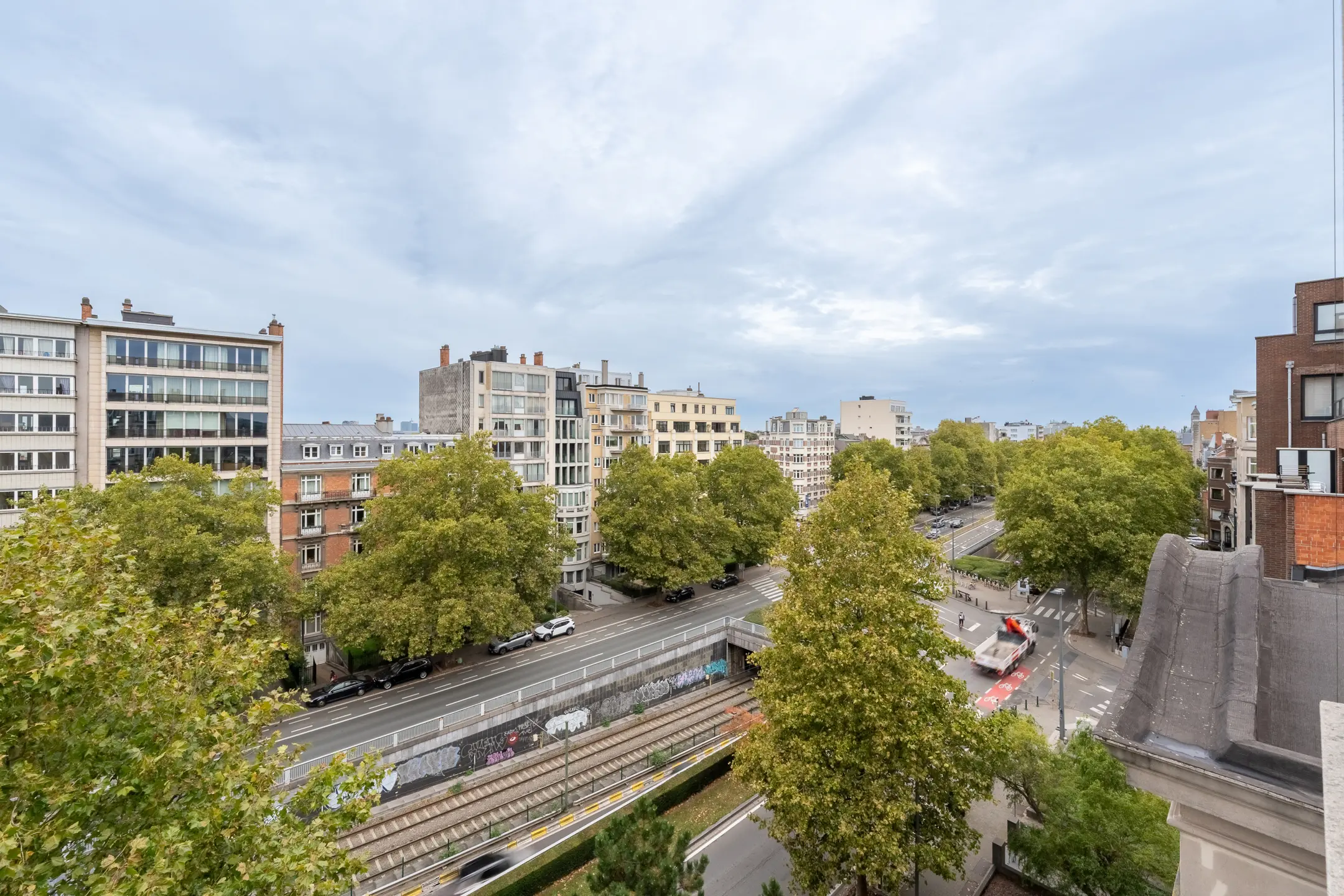 MYIMMO Auderghem vous propose ce superbe appartement lumineux idéalement situé sur le Boulevard Louis Schmidt, au cœur d’un quartier recherché d’Etterbeek, à proximité immédiate des transports en commun, des commerces, des écoles et de nombreux espaces verts. Situé au 7ᵉ étage d’un immeuble de standing des années 60, ce bien développe une superficie d’environ 87 m² et séduit par ses volumes agréables, sa luminosité naturelle et sa vue dégagée sur la ville. L’appartement s’ouvre sur un vaste hall d’entrée équipé de placards intégrés et d’une toilette séparée. Le séjour offre un bel espace de vie confortable et lumineux. La cuisine est entièrement équipée et bénéficie d’un accès direct à une agréable terrasse bien exposée. Un débarras pratique attenant à la cuisine complète cet espace. La partie nuit se compose d’une grande chambre avec salle de bain attenante et un emplacement prévu pour une machine à laver. Sur le plan technique, le bien dispose de châssis double vitrage, d’un chauffage collectif au mazout, d’un ascenseur conforme aux normes et d’une cave privative. La localisation est un atout majeur, avec un accès rapide aux stations de métro Thieffry et Pétillon, aux lignes de tram et de bus, au Parc du Cinquantenaire ainsi qu’aux nombreux commerces et restaurants du quartier. Un appartement fonctionnel, lumineux et parfaitement situé, idéal pour une personne seule, un couple ou un investissement locatif de qualité dans l’un des quartiers les plus prisés d’Etterbeek.