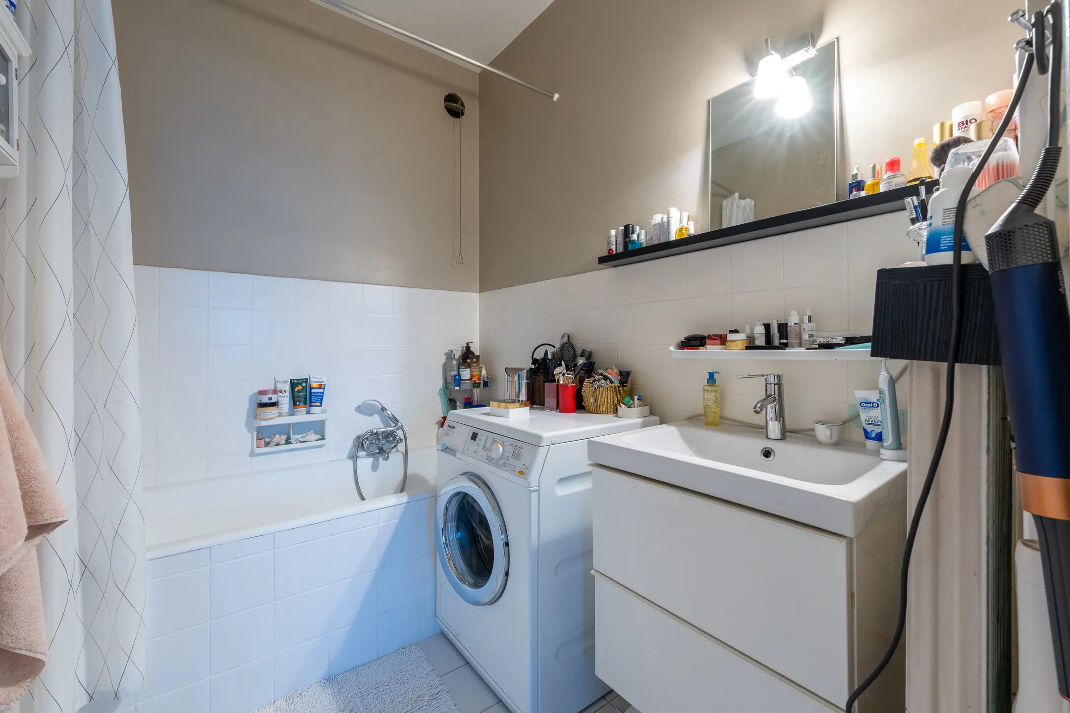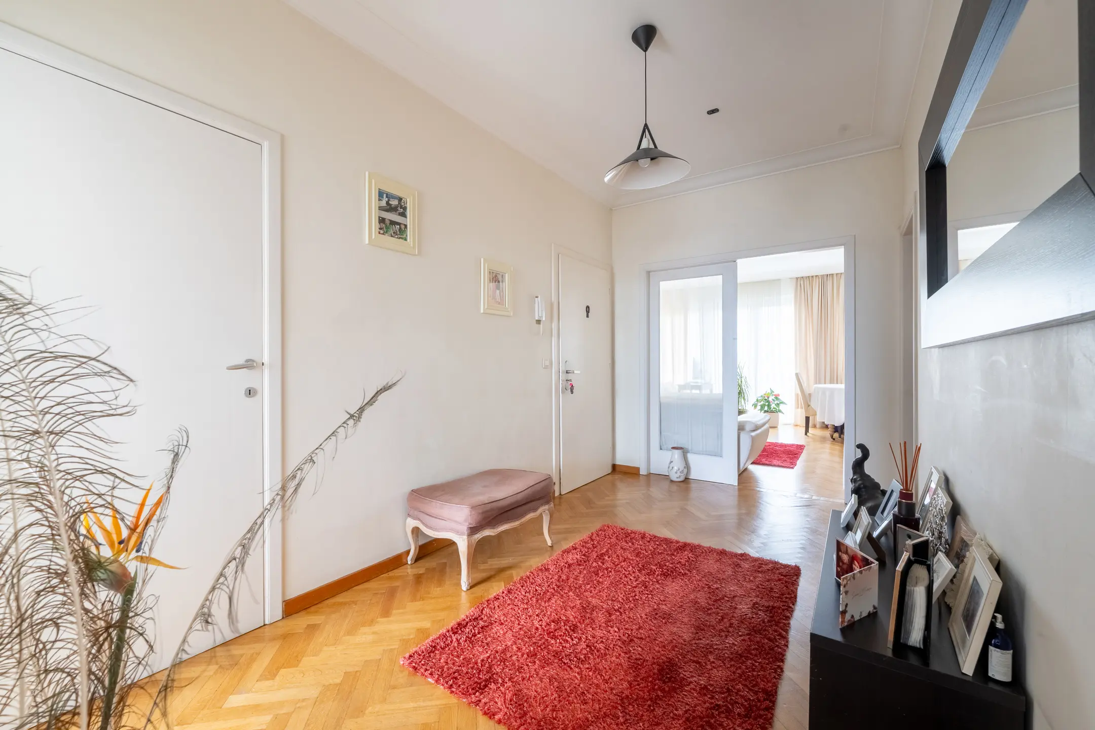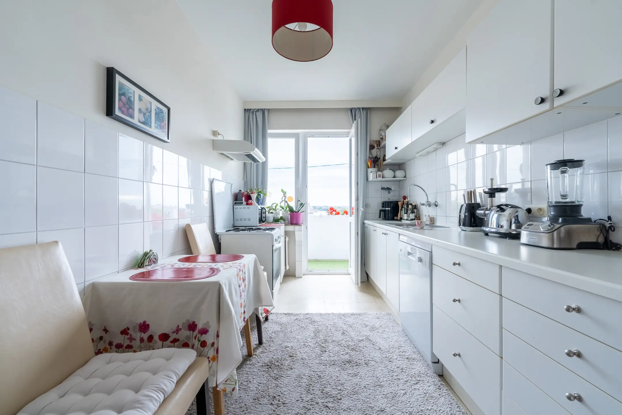 MYIMMO Auderghem vous propose ce superbe appartement lumineux idéalement situé sur le Boulevard Louis Schmidt, au cœur d’un quartier recherché d’Etterbeek, à proximité immédiate des transports en commun, des commerces, des écoles et de nombreux espaces verts. Situé au 7ᵉ étage d’un immeuble de standing des années 60, ce bien développe une superficie d’environ 87 m² et séduit par ses volumes agréables, sa luminosité naturelle et sa vue dégagée sur la ville. L’appartement s’ouvre sur un vaste hall d’entrée équipé de placards intégrés et d’une toilette séparée. Le séjour offre un bel espace de vie confortable et lumineux. La cuisine est entièrement équipée et bénéficie d’un accès direct à une agréable terrasse bien exposée. Un débarras pratique attenant à la cuisine complète cet espace. La partie nuit se compose d’une grande chambre avec salle de bain attenante et un emplacement prévu pour une machine à laver. Sur le plan technique, le bien dispose de châssis double vitrage, d’un chauffage collectif au mazout, d’un ascenseur conforme aux normes et d’une cave privative. La localisation est un atout majeur, avec un accès rapide aux stations de métro Thieffry et Pétillon, aux lignes de tram et de bus, au Parc du Cinquantenaire ainsi qu’aux nombreux commerces et restaurants du quartier. Un appartement fonctionnel, lumineux et parfaitement situé, idéal pour une personne seule, un couple ou un investissement locatif de qualité dans l’un des quartiers les plus prisés d’Etterbeek.