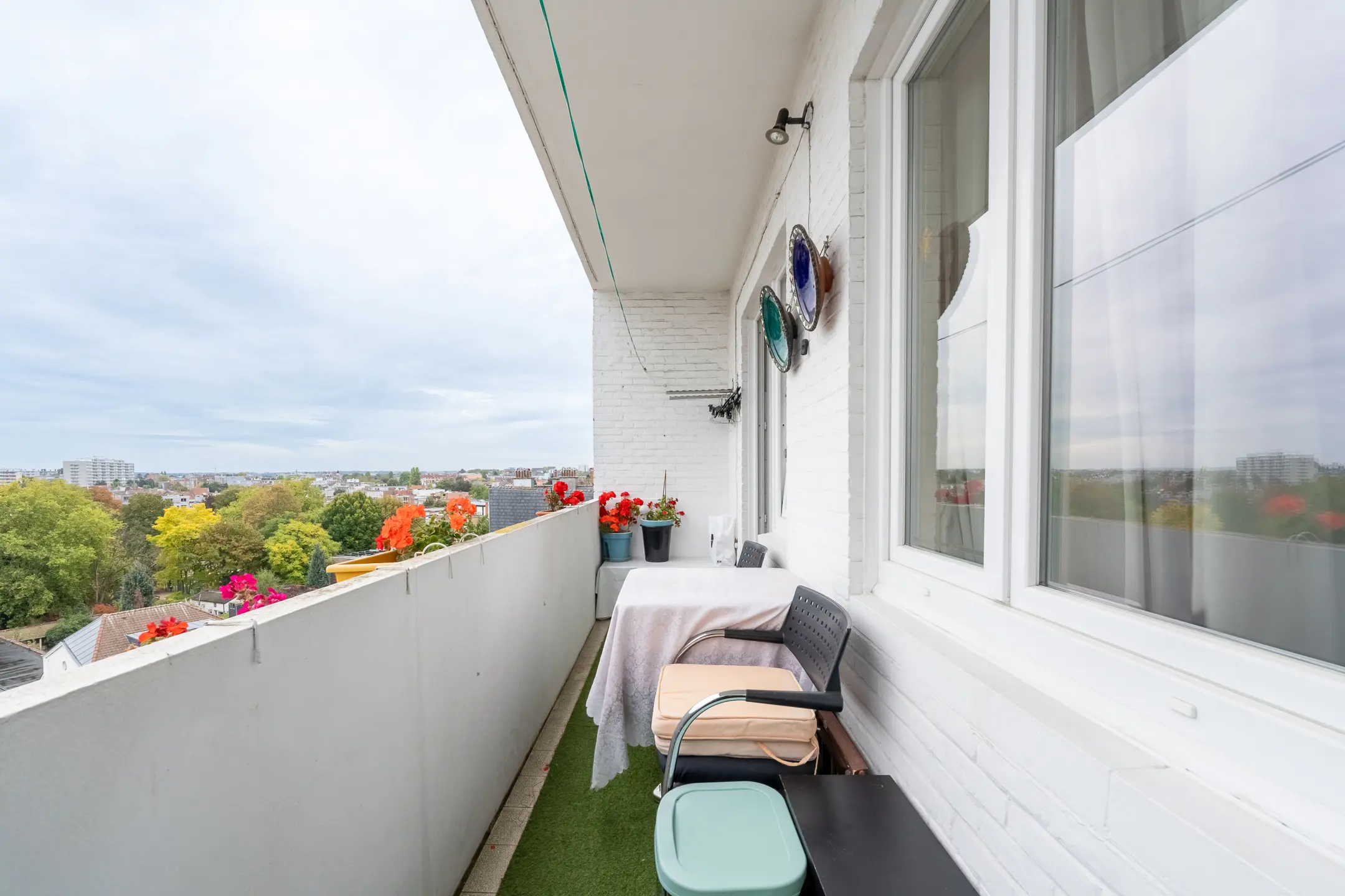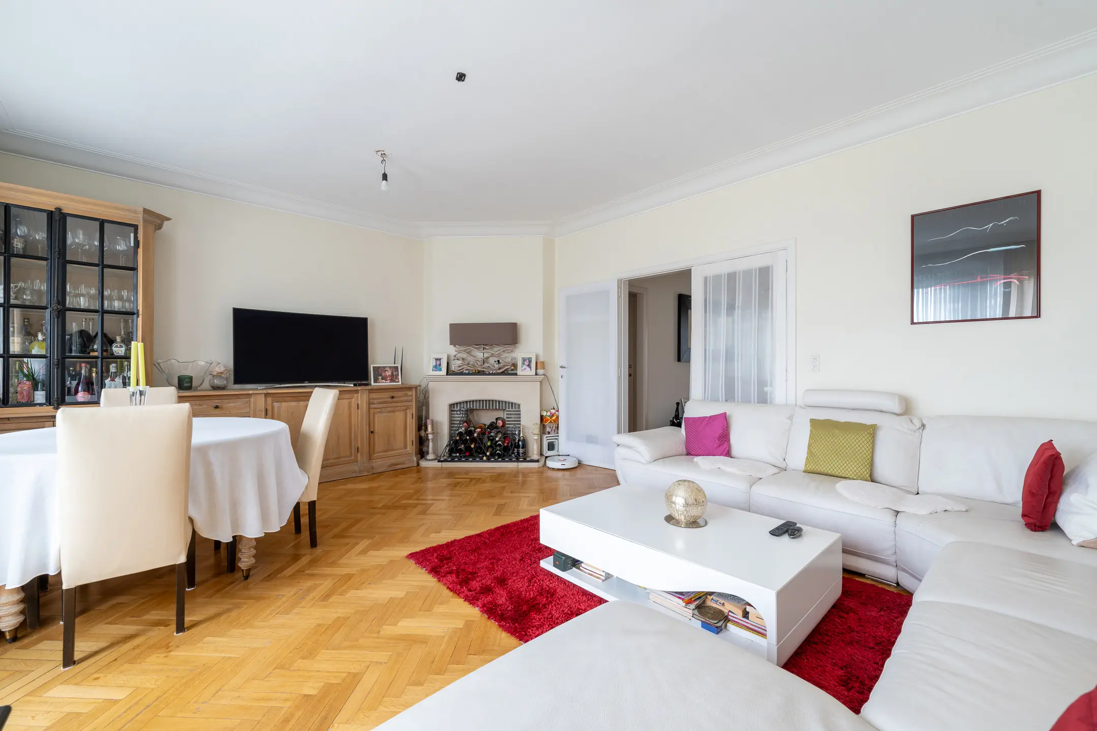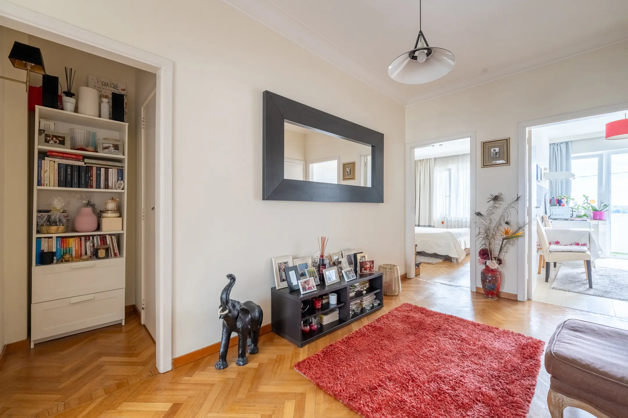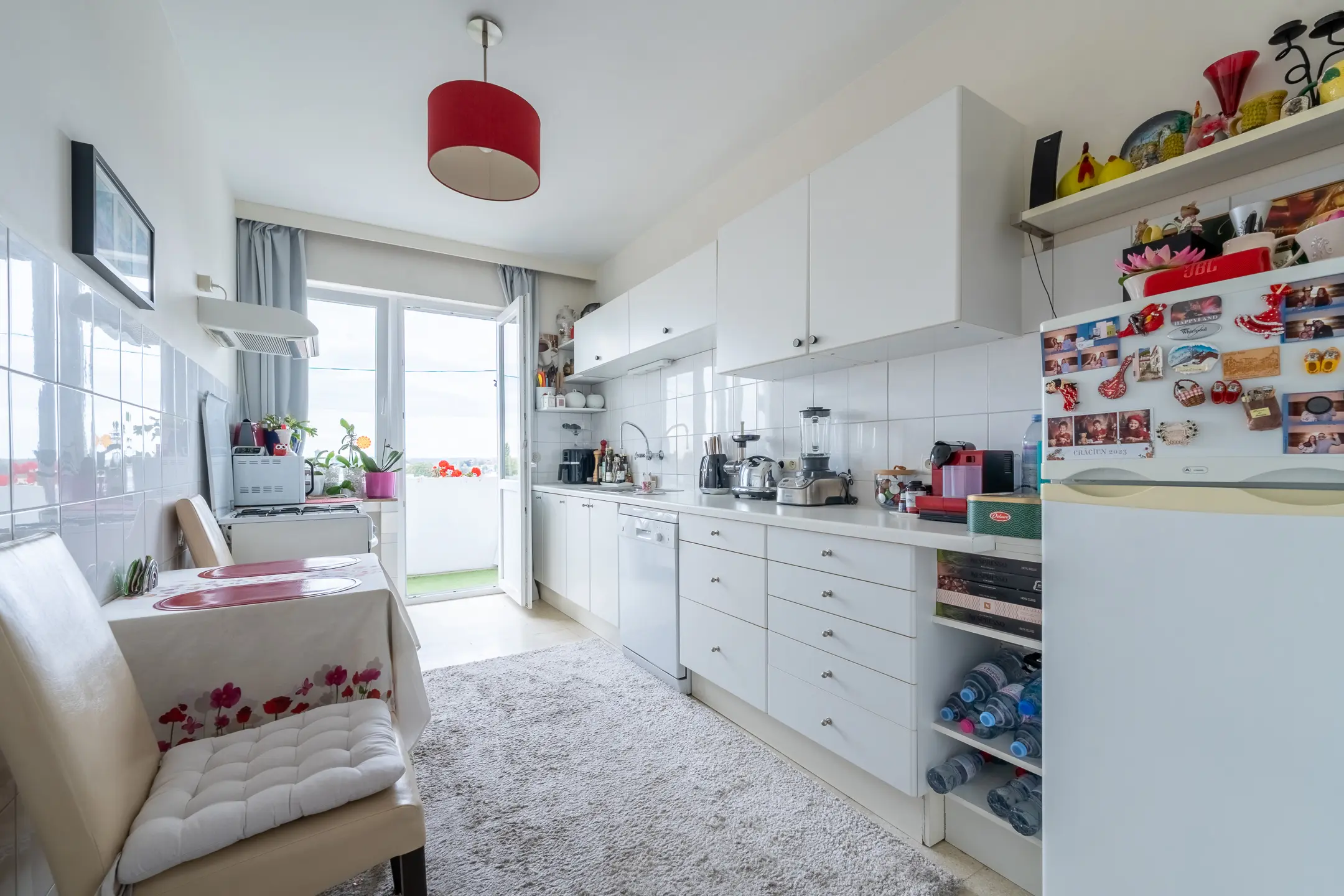 MYIMMO Auderghem vous propose ce superbe appartement lumineux idéalement situé sur le Boulevard Louis Schmidt, au cœur d’un quartier recherché d’Etterbeek, à proximité immédiate des transports en commun, des commerces, des écoles et de nombreux espaces verts. Situé au 7ᵉ étage d’un immeuble de standing des années 60, ce bien développe une superficie d’environ 87 m² et séduit par ses volumes agréables, sa luminosité naturelle et sa vue dégagée sur la ville. L’appartement s’ouvre sur un vaste hall d’entrée équipé de placards intégrés et d’une toilette séparée. Le séjour offre un bel espace de vie confortable et lumineux. La cuisine est entièrement équipée et bénéficie d’un accès direct à une agréable terrasse bien exposée. Un débarras pratique attenant à la cuisine complète cet espace. La partie nuit se compose d’une grande chambre avec salle de bain attenante et un emplacement prévu pour une machine à laver. Sur le plan technique, le bien dispose de châssis double vitrage, d’un chauffage collectif au mazout, d’un ascenseur conforme aux normes et d’une cave privative. La localisation est un atout majeur, avec un accès rapide aux stations de métro Thieffry et Pétillon, aux lignes de tram et de bus, au Parc du Cinquantenaire ainsi qu’aux nombreux commerces et restaurants du quartier. Un appartement fonctionnel, lumineux et parfaitement situé, idéal pour une personne seule, un couple ou un investissement locatif de qualité dans l’un des quartiers les plus prisés d’Etterbeek.
