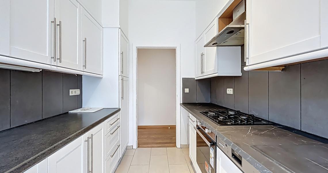 Montgomery / Chien Vert – MYIMMO Etterbeek vous propose ce bel appartement deux chambres d’environ 105 m², entièrement rénové en 2026, situé au rez-de-chaussée d’un immeuble de standing.