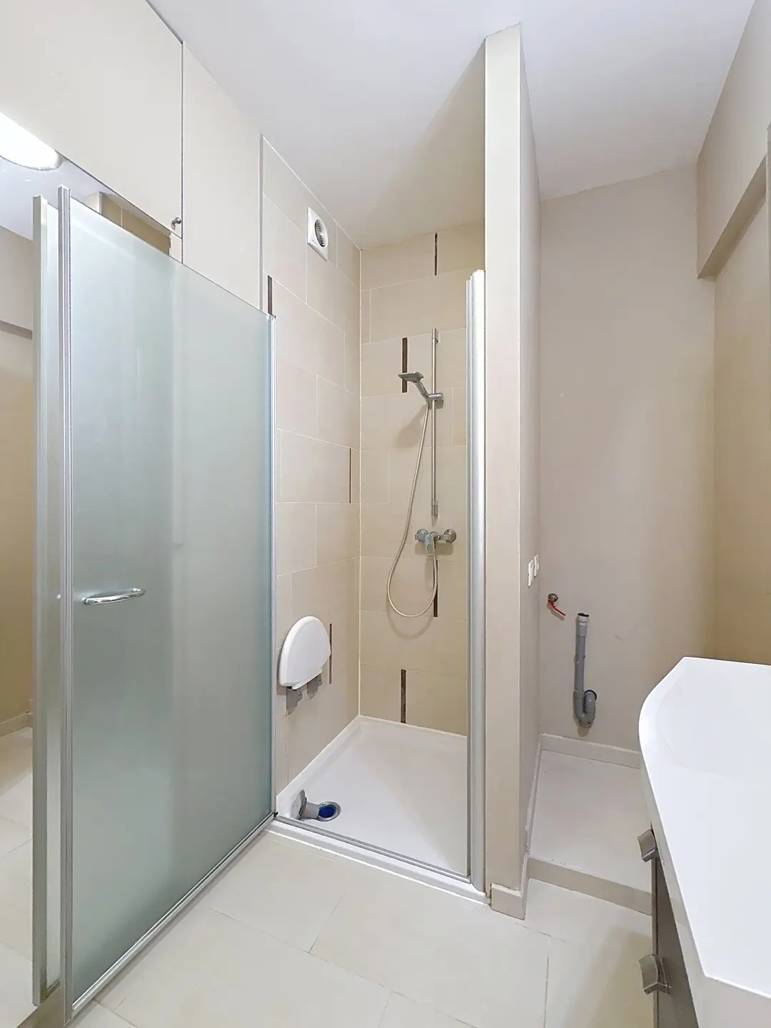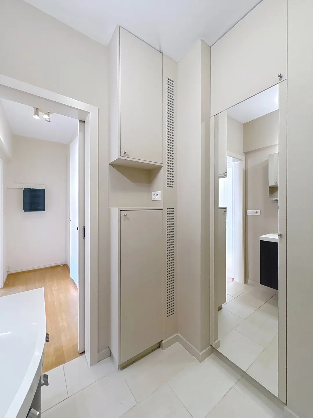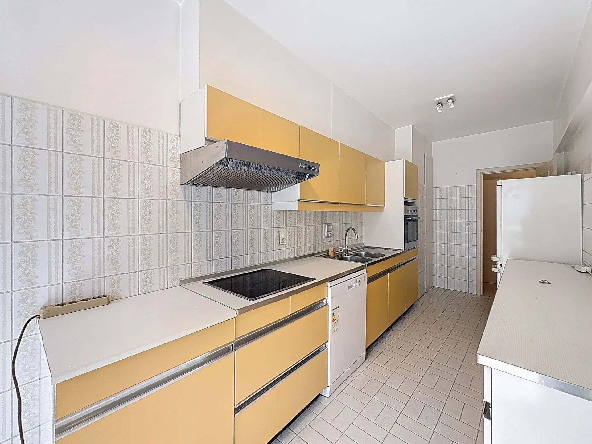 Il se compose d'un spacieux hall d'entrée de +/- 7 m² avec porte blindée, d'un grand et lumineux living de +/- 32 m² donnant à une terrasse de +/- 9 m² exposée Sud, d'une grande cuisine super-équipée de +/- 13 m² (possibilité d'ouvrir la cuisine sur le séjour), d'un hall de nuit avec placards de +/- 5 m², de 2 grandes chambres de +/- 16 m² chacune donnant accès à une terrasse arrière de +/- 9 m² exposée Nord, d'une salle de douche rénovée de +/- 4 m² avec rangements et emplacement machine à laver, d'une toilette séparée avec lave-main + 1 cave.