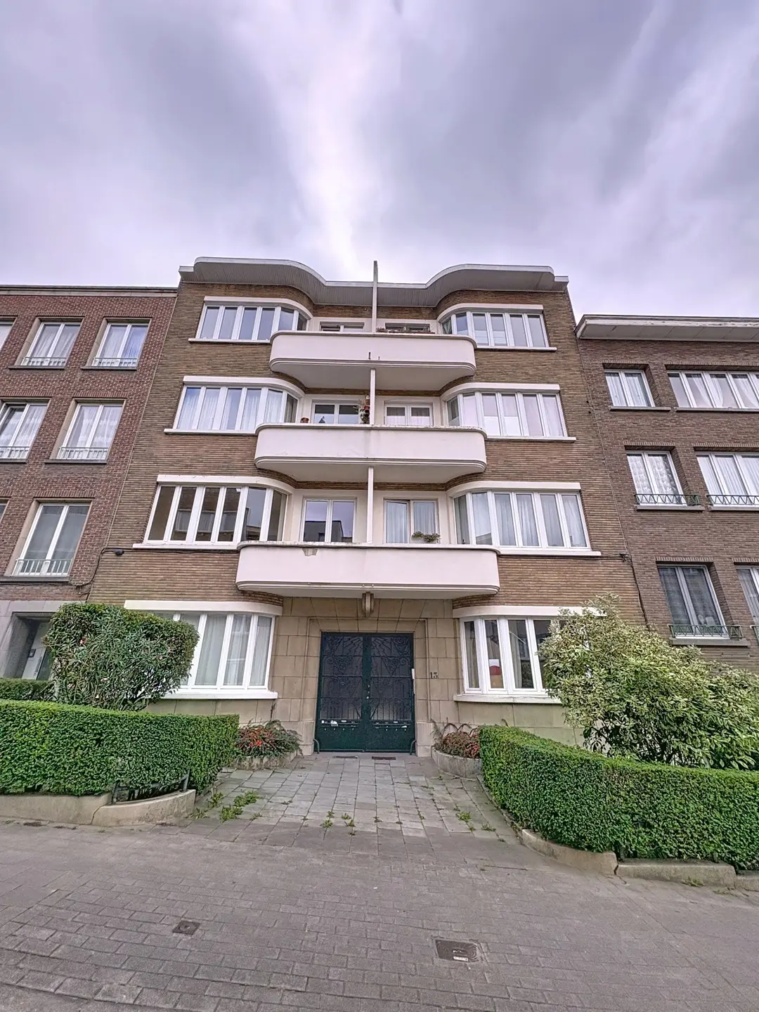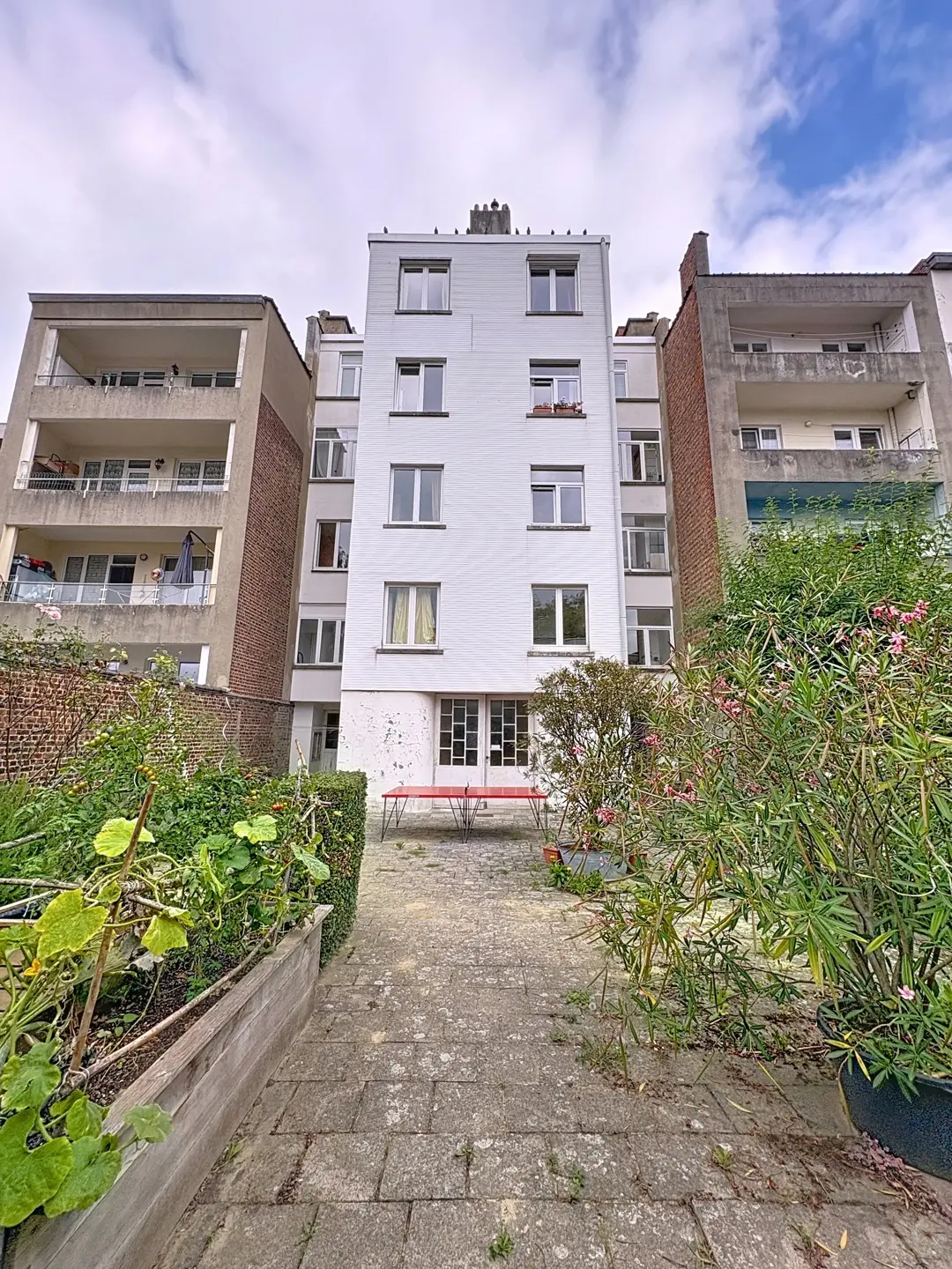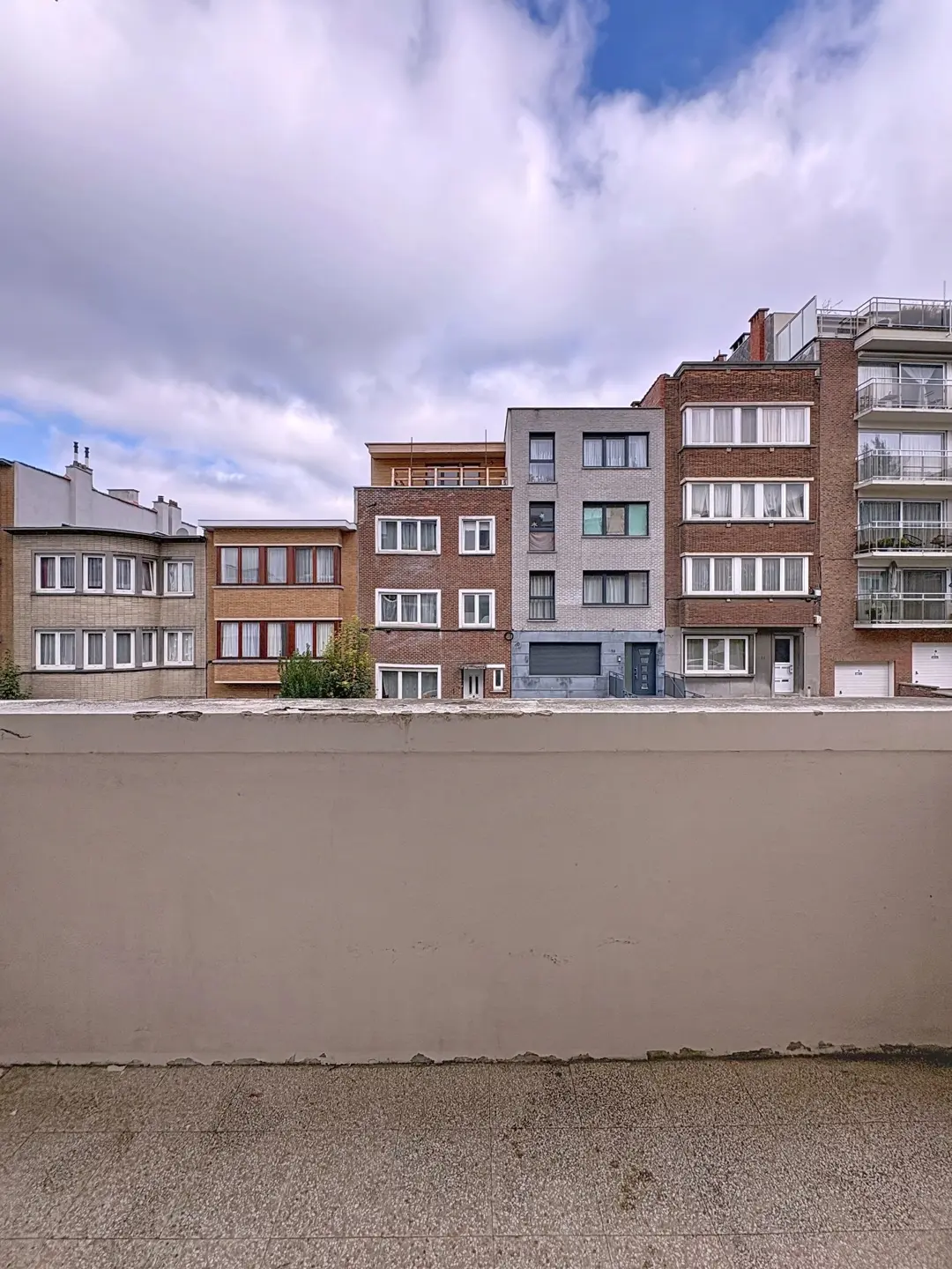 Il se compose : D'un hall d'entrée de +/- 2,5 m², d'une pièce en façade avant de +/- 16 m² (actuellement chambre), d'une pièce en façade arrière de +/- 16 m² (actuellement living), d'une cuisine de +/- 11m², d'une salle de bains de +/- 8 m², d'une terrasse couverte de +/- 3 m² exposée Sud, d'un balcon avant de +/- 2,5 m² exposé Nord, d'une toilette séparée + 1 cave. Un grenier partagé, un local vélo.