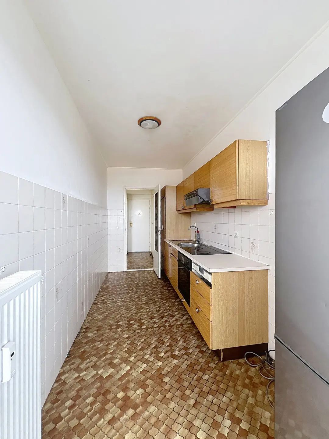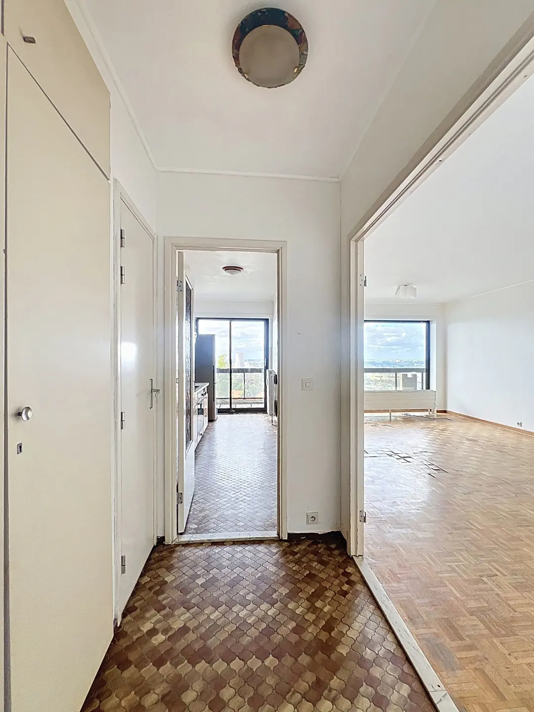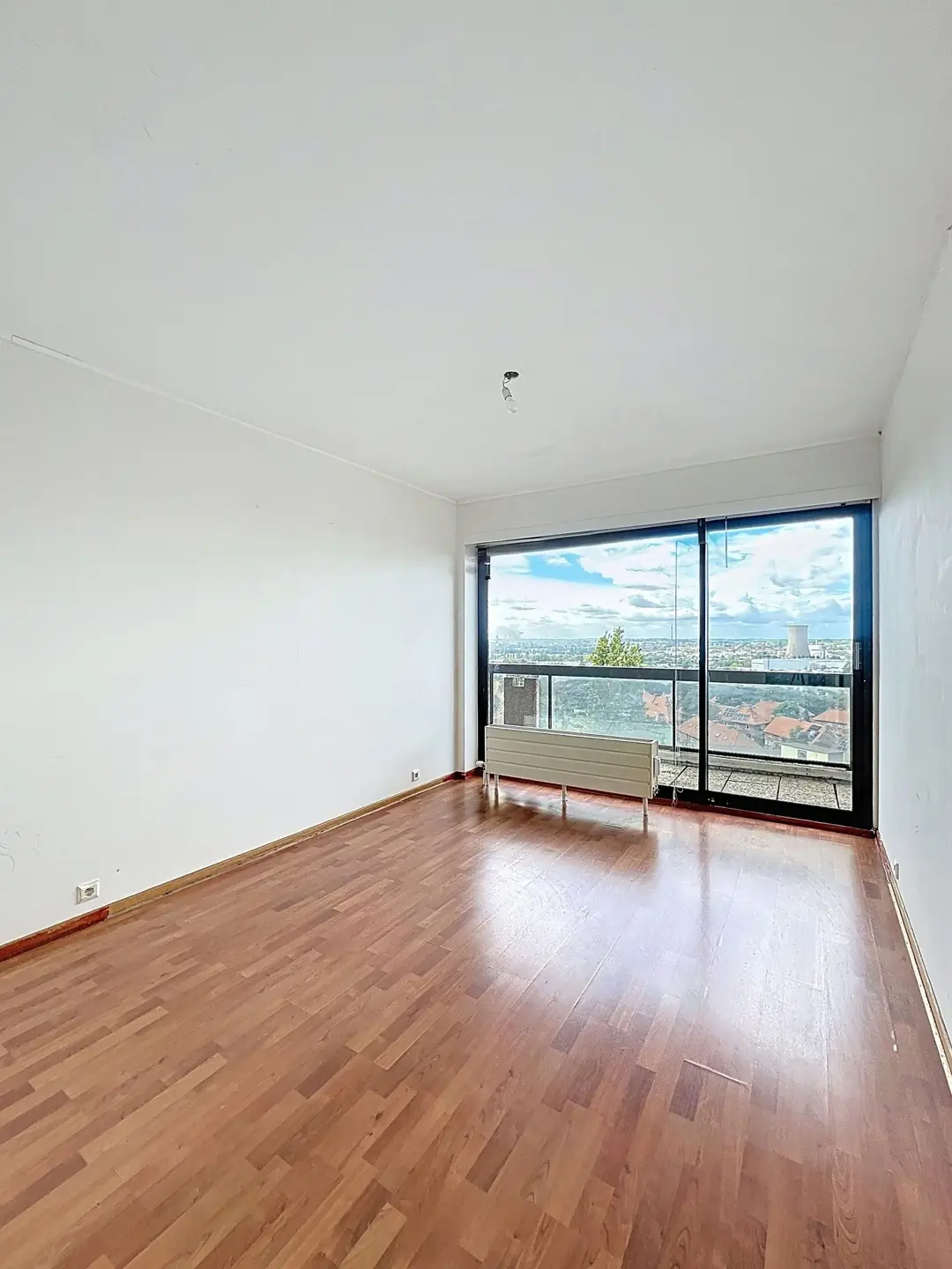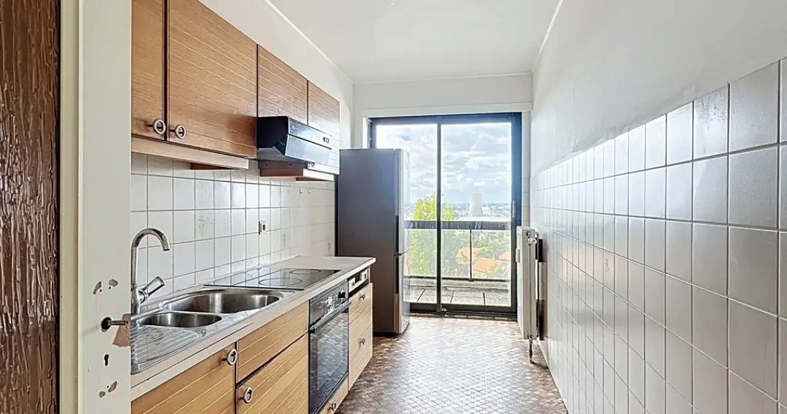 Cet appartement, avec un excellent potentiel moyennant travaux de rénovation, séduit par sa splendide terrasse panoramique perchée sur les hauteurs de Forest.