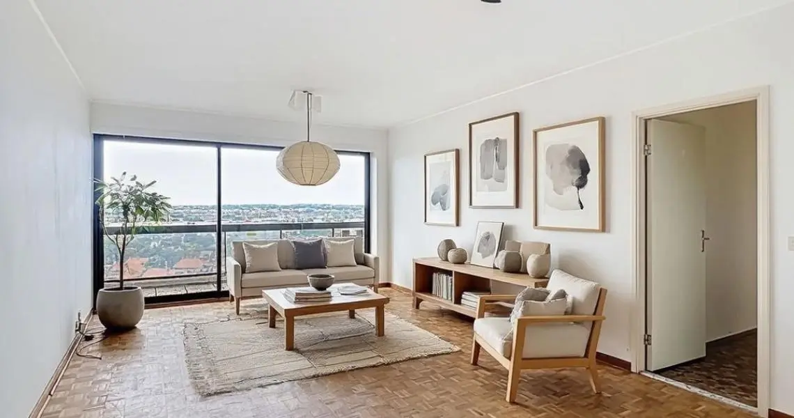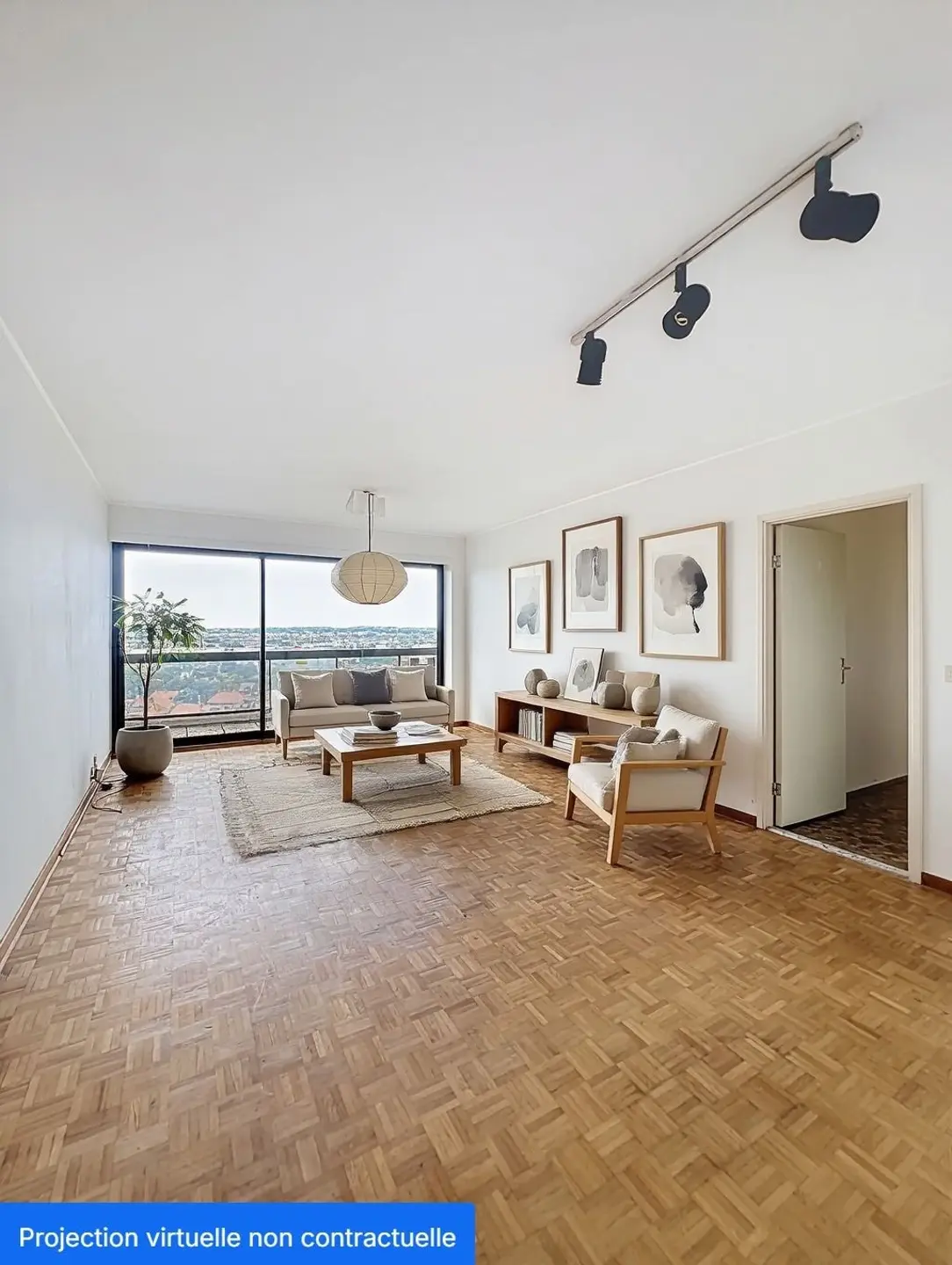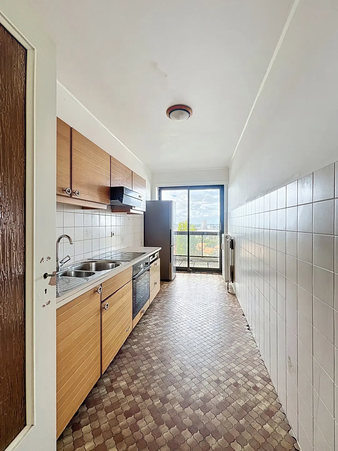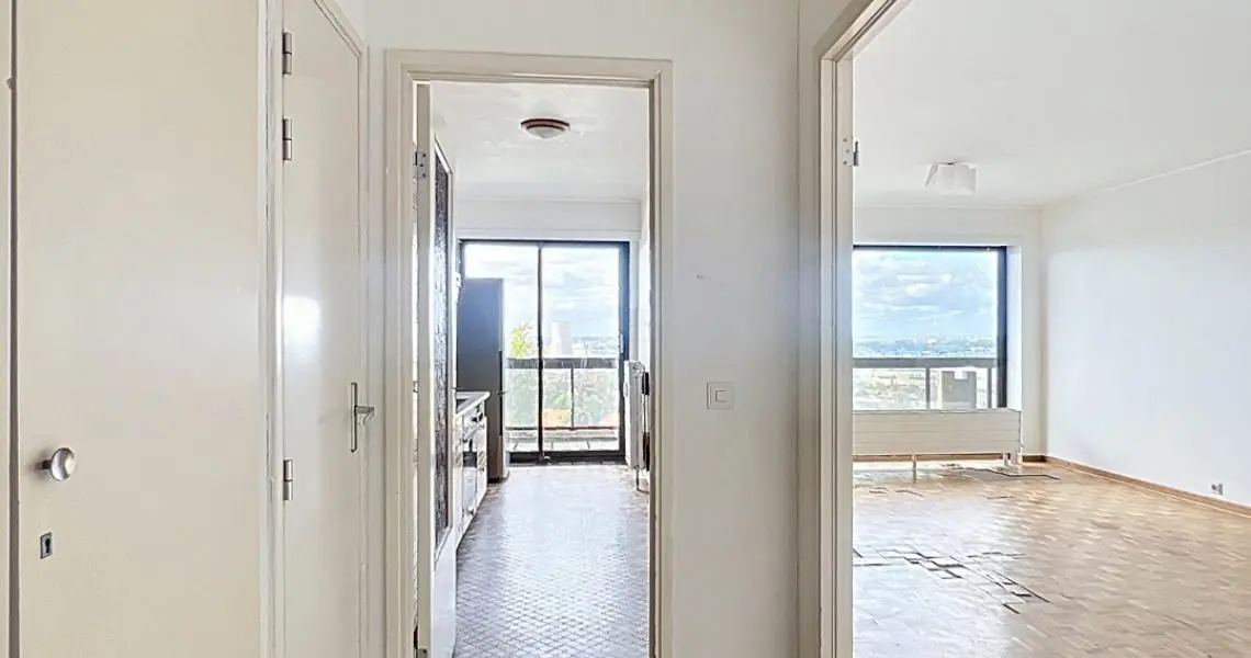 Cet appartement, avec un excellent potentiel moyennant travaux de rénovation, séduit par sa splendide terrasse panoramique perchée sur les hauteurs de Forest.