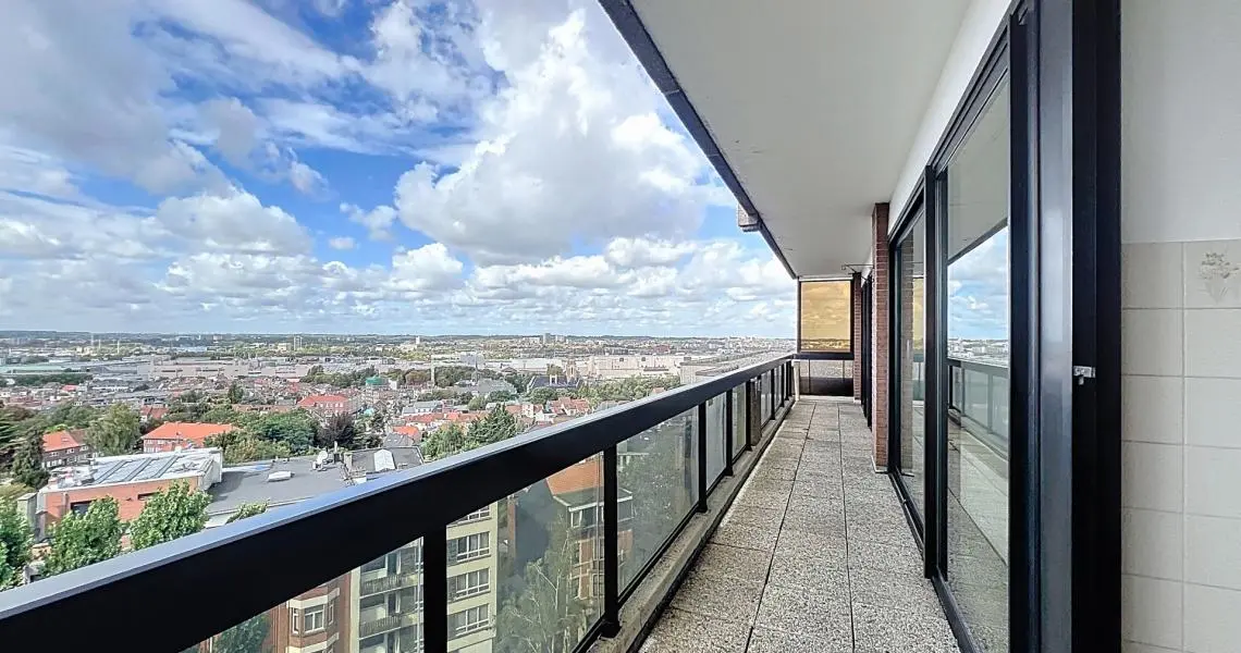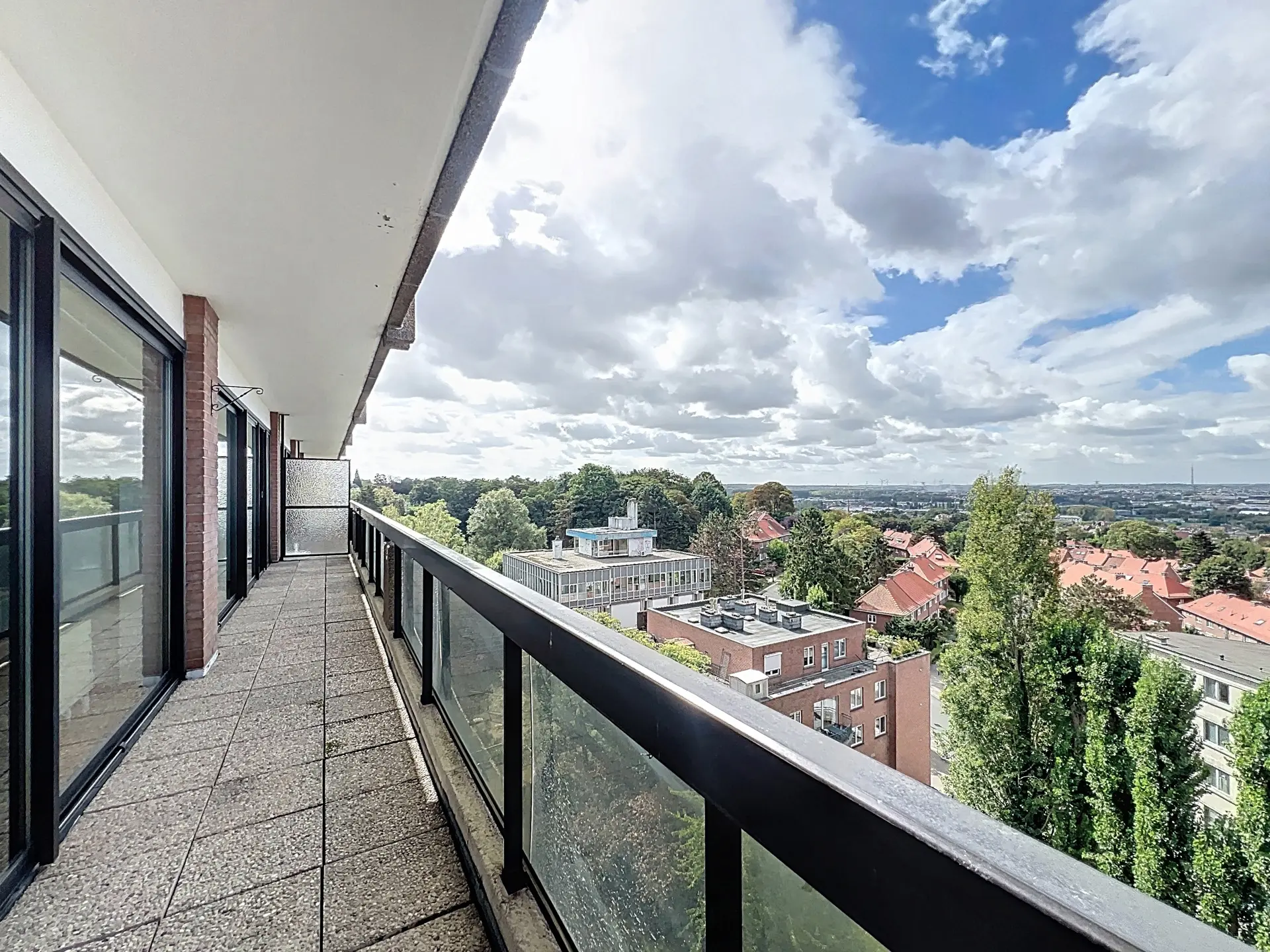 Pourvu d'une superbe terrasse panoramique idéalement orientée et bénéficiant d’une belle superficie de +/- 86 m², l'appartement se compose comme suit : un hall d’entrée avec placards et vestiaire, une grande cuisine de +/- 9 m², un spacieux séjour de +/- 27,5 m², un hall de nuit desservant une chambre de +/- 14 m², une deuxième chambre de +/- 11 m², un petit dressing de +/- 2,5 m², une salle de bains de +/- 4,5 m² et un WC séparé. Une cave complète l’ensemble.
