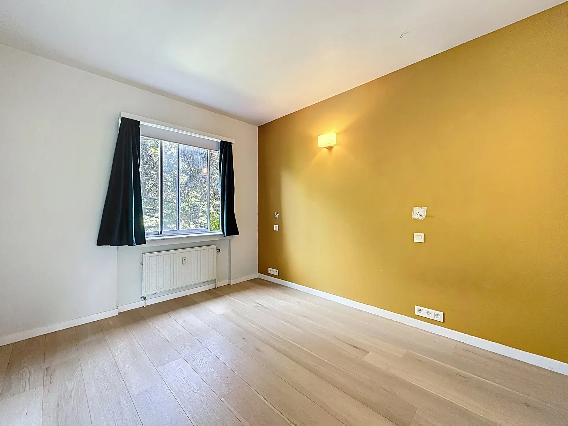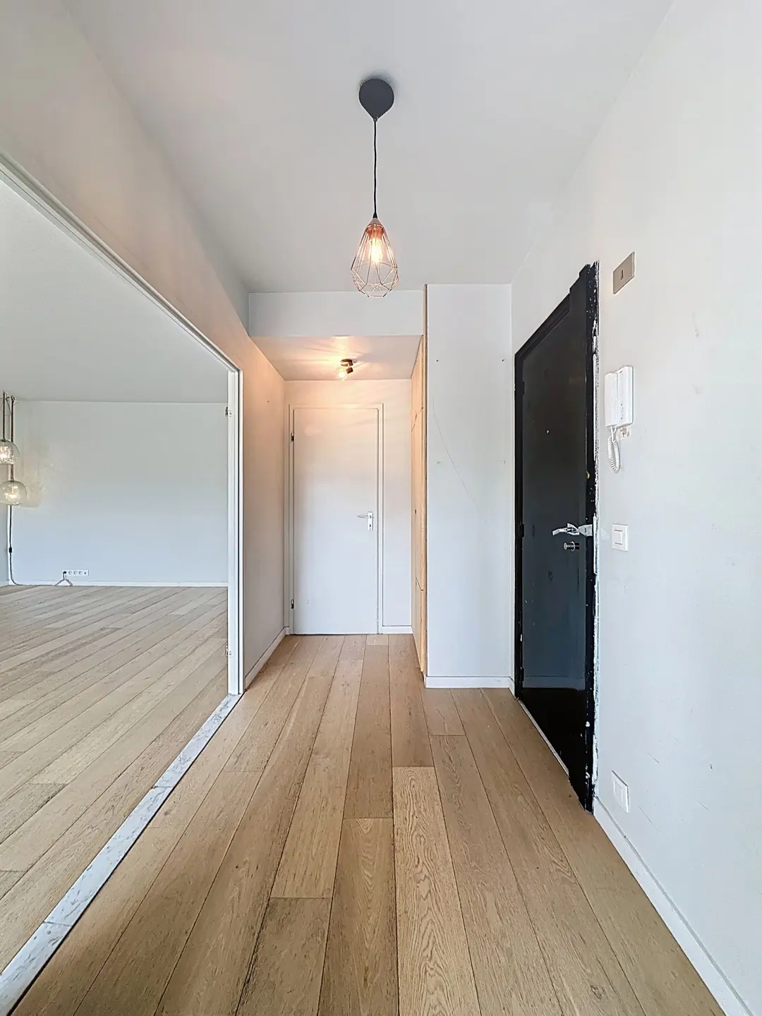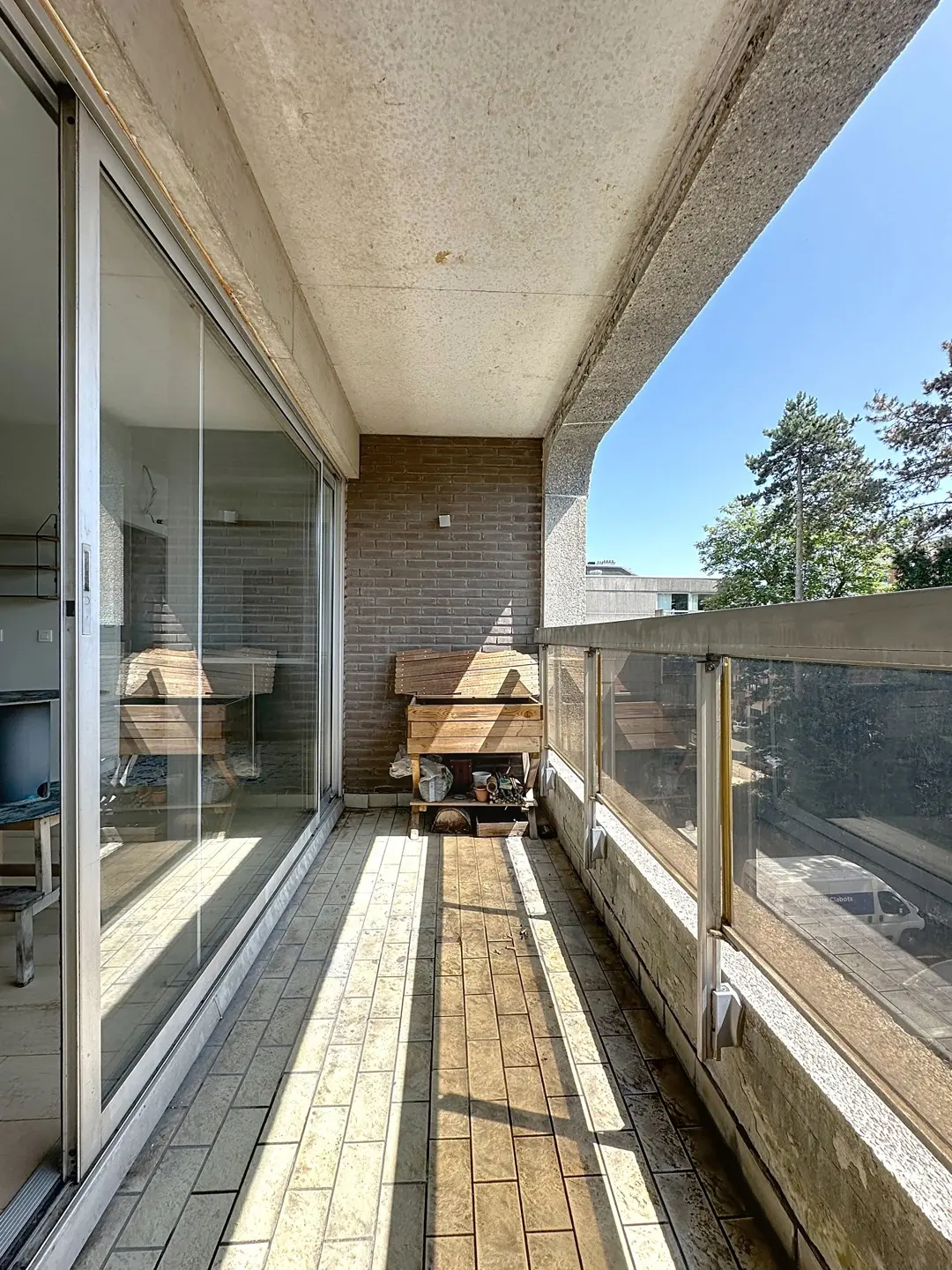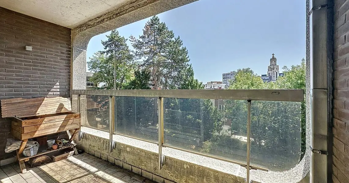 Ce charmant et lumineux appartement se compose d’un spacieux séjour/salle à manger de +/- 38 m2, d’une cuisine moderne et équipée, d’un premier balcon exposé plein sud de +/- 6 m2, d’une première chambre avec placards de +/- 16 m2 donnant accès à un balcon de +/- 4 m2, d’une deuxième chambre de +/- 11 m2, d’une salle de douche avec emplacement pour machine à laver, d’un hall d’entrée avec un WC séparé.