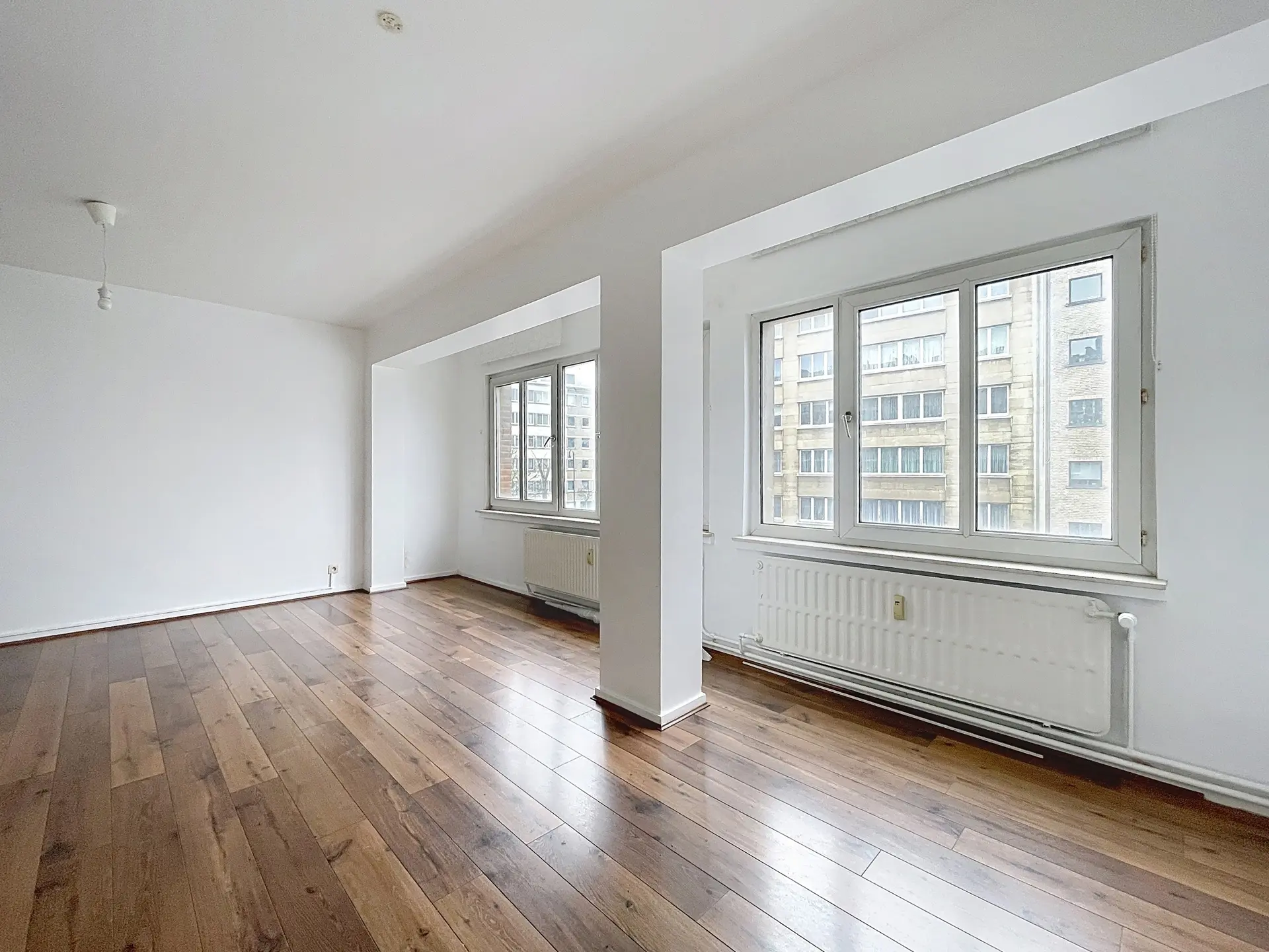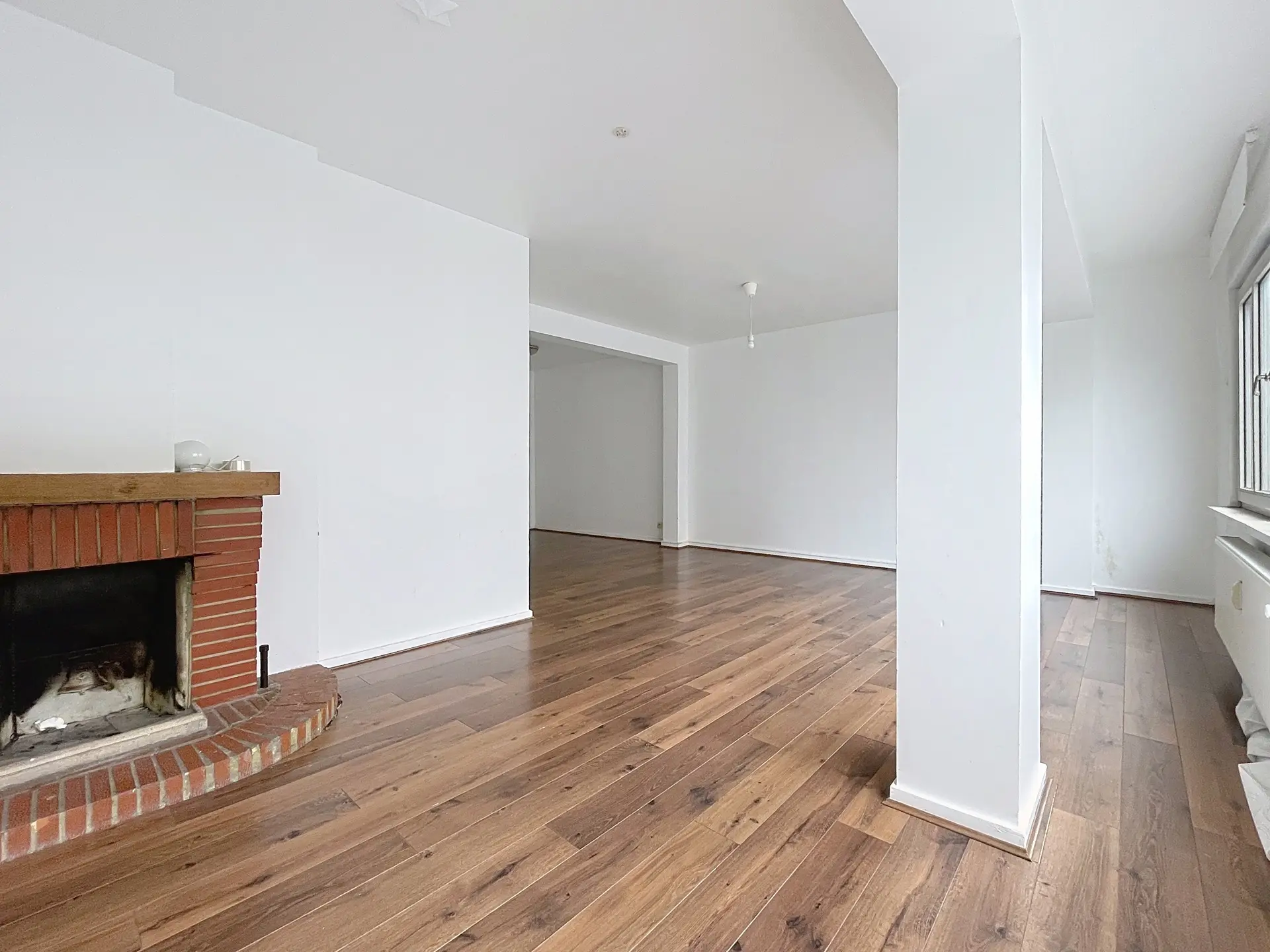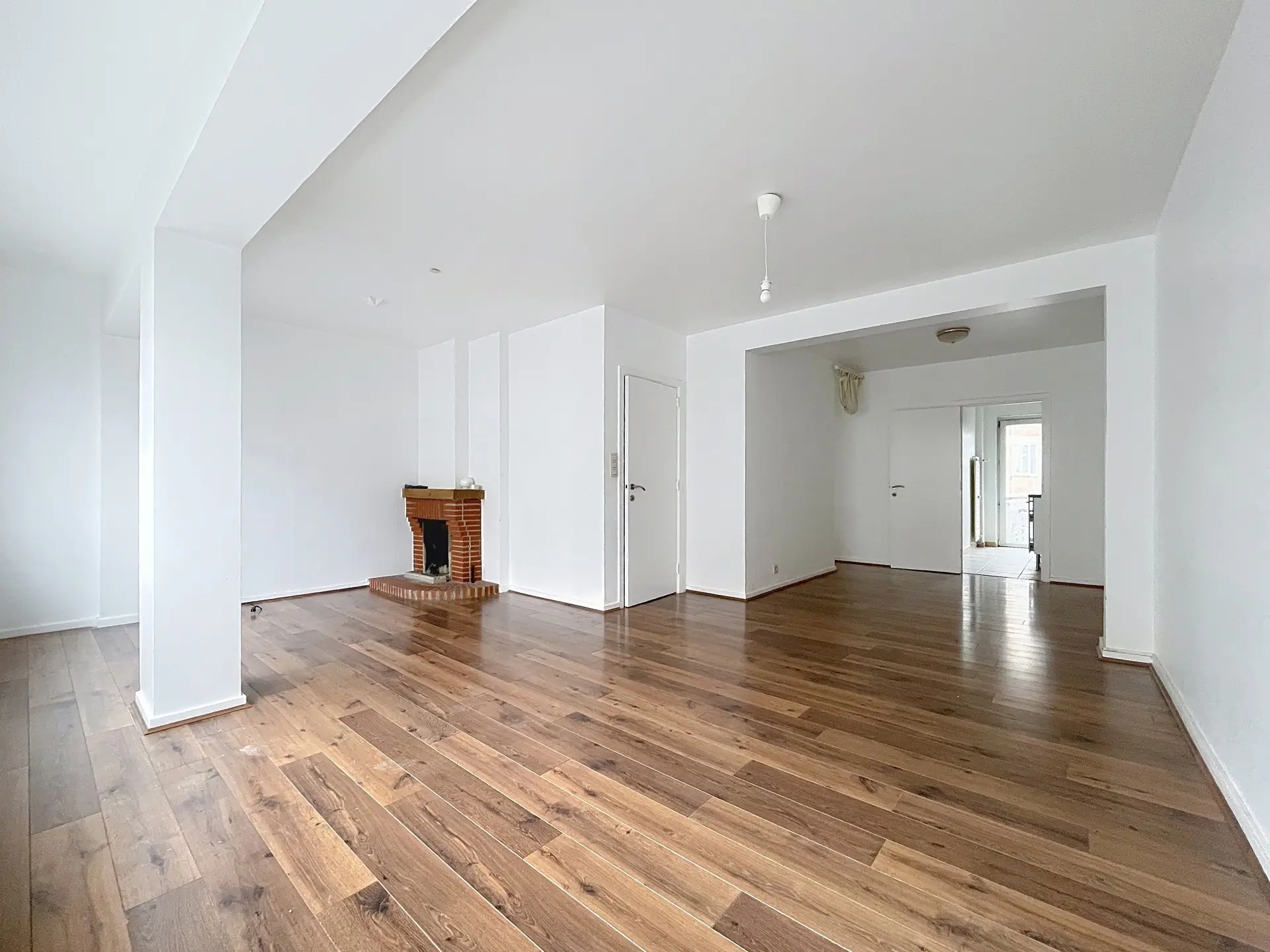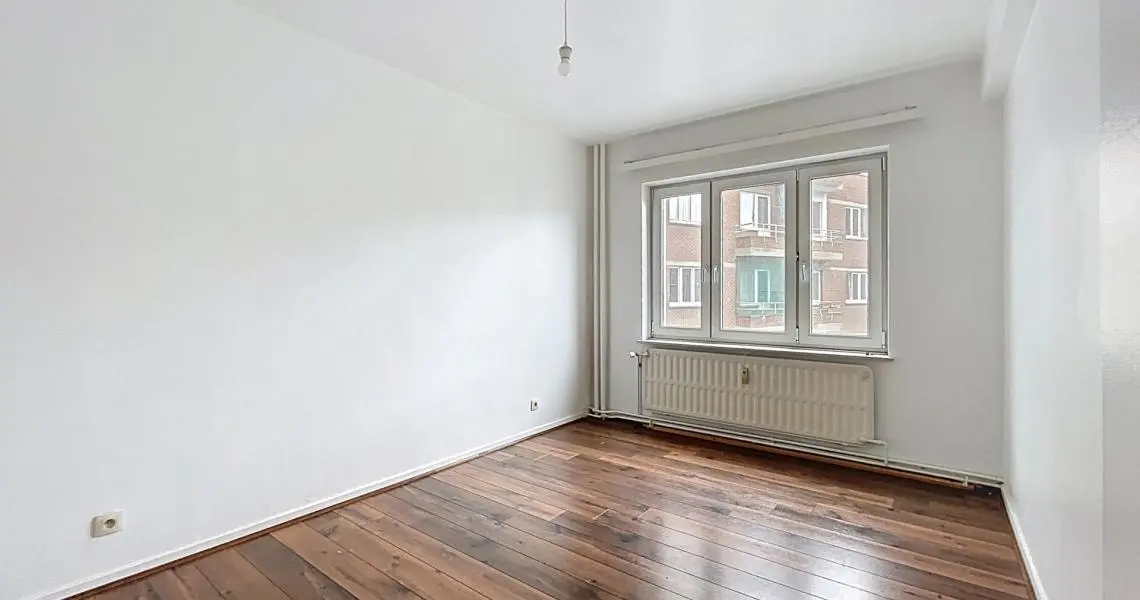 L’appartement séduit immédiatement par sa luminosité et son agencement. Celui-ci est composé d'un spacieux living avec cheminée ouverte sur une salle à manger d'un total de 33 m² d’une cuisine semi équipée de +/- 8 m² donnant accès à un petit balcon exposé Nord-Est, de deux chambres de +/- 14 m² et +/- 9 m², d'une salle de bain récemment rénovée, d'un WC séparé.