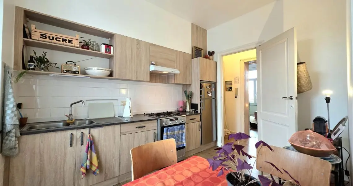 Appartement lumineux et parfaitement agencé vous attend au 2ème étage d’une petite copropriété, au cœur d’un quartier vivant et recherché de Forest.