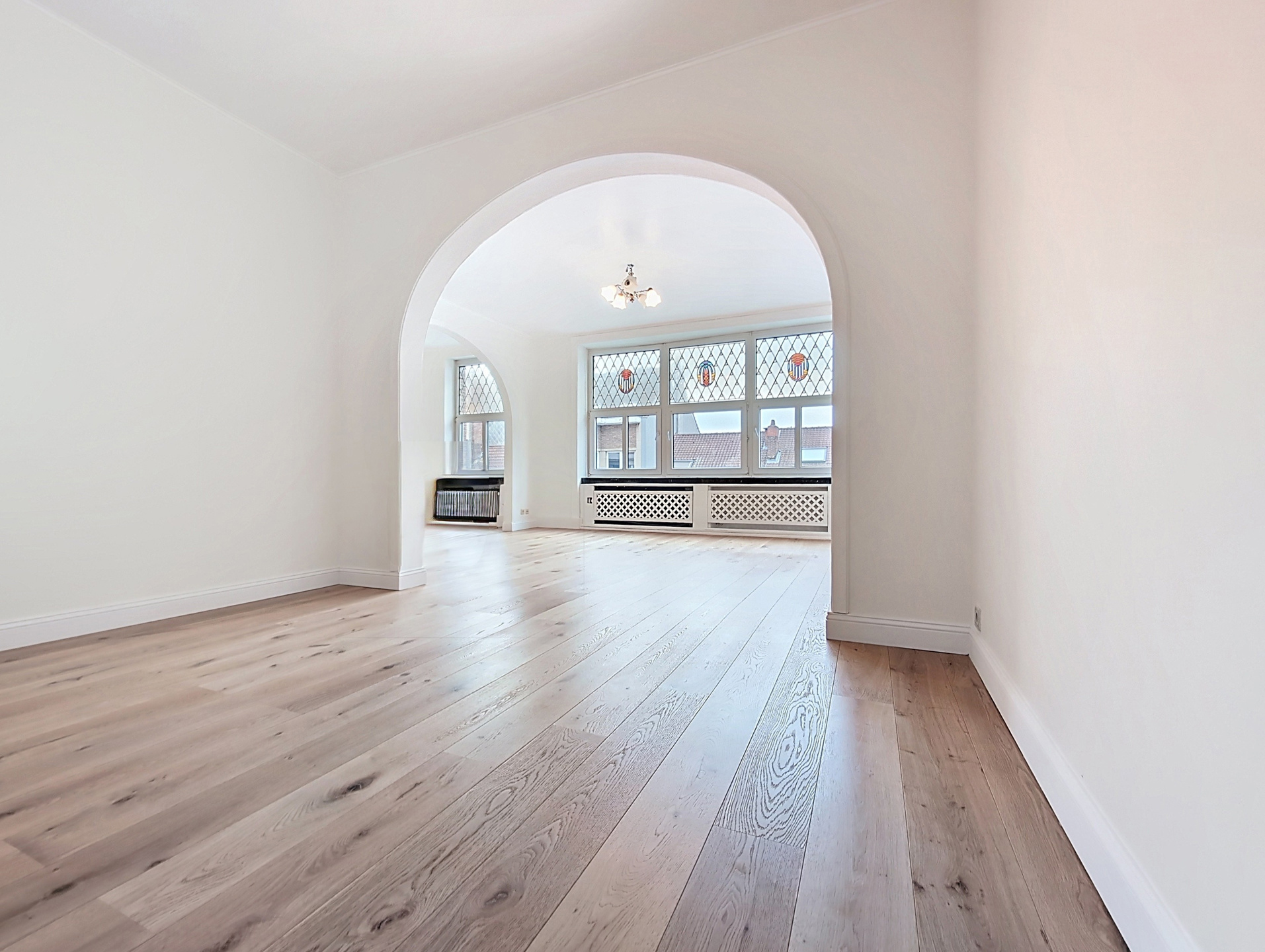 Situé au 3ᵉ étage avec ascenseur, il se compose d’un vaste et lumineux séjour de ± 45 m², offrant un espace salon/salle à manger aux proportions généreuses, sublimé par une belle hauteur sous plafond et une agréable luminosité naturelle. Un cadre idéal pour recevoir et profiter d’un espace de vie convivial.