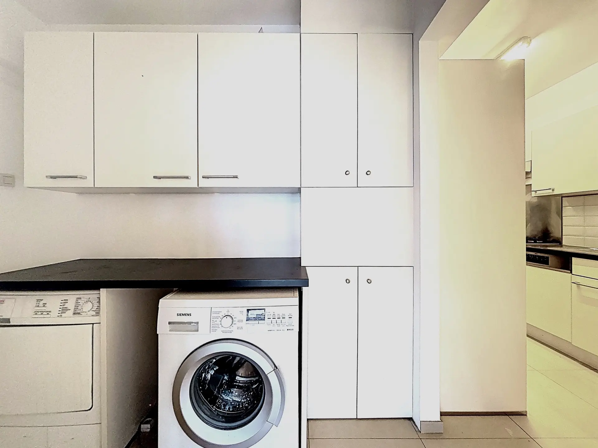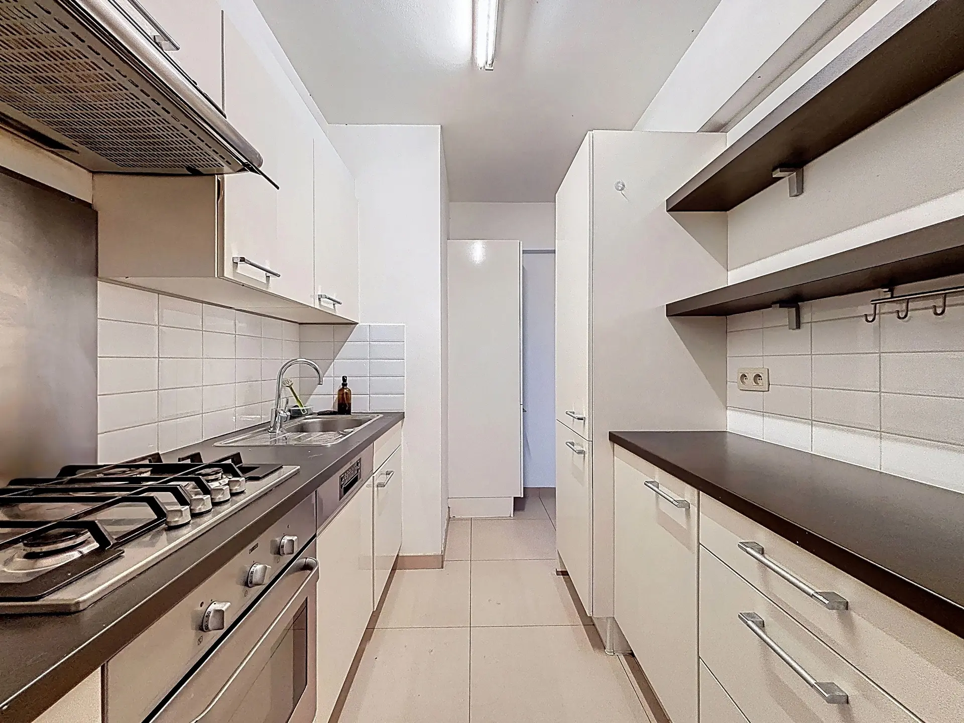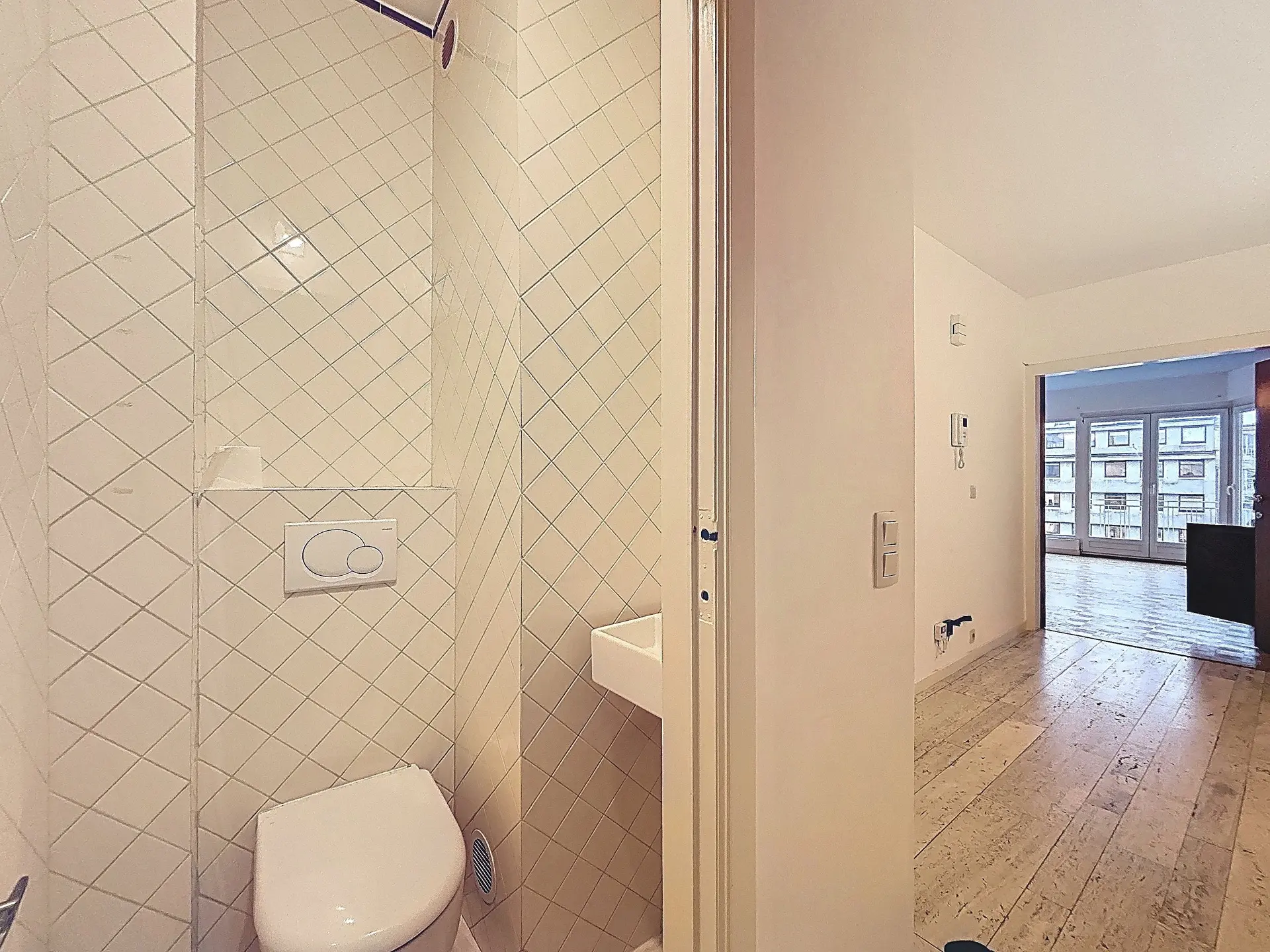Il se compose d’un hall d’entrée avec toilette invités, d’un séjour lumineux de ±30m² offrant une vue dégagée sur l’avenue Louise, et d’une cuisine super équipée avec buanderie et petit balcon.