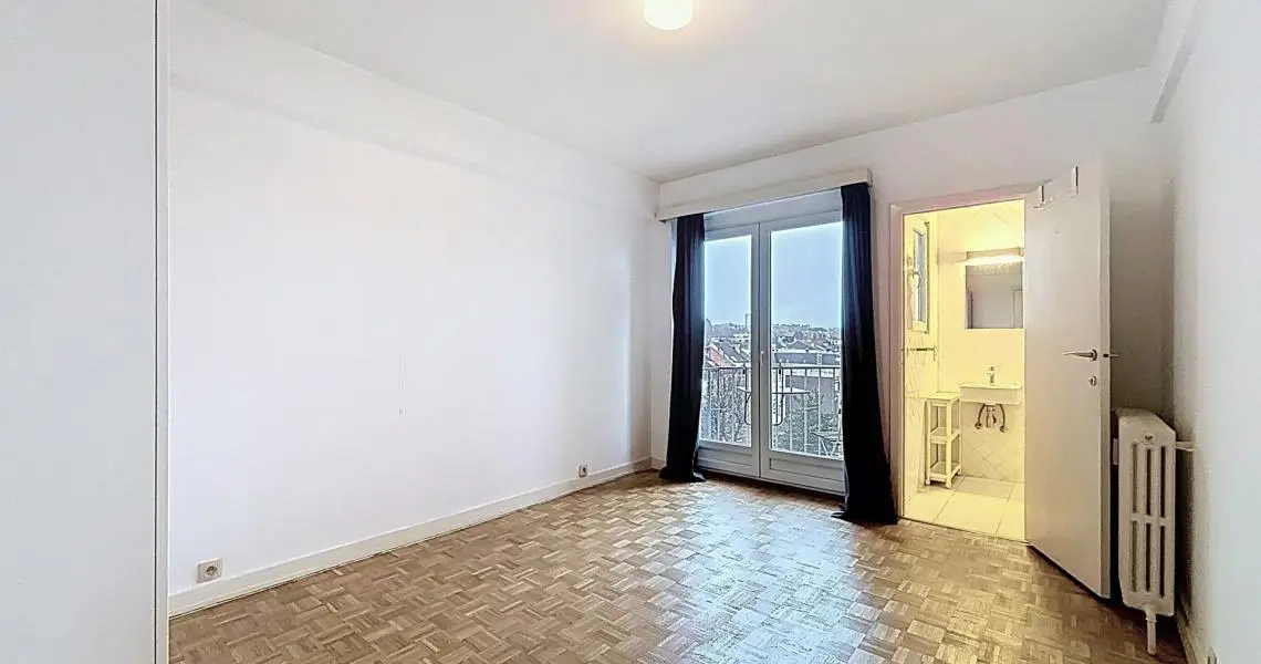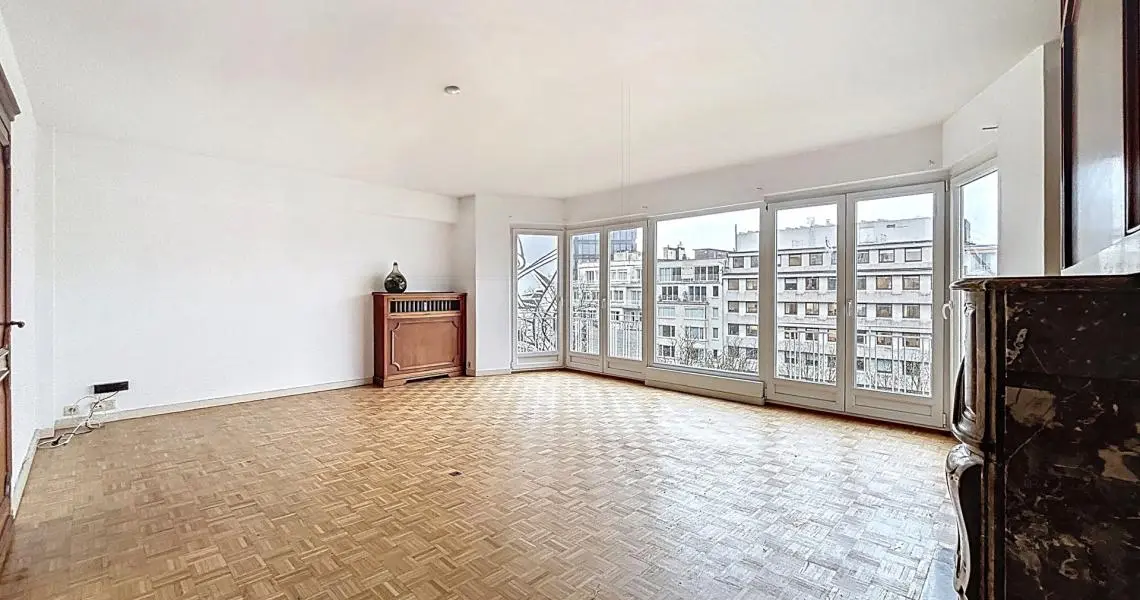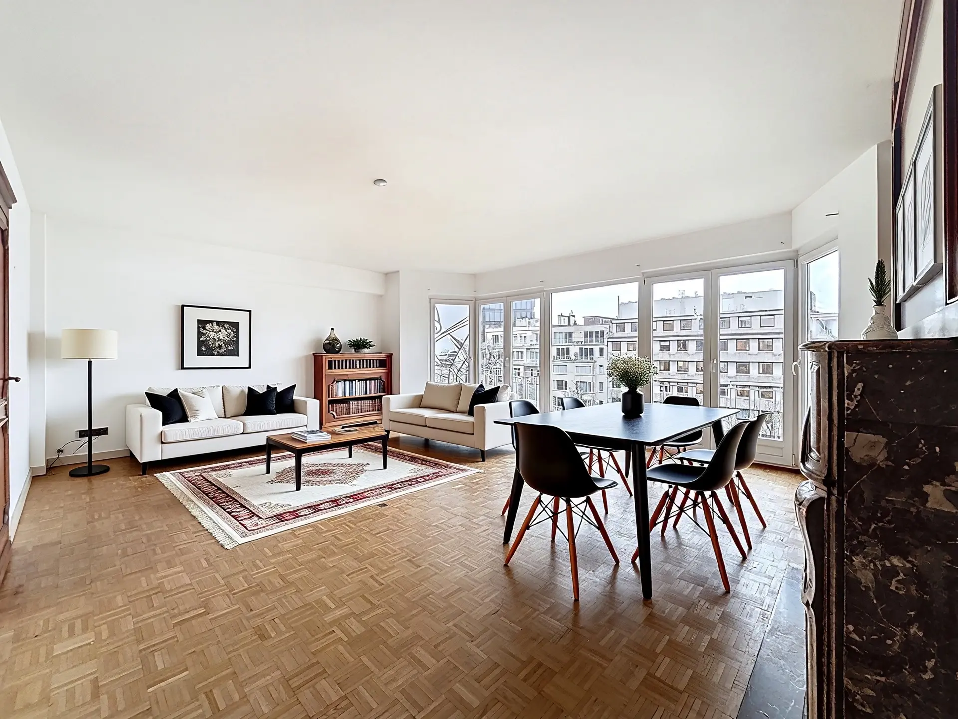 Louise - Idéalement situé face à l’arrêt de tram Legrand et à 300 m du Bois de la Cambre, MYIMMO Etterbeek vous propose ce magnifique appartement 3 chambres de ±130m² bruts (surface PEB), situé au 7e étage sans voisin de palier et avec ascenseur.