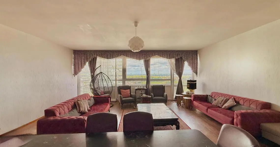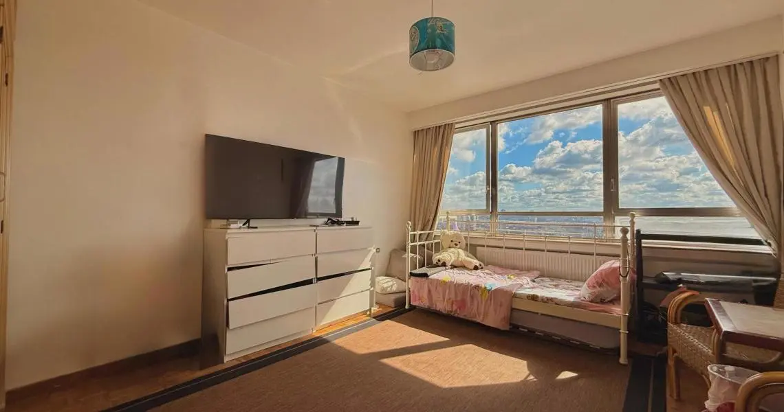 MYIMMO Ganshoren vous propose en exclusivité ce magnifique appartement traversant de ±142 m², situé au 20ème étage d’un immeuble de 25 niveaux avec 3 ascenseurs.