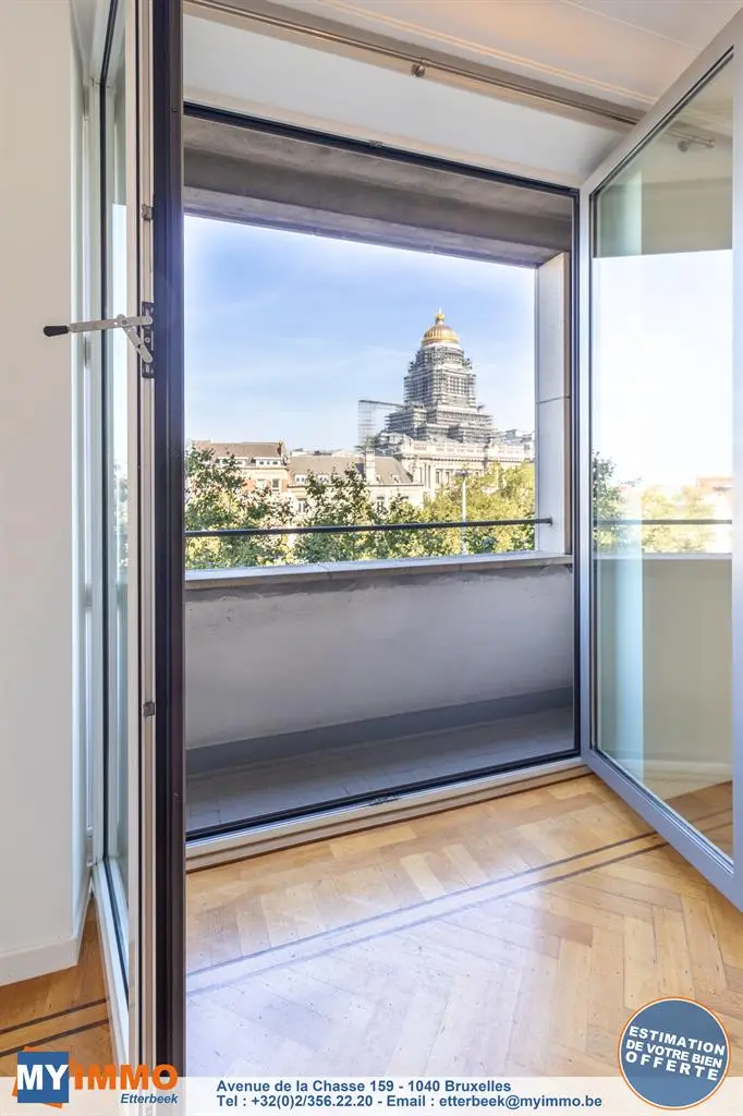 Situé dans un immeuble de standing avec concierge à 1 minute à pied du métro Hôtel des Monnaies et à proximité immédiate de la place Louise, MYIMMO Etterbeek vous propose ce magnifique appartement de +/- 149m² comprenant un grand hall d'entrée de +/- 10 m², une superbe cuisine américaine très pratique de +/- 11 m² donnant accès à une petite terrasse de service. Le grand et lumineux séjour de +/- 40 m² avec parquet en point de Hongrie offre un accès sur un petit balcon/terrasse de +/- 2 m² et une vue imprenable sur le Palais de Justice. Le hall de nuit jouissant de grands placards intégrés distribue l'espace sur une buanderie, sur une toilette invités, sur une salle de bains avec double meuble vasque, baignoire avec douche et toilette. Les 3 chambres (+/- 15 m² avec accès sur une petite terrasse de +/- 2m², +/- 14 m² avec placards intégrés et +/- 11 m²) ainsi que sur une salle de douche communicante entre les deux dernières chambres. Possibilité de louer un emplacement de parking souterrain en supplément. Emplacement idéal dans un quartier recherché à proximité de toutes les commodités, belles prestations, à visiter sans tarder ! Plus de biens sur www.myimmo.be
