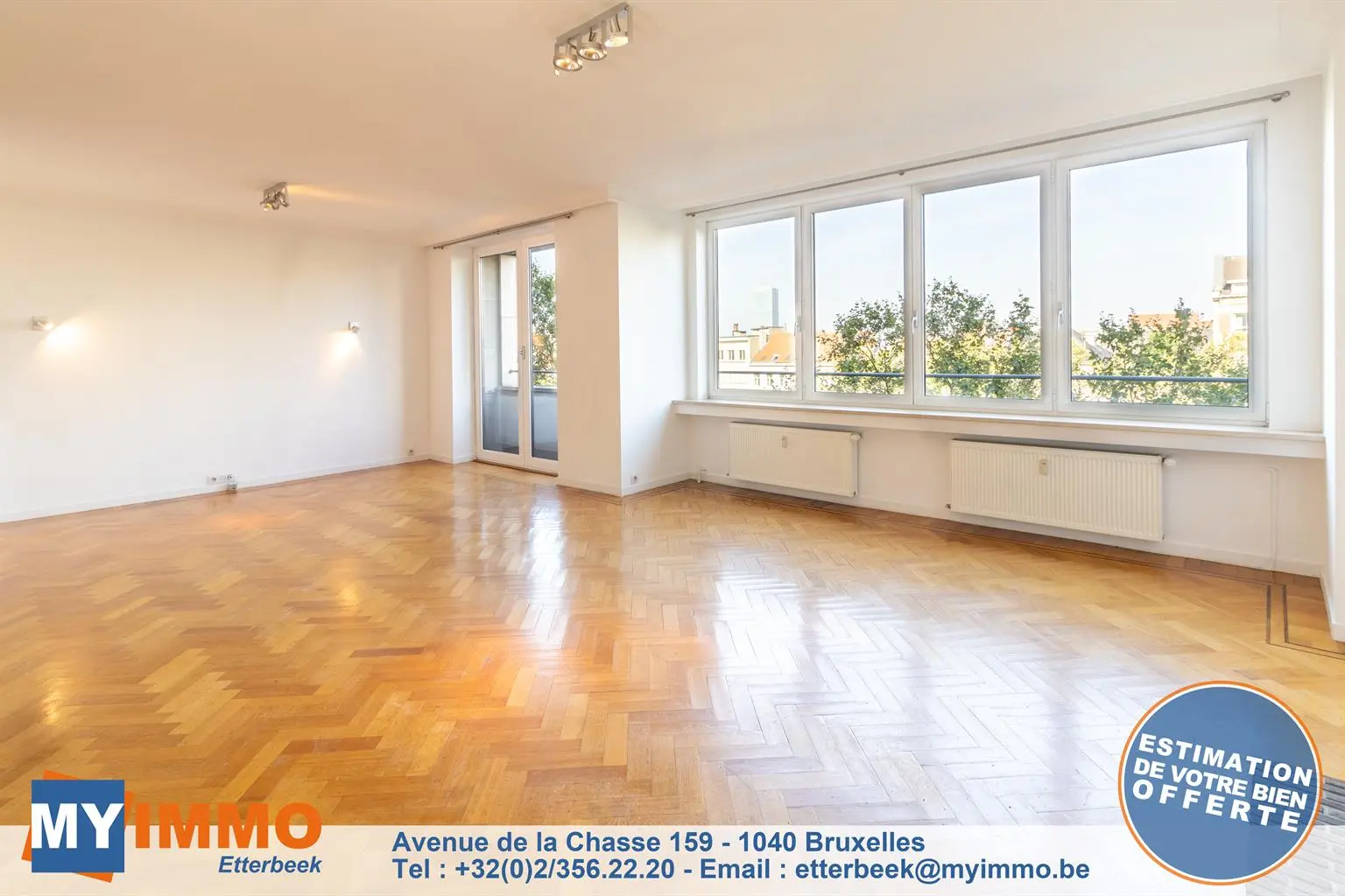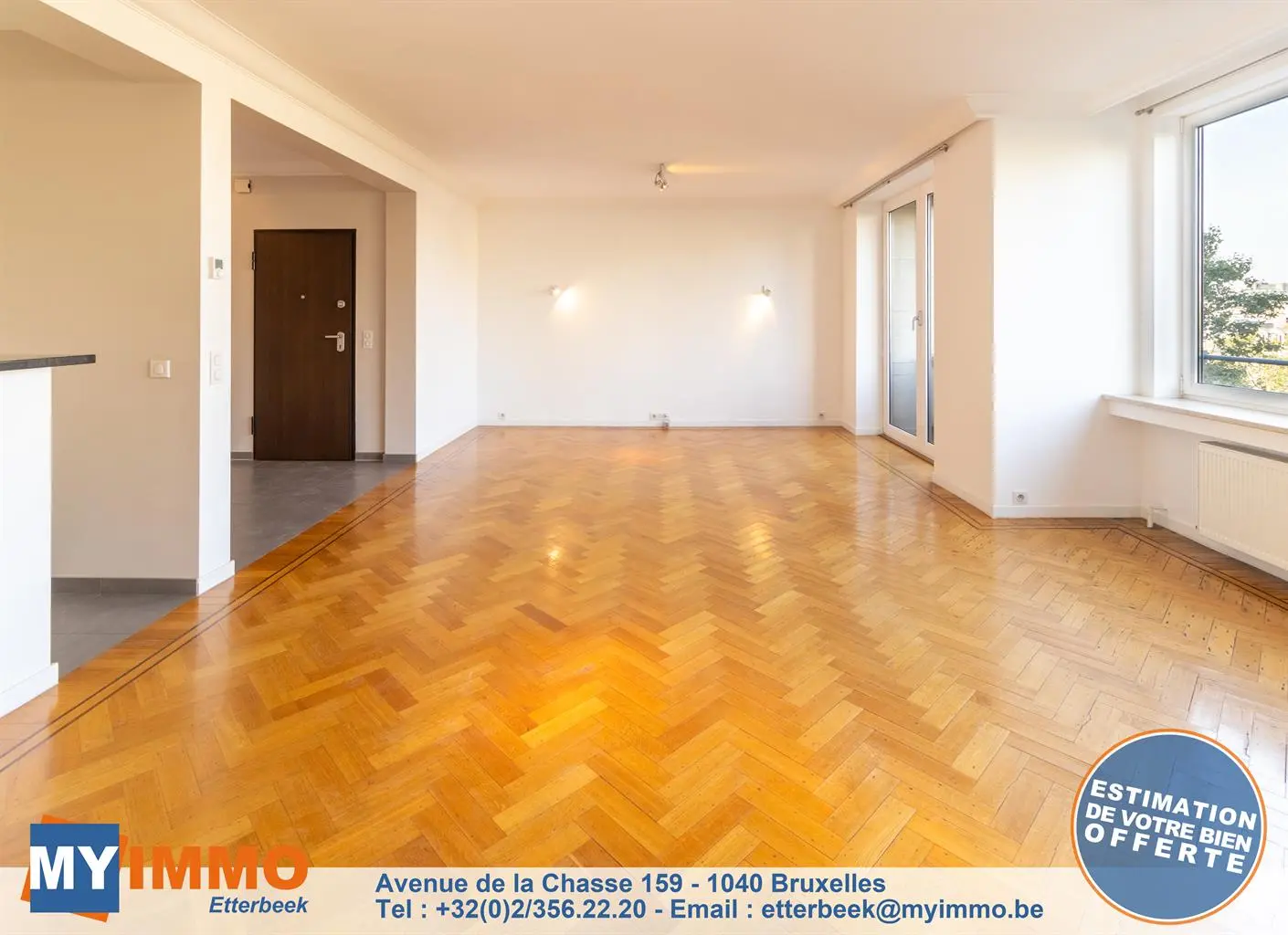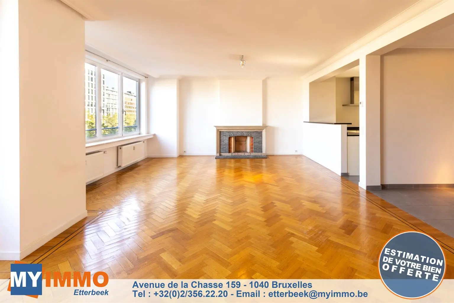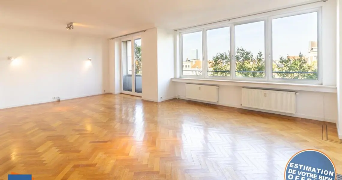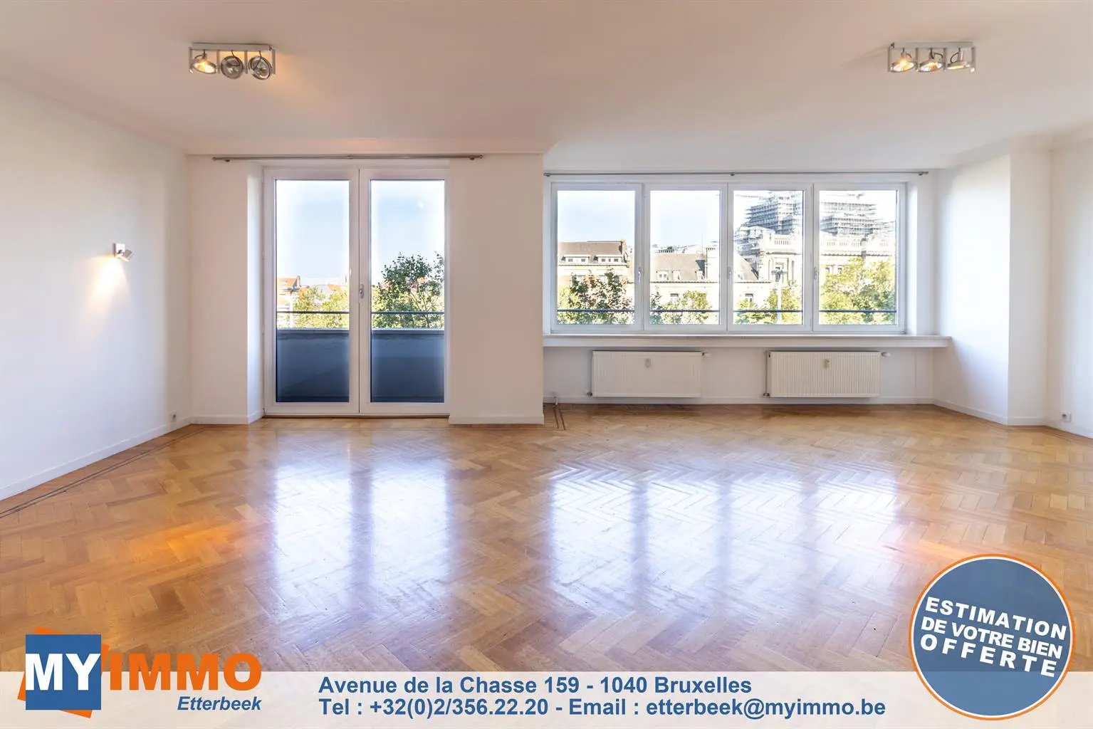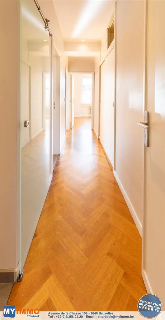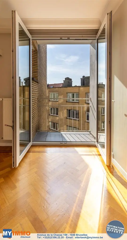 Situé dans un immeuble de standing avec concierge à 1 minute à pied du métro Hôtel des Monnaies et à proximité immédiate de la place Louise, MYIMMO Etterbeek vous propose ce magnifique appartement de +/- 149m² comprenant un grand hall d'entrée de +/- 10 m², une superbe cuisine américaine très pratique de +/- 11 m² donnant accès à une petite terrasse de service. Le grand et lumineux séjour de +/- 40 m² avec parquet en point de Hongrie offre un accès sur un petit balcon/terrasse de +/- 2 m² et une vue imprenable sur le Palais de Justice. Le hall de nuit jouissant de grands placards intégrés distribue l'espace sur une buanderie, sur une toilette invités, sur une salle de bains avec double meuble vasque, baignoire avec douche et toilette. Les 3 chambres (+/- 15 m² avec accès sur une petite terrasse de +/- 2m², +/- 14 m² avec placards intégrés et +/- 11 m²) ainsi que sur une salle de douche communicante entre les deux dernières chambres. Possibilité de louer un emplacement de parking souterrain en supplément. Emplacement idéal dans un quartier recherché à proximité de toutes les commodités, belles prestations, à visiter sans tarder ! Plus de biens sur www.myimmo.be