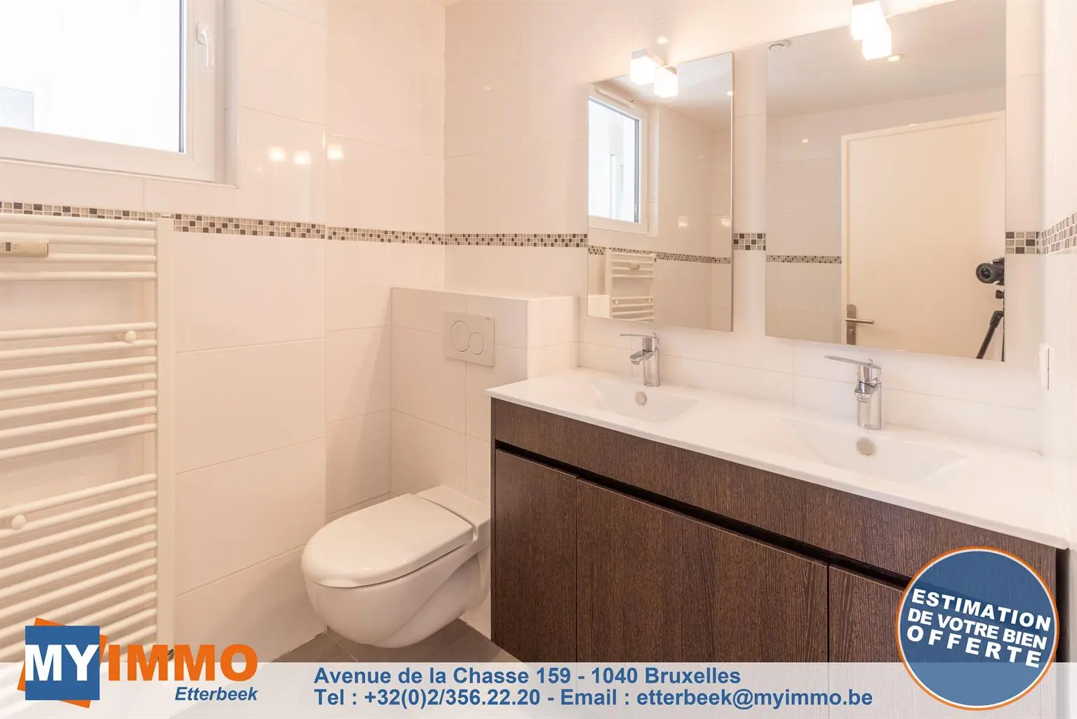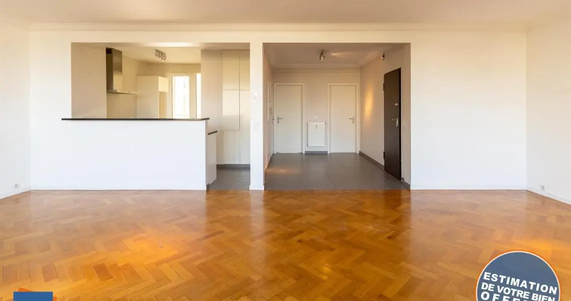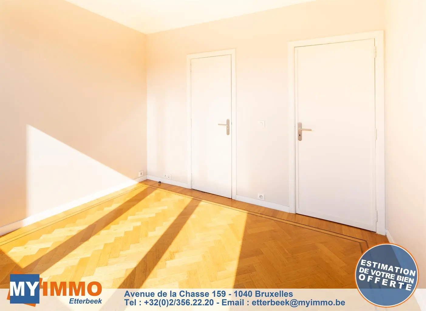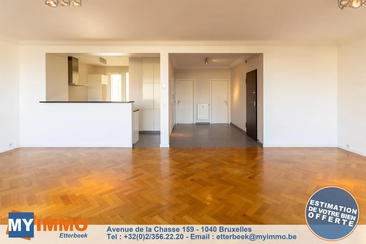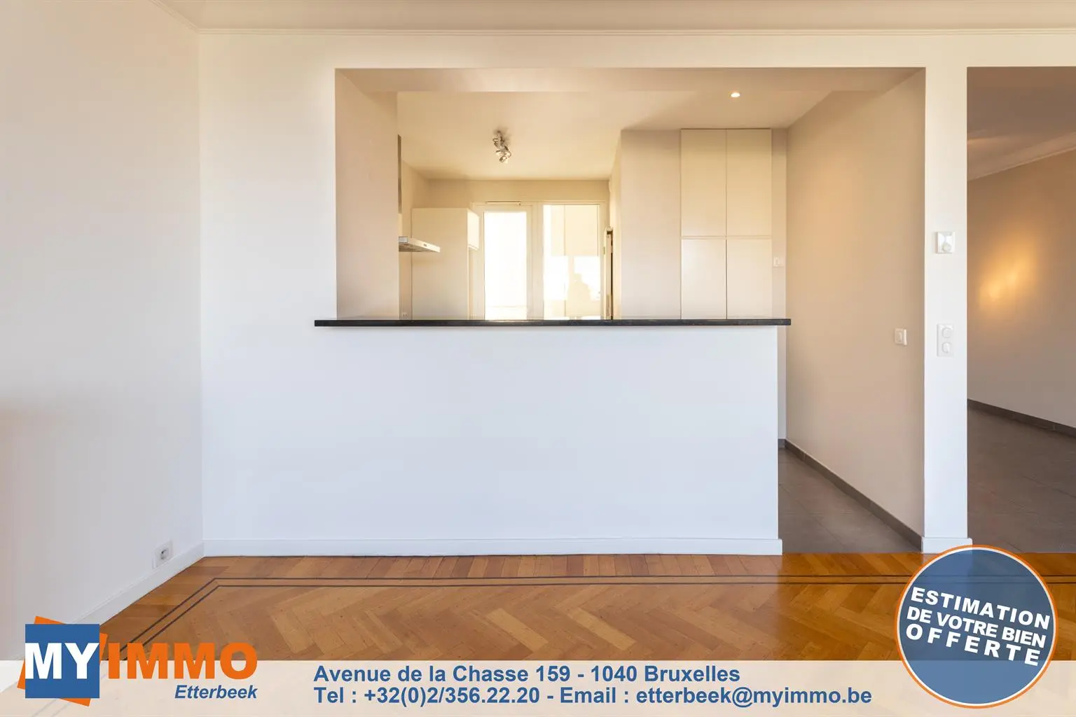 Situé dans un immeuble de standing avec concierge à 1 minute à pied du métro Hôtel des Monnaies et à proximité immédiate de la place Louise, MYIMMO Etterbeek vous propose ce magnifique appartement de +/- 149m² comprenant un grand hall d'entrée de +/- 10 m², une superbe cuisine américaine très pratique de +/- 11 m² donnant accès à une petite terrasse de service. Le grand et lumineux séjour de +/- 40 m² avec parquet en point de Hongrie offre un accès sur un petit balcon/terrasse de +/- 2 m² et une vue imprenable sur le Palais de Justice. Le hall de nuit jouissant de grands placards intégrés distribue l'espace sur une buanderie, sur une toilette invités, sur une salle de bains avec double meuble vasque, baignoire avec douche et toilette. Les 3 chambres (+/- 15 m² avec accès sur une petite terrasse de +/- 2m², +/- 14 m² avec placards intégrés et +/- 11 m²) ainsi que sur une salle de douche communicante entre les deux dernières chambres. Possibilité de louer un emplacement de parking souterrain en supplément. Emplacement idéal dans un quartier recherché à proximité de toutes les commodités, belles prestations, à visiter sans tarder ! Plus de biens sur www.myimmo.be