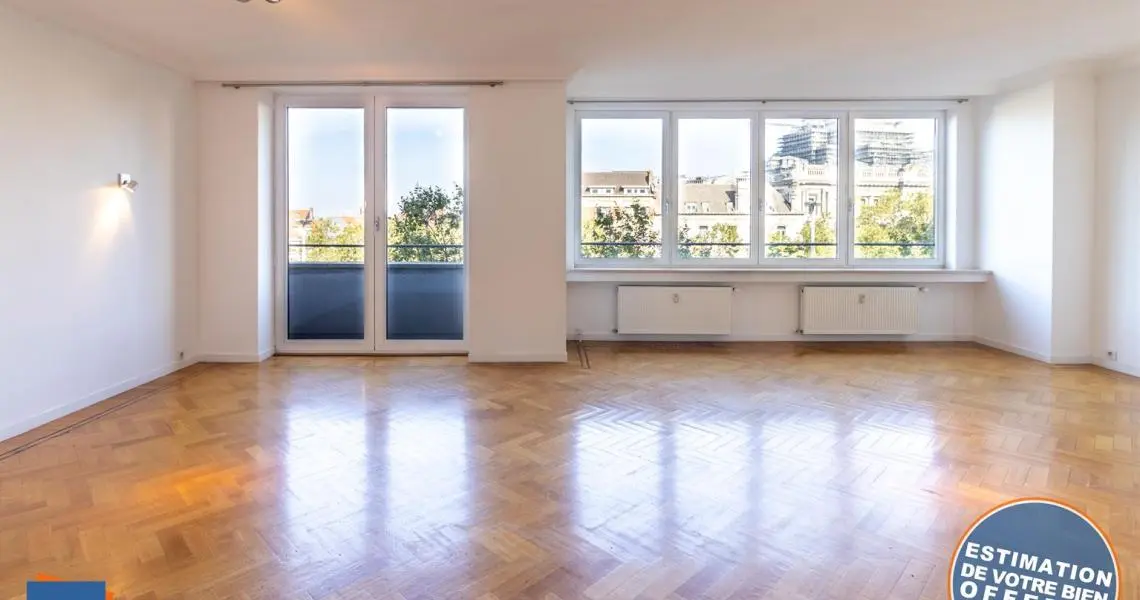 Situé dans un immeuble de standing avec concierge à 1 minute à pied du métro Hôtel des Monnaies et à proximité immédiate de la place Louise, MYIMMO Etterbeek vous propose ce magnifique appartement de +/- 149m² comprenant un grand hall d'entrée de +/- 10 m², une superbe cuisine américaine très pratique de +/- 11 m² donnant accès à une petite terrasse de service. Le grand et lumineux séjour de +/- 40 m² avec parquet en point de Hongrie offre un accès sur un petit balcon/terrasse de +/- 2 m² et une vue imprenable sur le Palais de Justice. Le hall de nuit jouissant de grands placards intégrés distribue l'espace sur une buanderie, sur une toilette invités, sur une salle de bains avec double meuble vasque, baignoire avec douche et toilette. Les 3 chambres (+/- 15 m² avec accès sur une petite terrasse de +/- 2m², +/- 14 m² avec placards intégrés et +/- 11 m²) ainsi que sur une salle de douche communicante entre les deux dernières chambres. Possibilité de louer un emplacement de parking souterrain en supplément. Emplacement idéal dans un quartier recherché à proximité de toutes les commodités, belles prestations, à visiter sans tarder ! Plus de biens sur www.myimmo.be