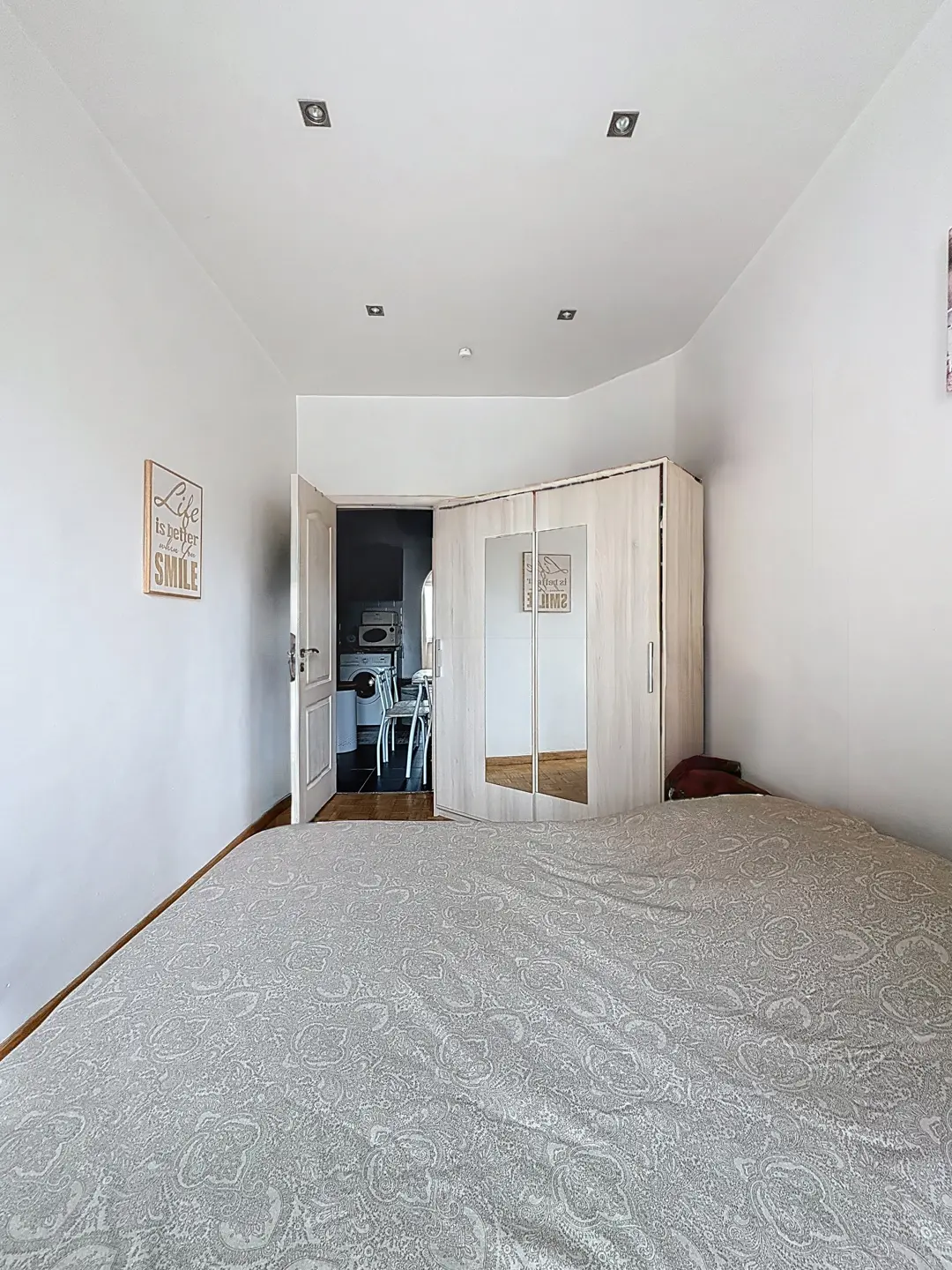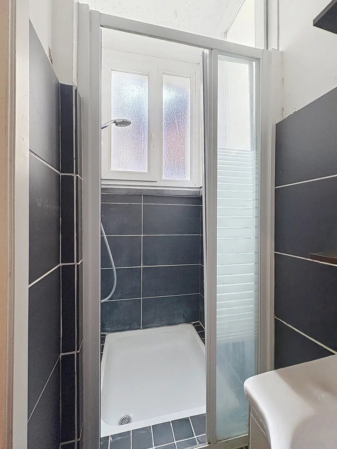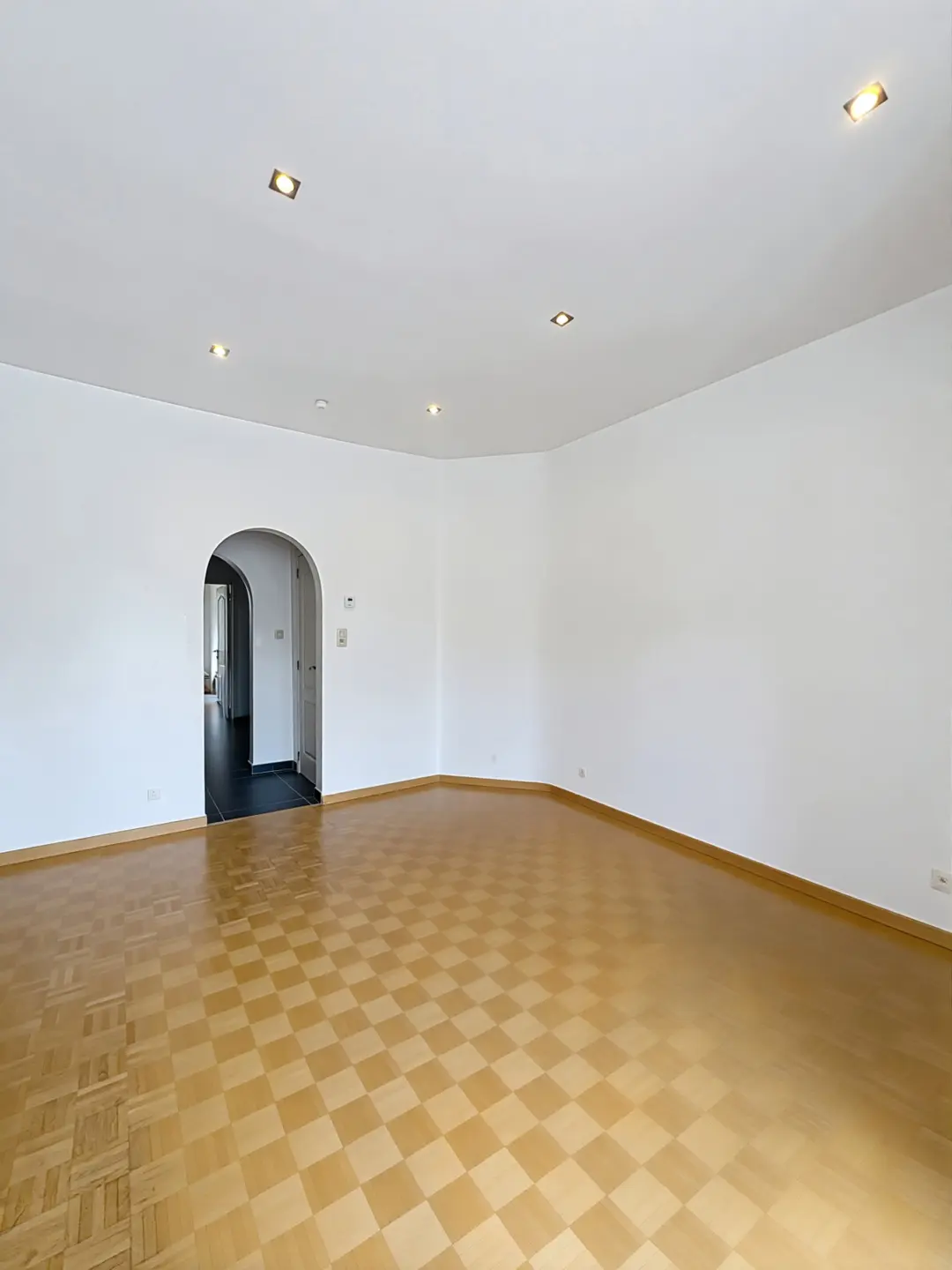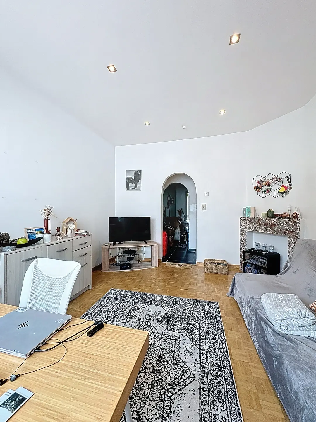 Il se compose d’un hall d’entrée, d’un lumineux séjour de ± 15 m² en façade avant, d’une cuisine semi-équipée de ± 8 m² avec coin déjeuner ouverte sur le séjour, d’une chambre en façade arrière de ± 10 m², d’une salle de douche de ± 2 m² et d’une toilette séparée. Le bien dispose également de 2 caves.