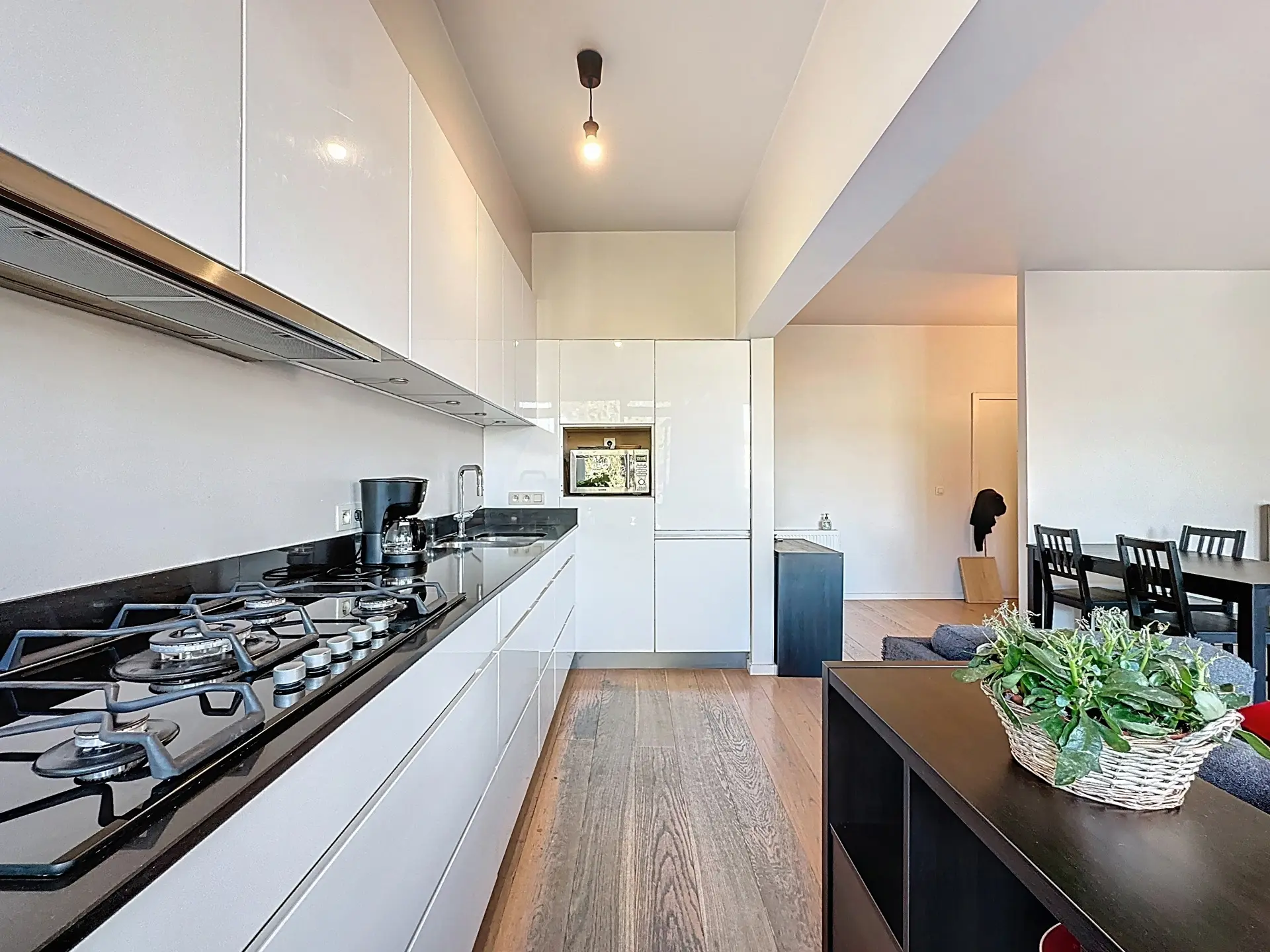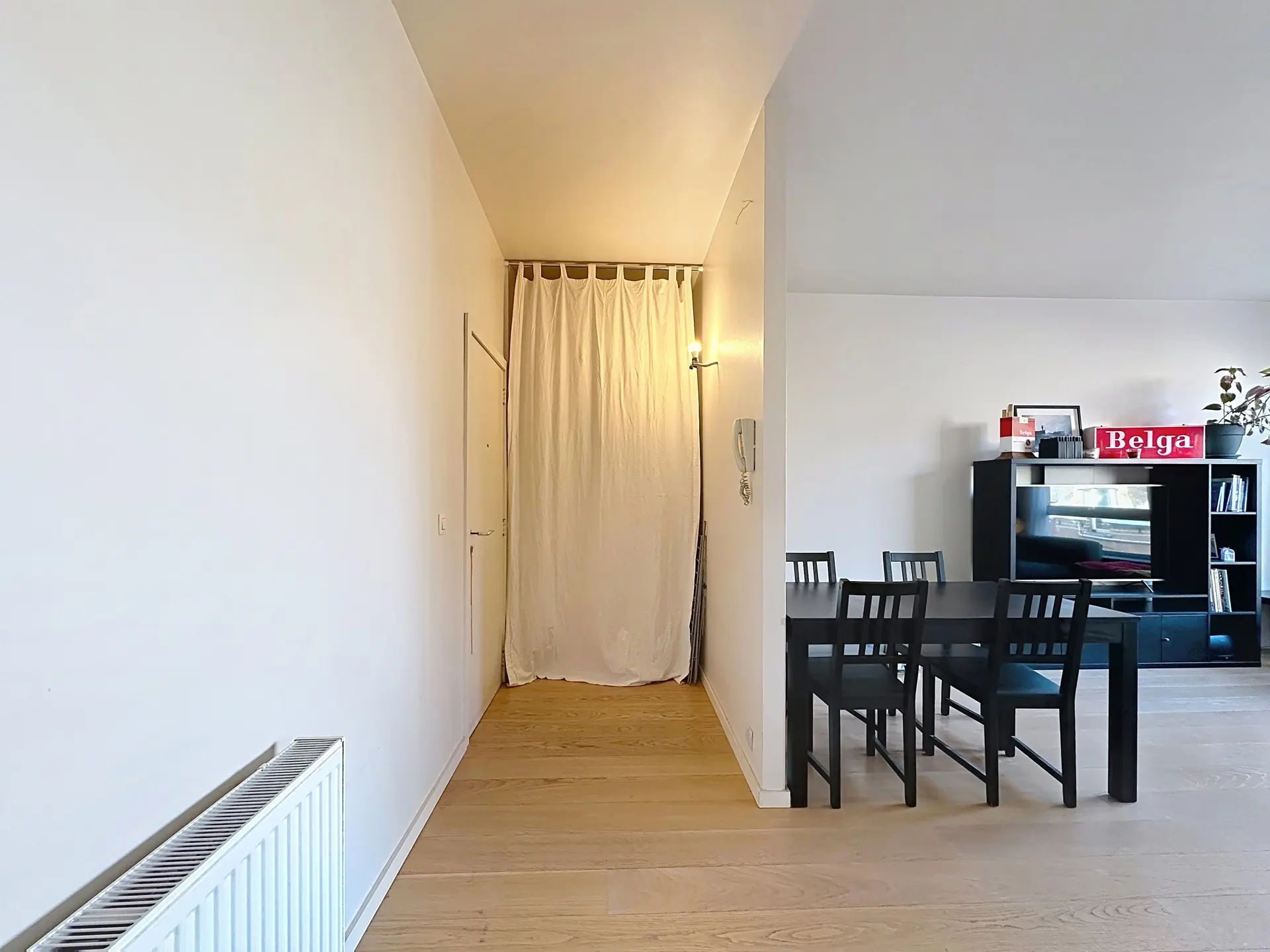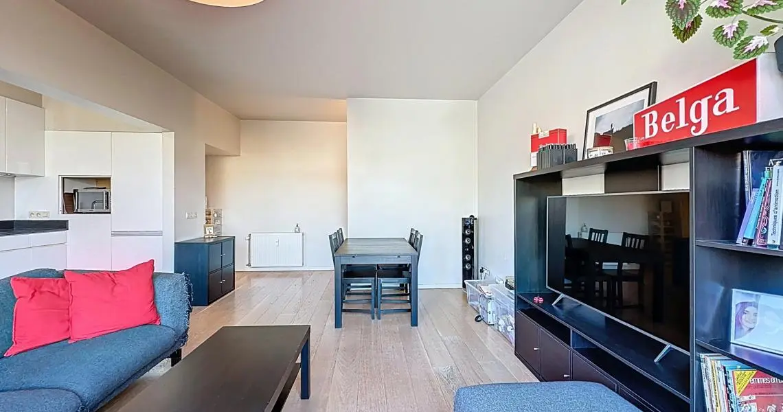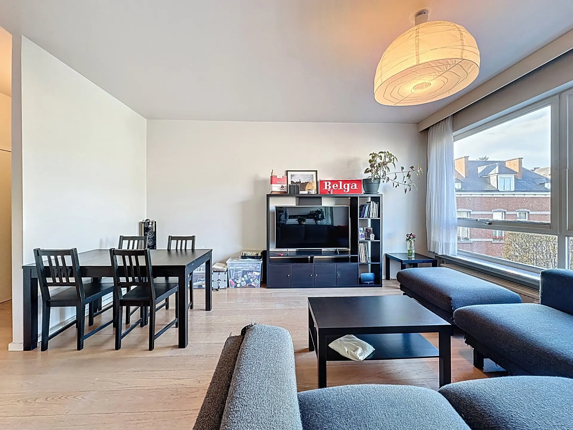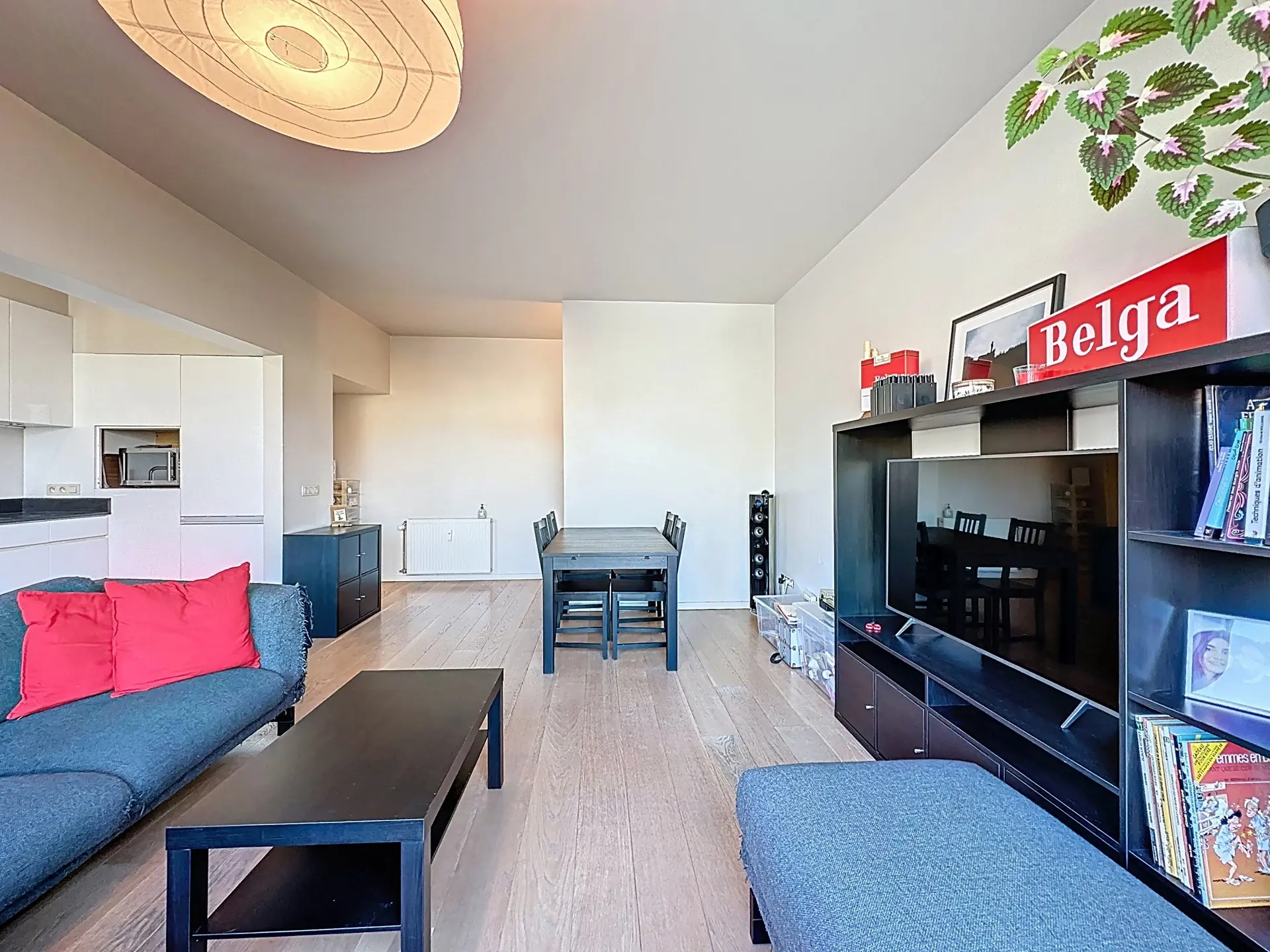 Cet appartement se présente comme suit : un hall d’entrée, un spacieux lumineux séjour/salle à manger +/- 30 m2 avec une cuisine super-équipée donnant accès à un balcon, un hall de nuit équipé (avec machine à laver), une chambre +/- 13 m2, une salle de bains, un WC séparé et une cave.