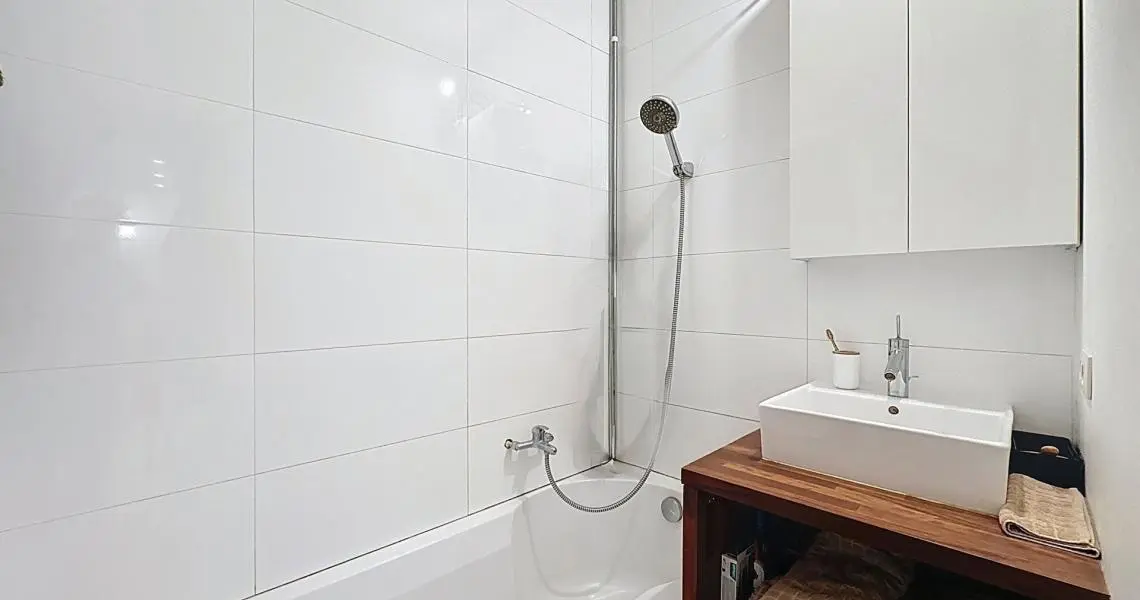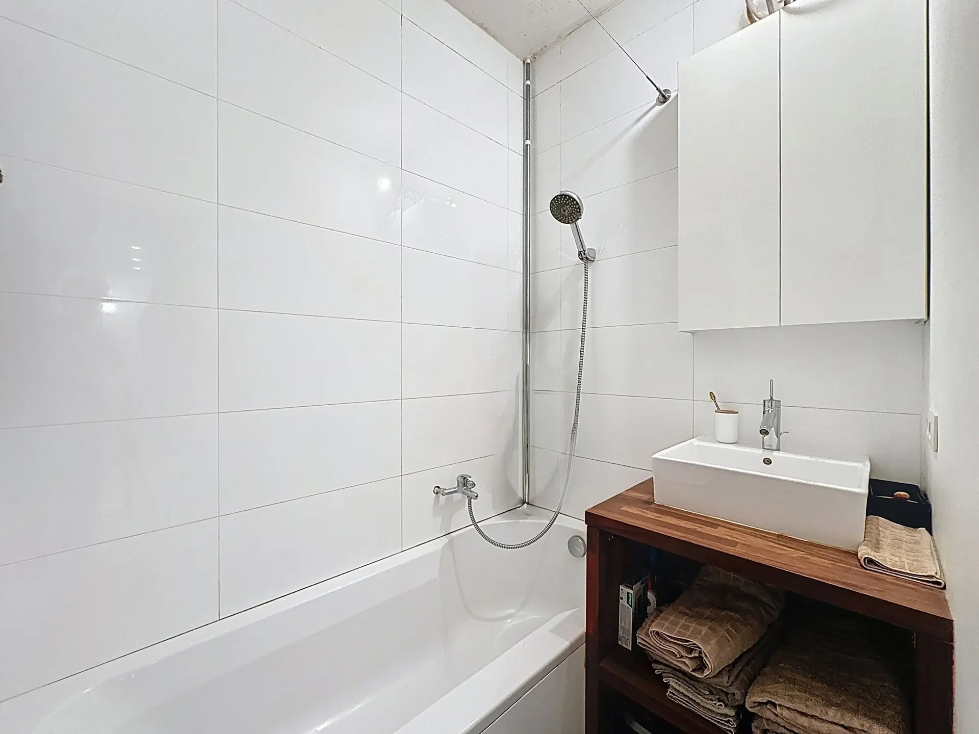 L’appartement bénéficie également d’un garage intérieur. Cependant, celui-ci n’a pas la taille nécessaire pour accueillir une voiture.