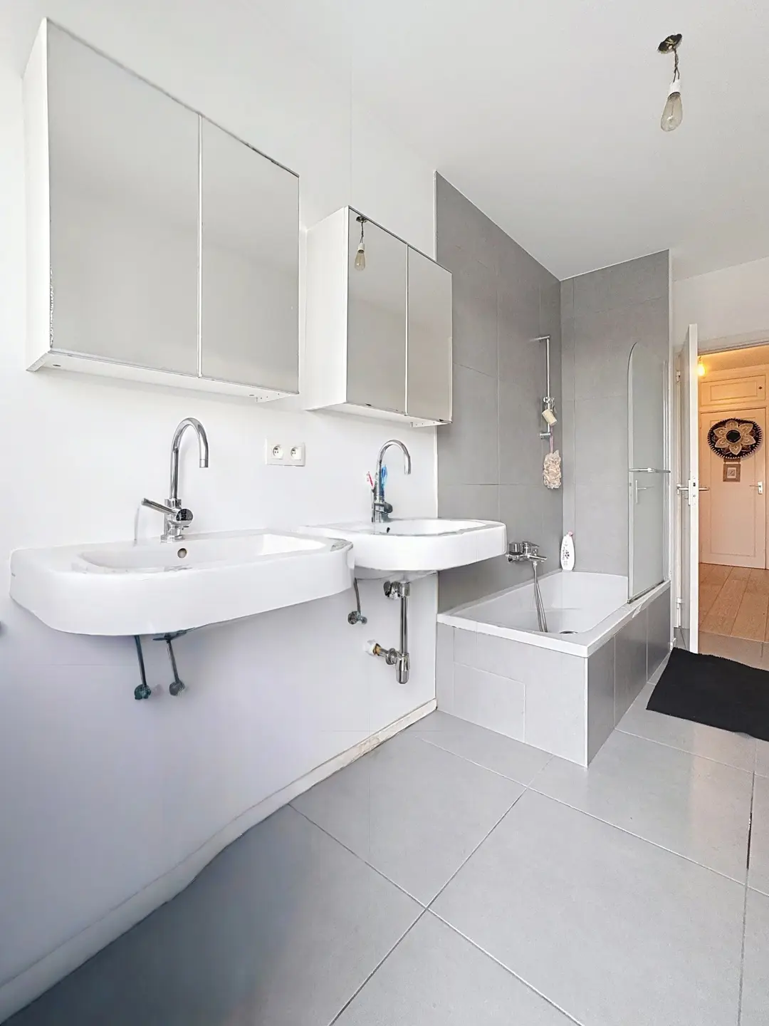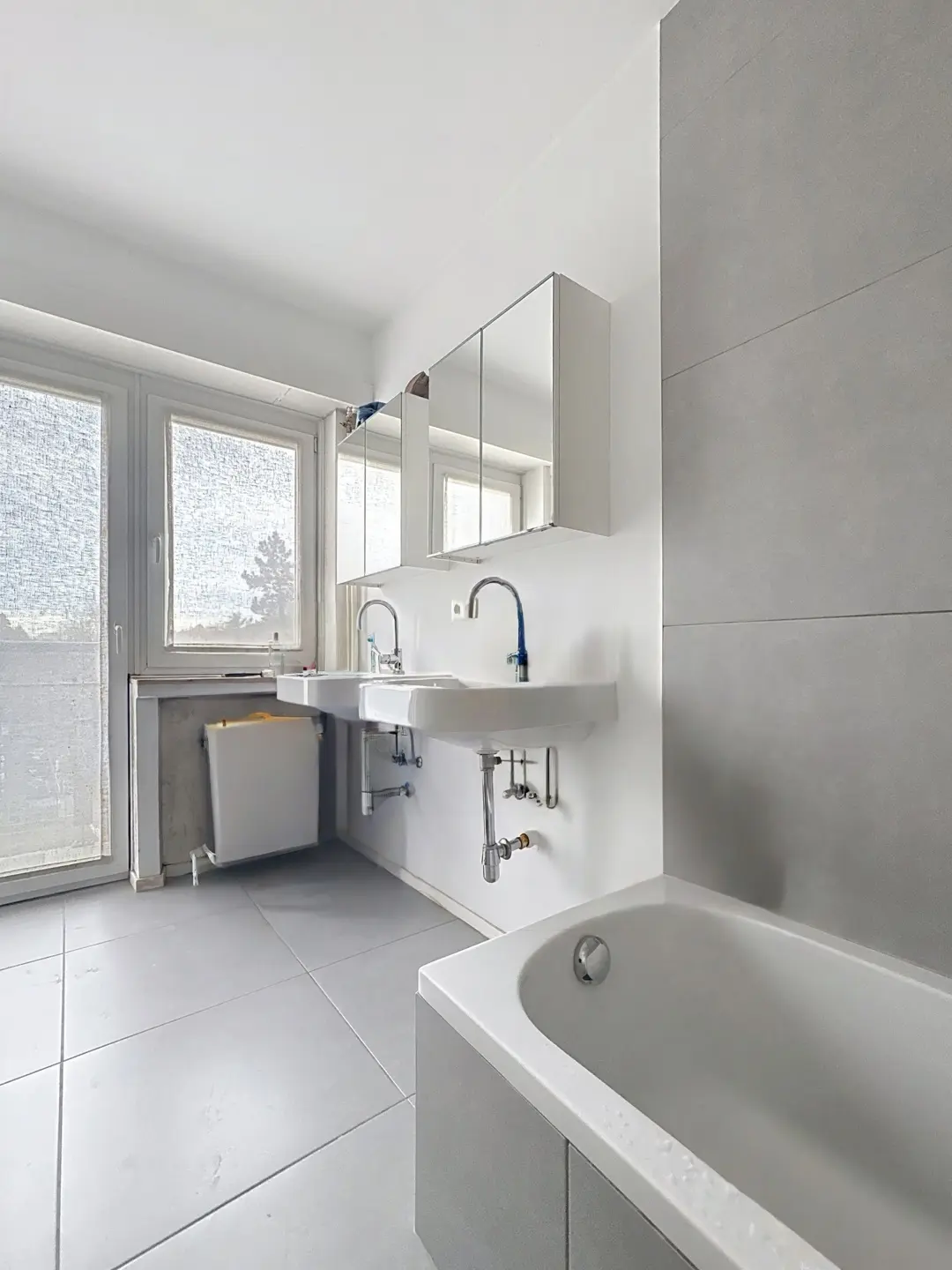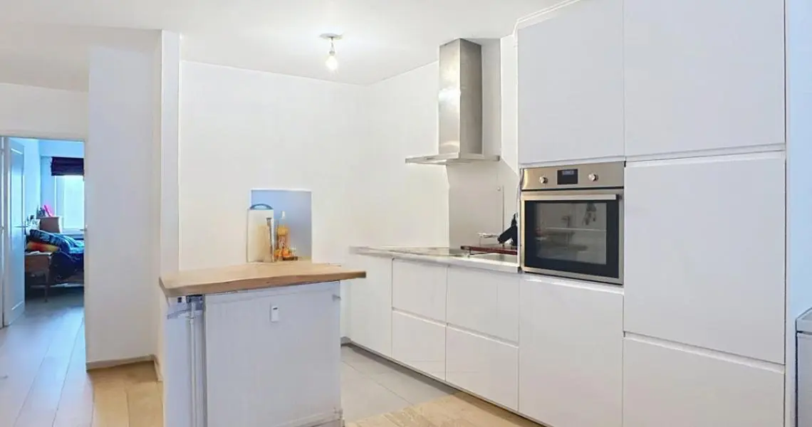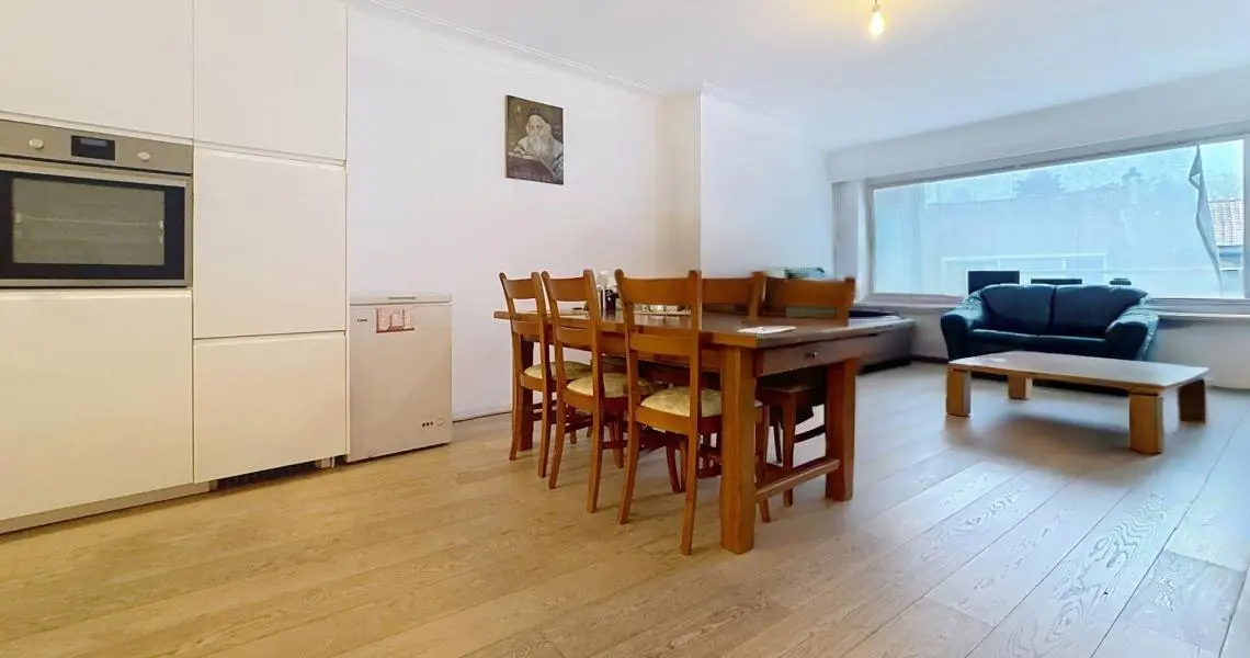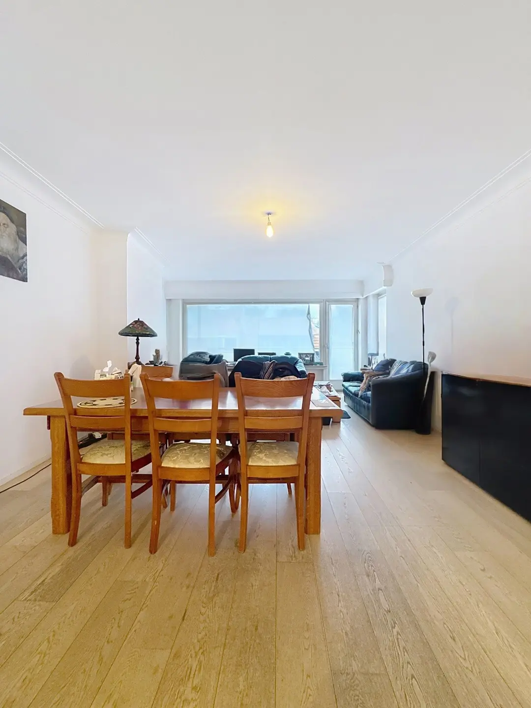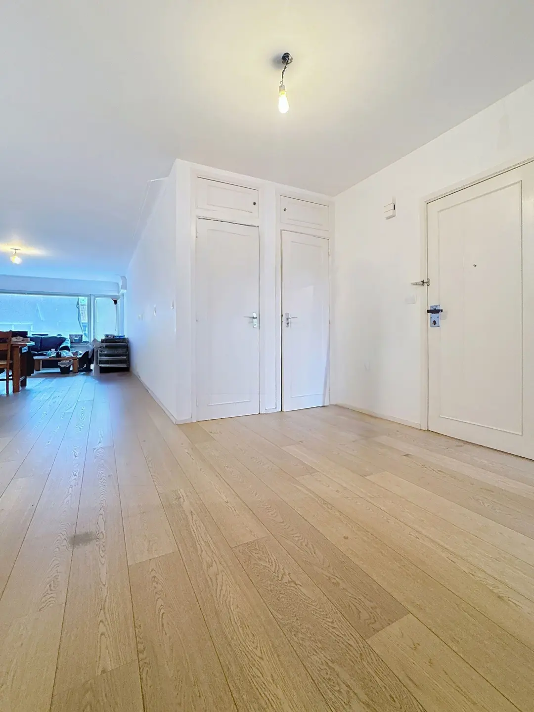 L’appartement se compose d’un hall d’entrée avec placards et vestiaire, menant à un spacieux séjour de ±45 m², baigné de lumière naturelle et donnant accès à une petite terrasse à l’avant. La cuisine américaine, conviviale et fonctionnelle, s’intègre parfaitement à l’espace de vie et se prête idéalement aux moments de réception.