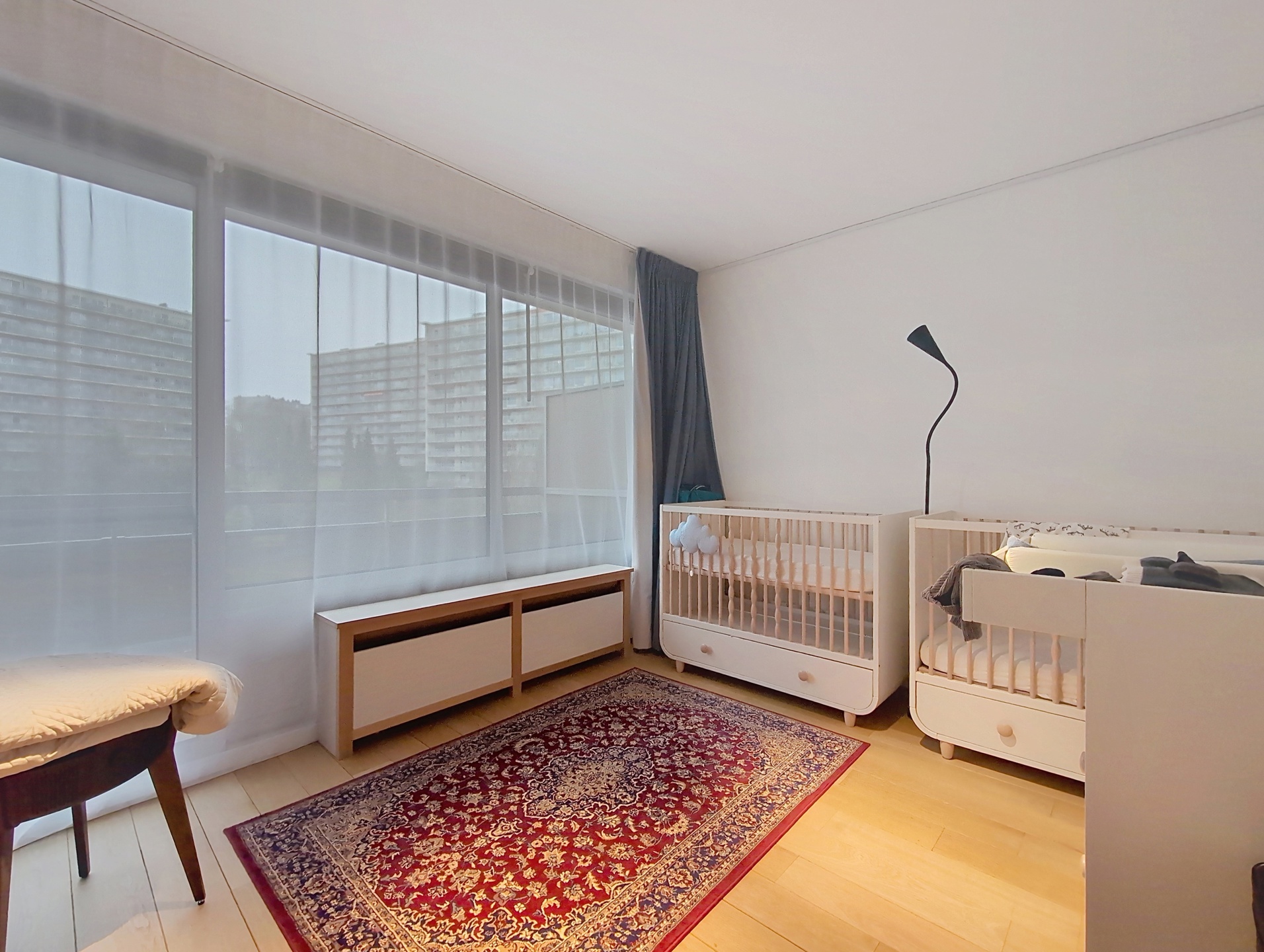 L’espace nuit comprend un hall, deux chambres confortables dont une grande chambre principale avec dressing intégré de ± 17 m² et une seconde chambre lumineuse de ± 12 m².