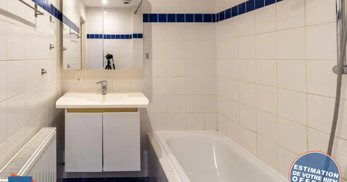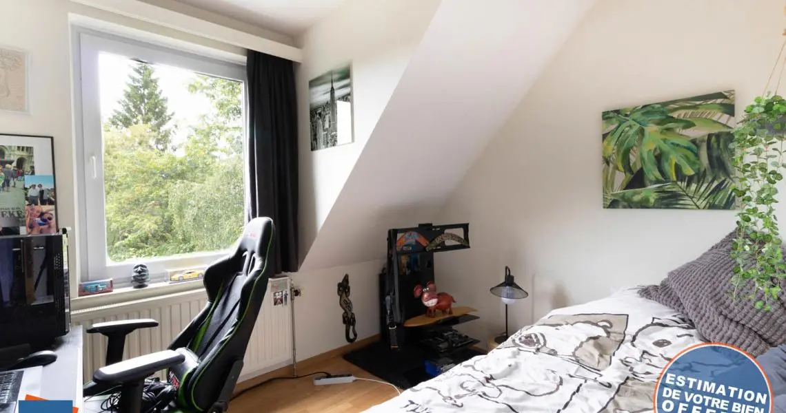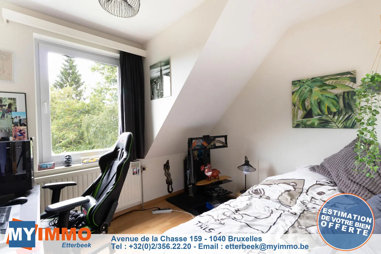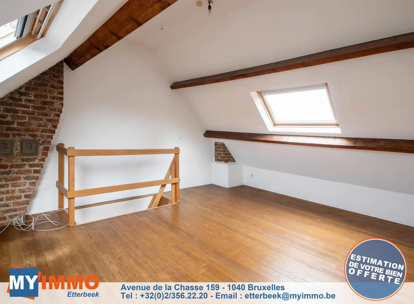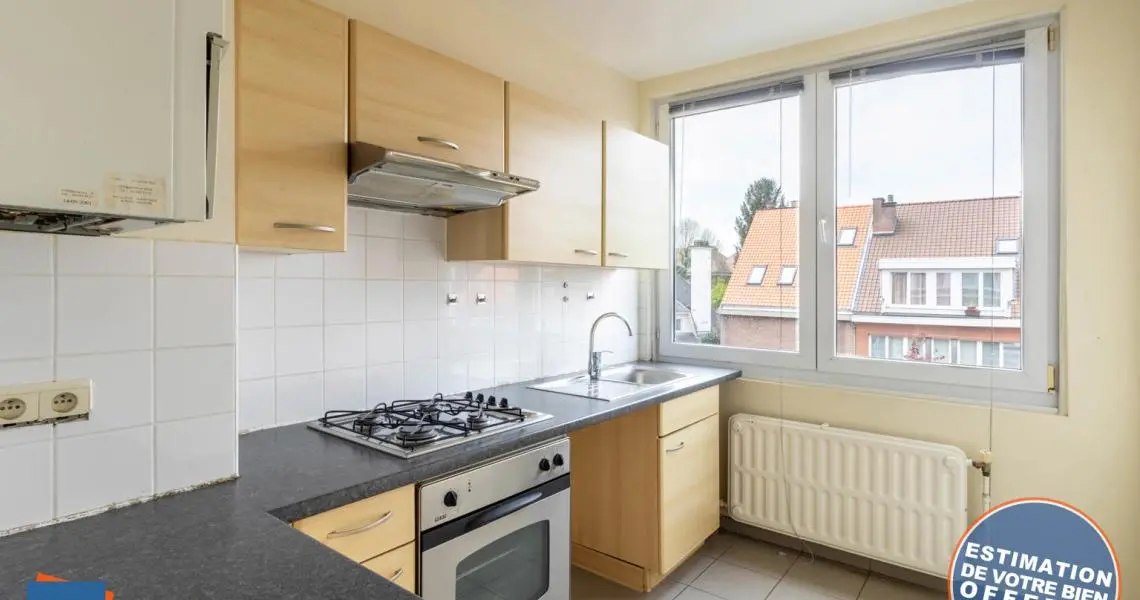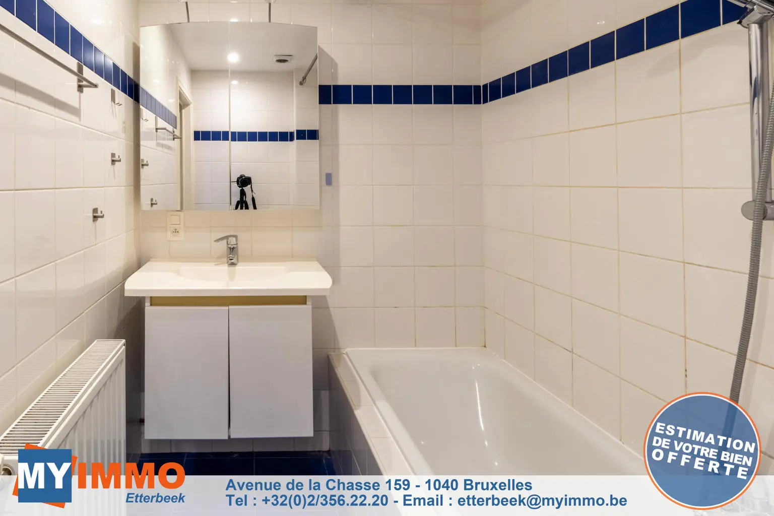 Watermael-Boitsfort - Bel appartement de +/- 90 m² dans un immeuble de charme de 1968 idéalement situé dans le quartier calme et boisé des Trois Tilleuls comprenant un hall d'entrée donnant accès à une cuisine semi-équipée et à une grande pièce à vivre de +/- 21 m² avec sa chambre lumineuse de +/- 27 m² au sol en duplex. Un hall de nuit donnant accès à deux chambres de +/- 13 m² et +/- 8 m² et une salle de bains. L'appartement comprend également une cave avec les raccordements pour la machine à laver et le séchoir. Un garage est obligatoire (+ place de parking devant le garage) pour 100€ supplémentaire. À visiter sans tarder, plus de biens sur www.myimmo.be