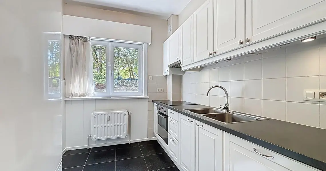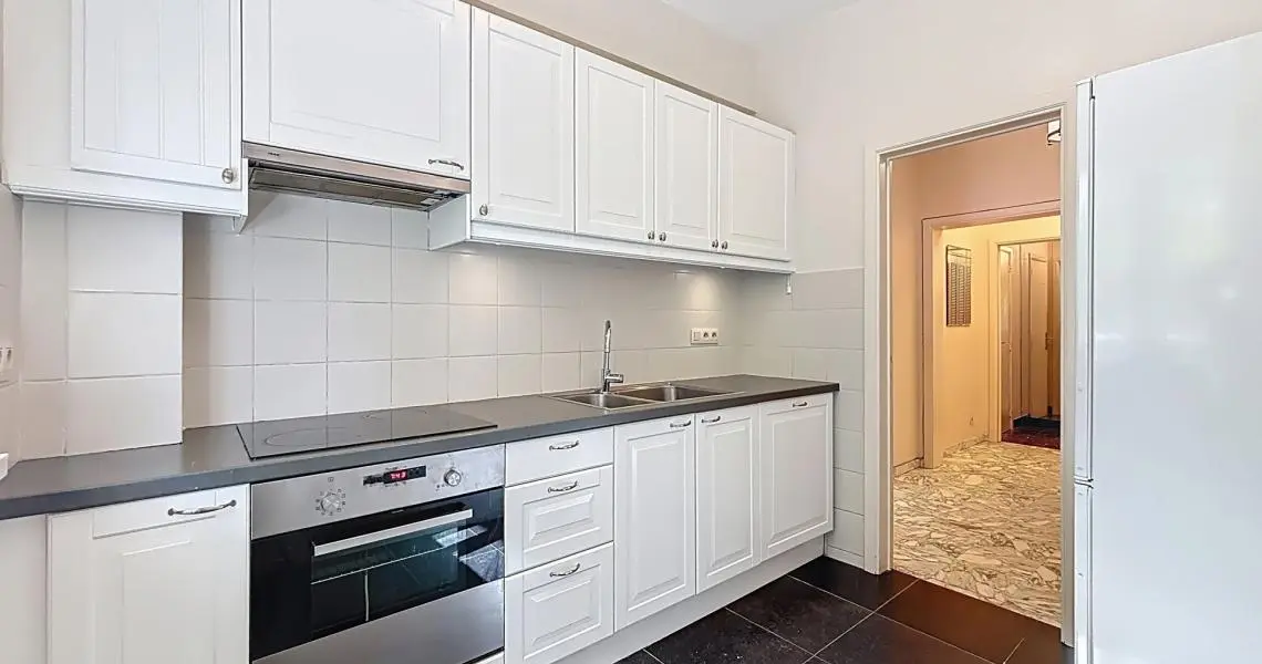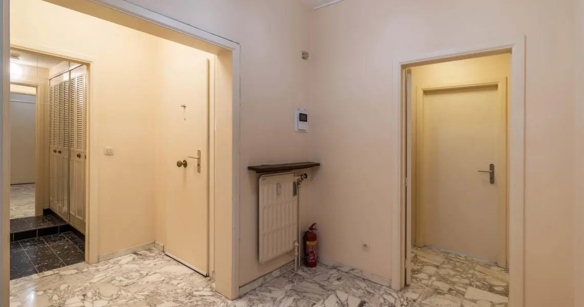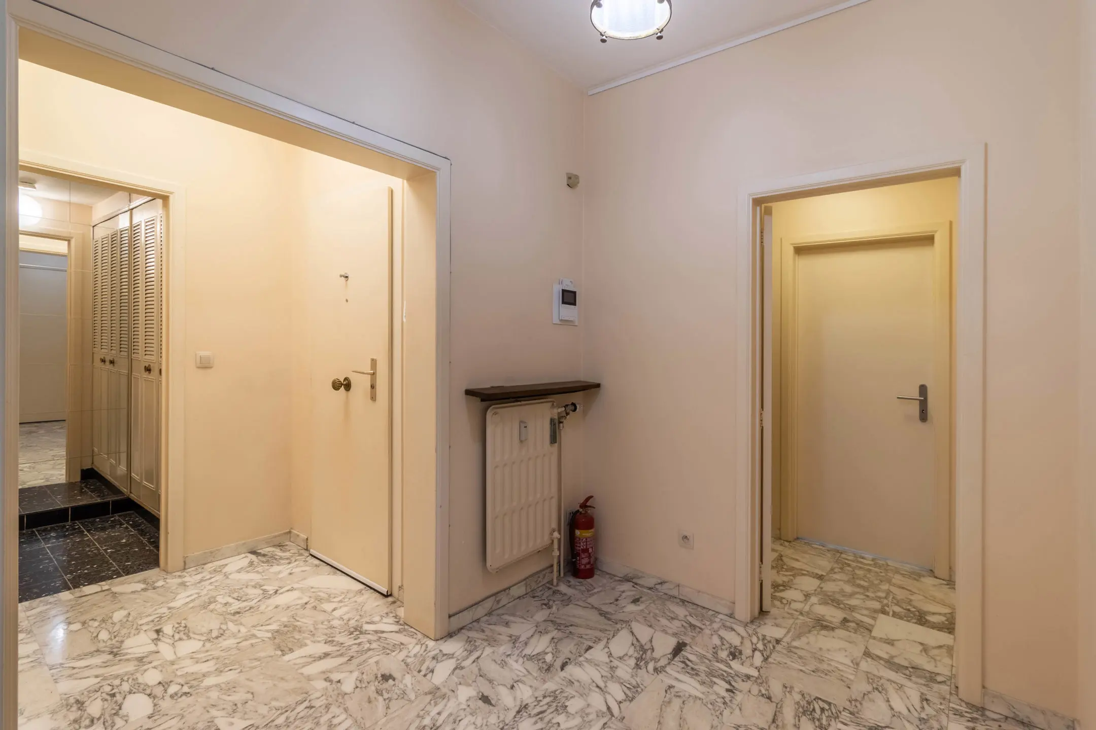 Il se compose d’un vaste hall d’entrée en marbre avec WC séparé et rangement, menant à un lumineux séjour de ±37 m² et une cuisine super-équipée remise à neuf.