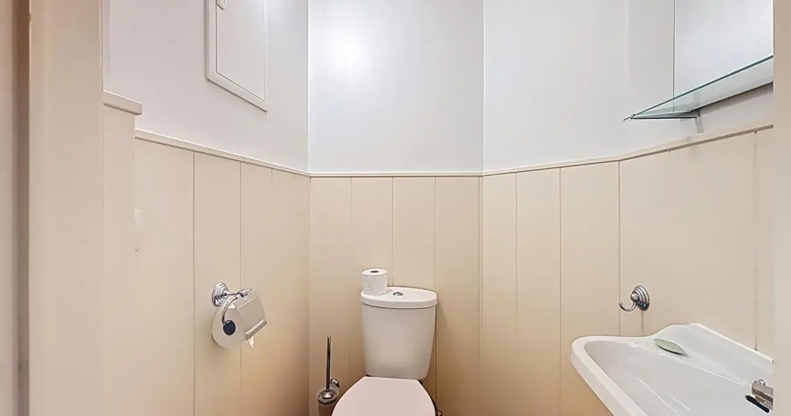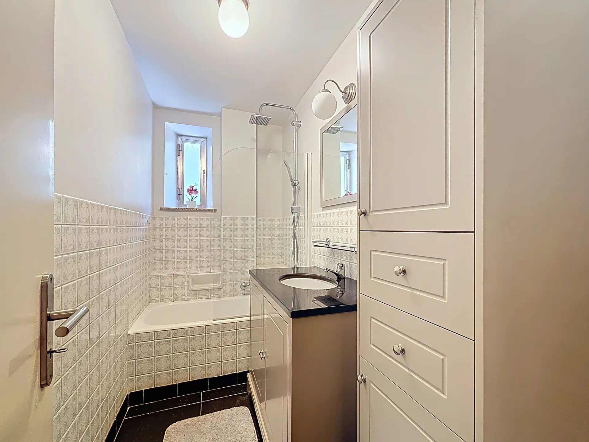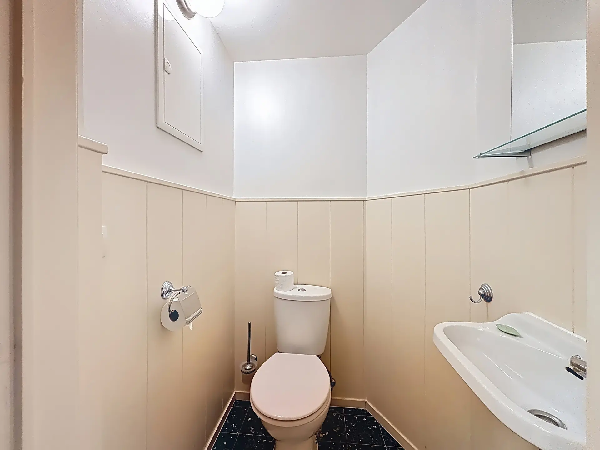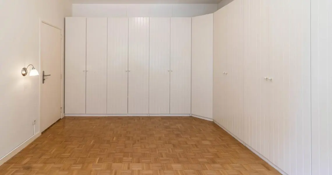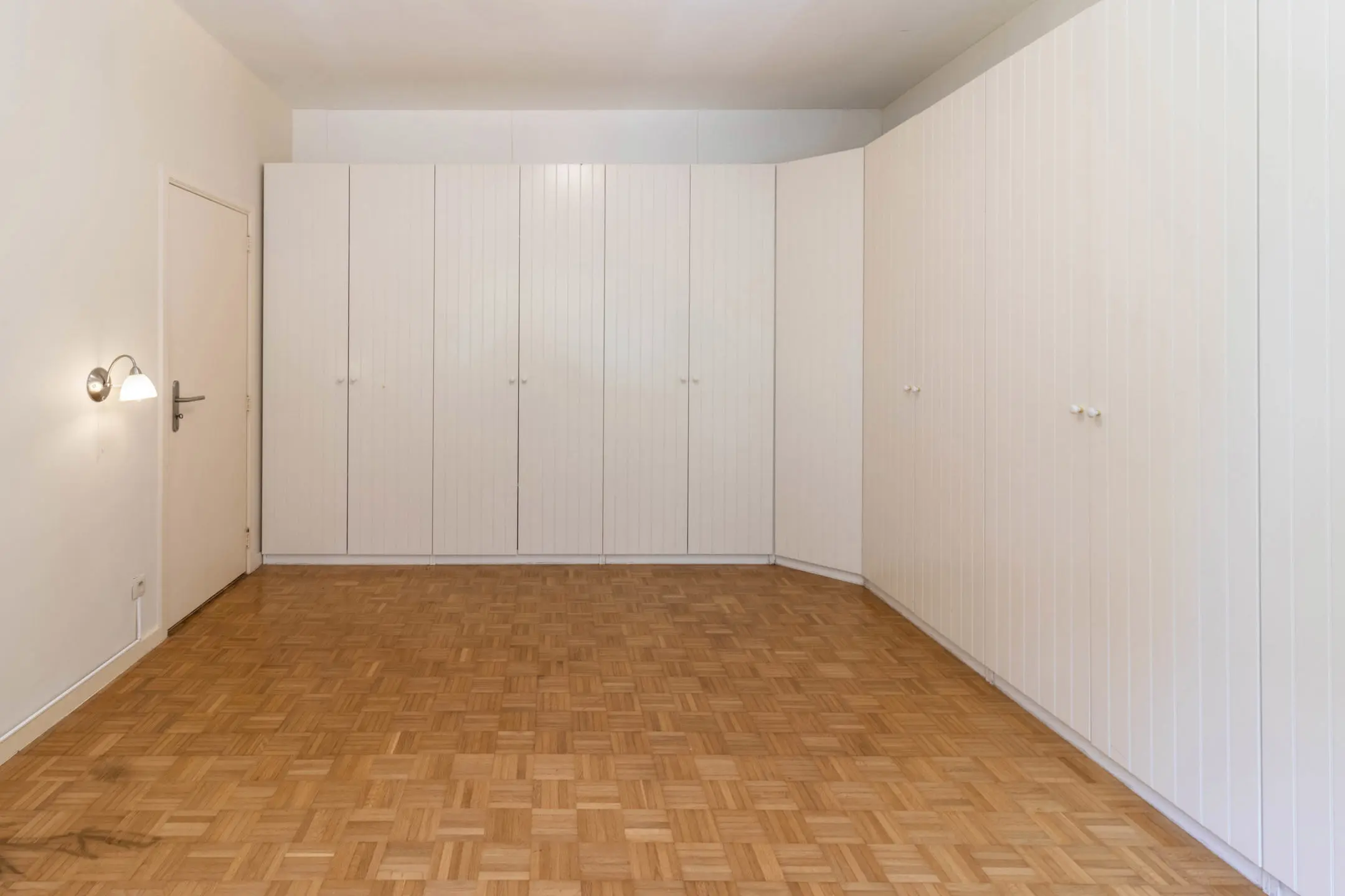 Le hall de nuit avec placards dessert une grande chambre de ±20 m² avec armoires encastrées et isolation acoustique, ainsi qu’une salle de bain remis à neuf également.