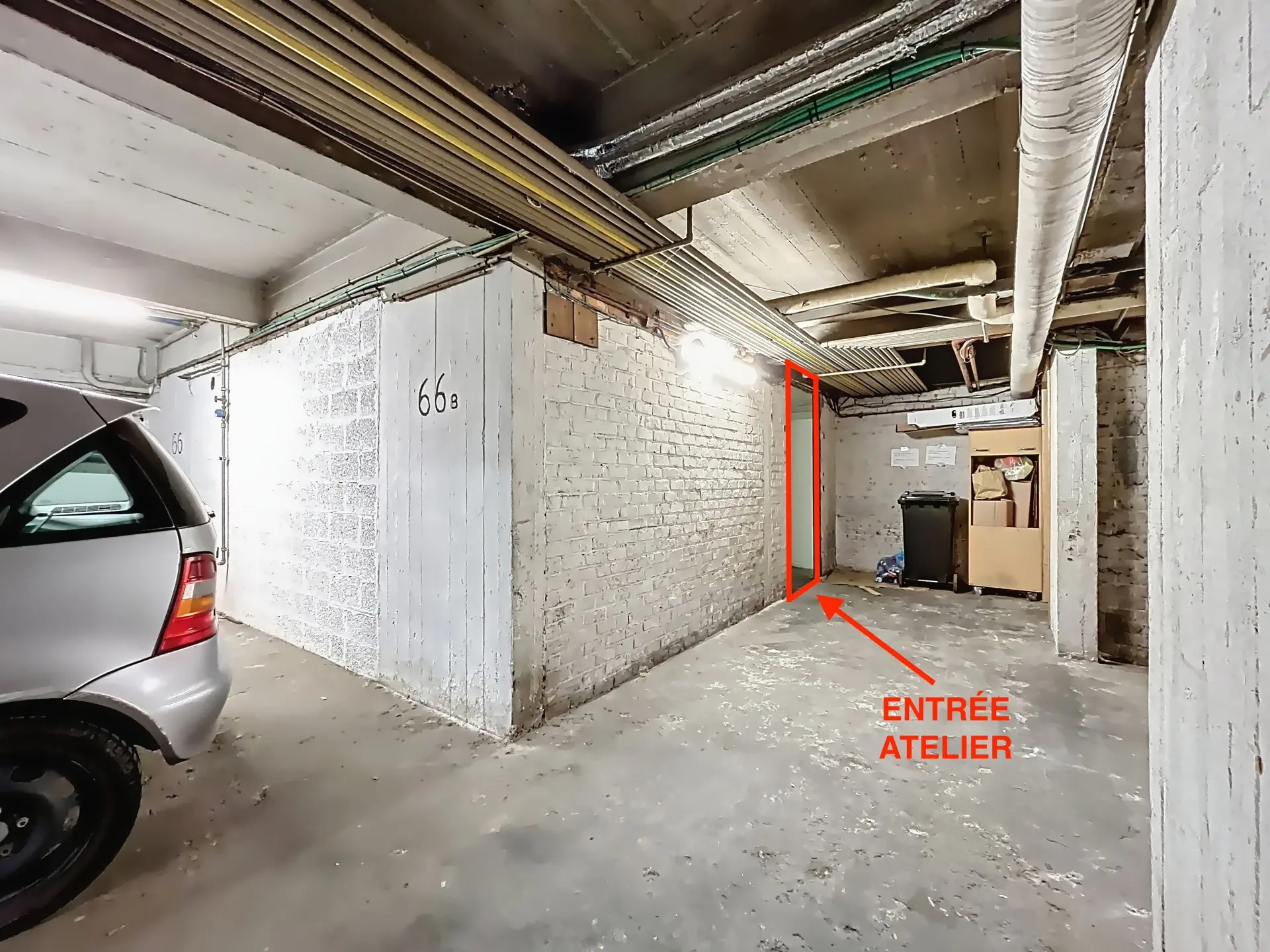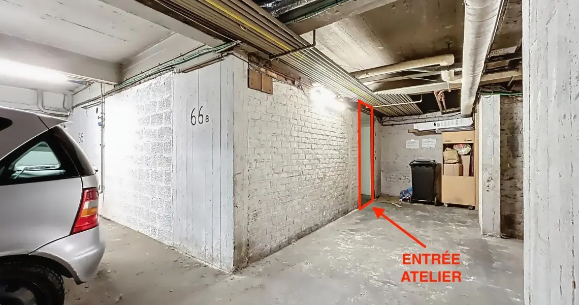Situé en plein cœur du très prisé quartier Européen à Etterbeek, à deux pas des institutions européennes et de toutes les commodités, Myimmo Etterbeek a le plaisir de vous présenter en exclusivité ce bien unique, qui combine un atelier polyvalent de 42 m² avec deux emplacements de parking intérieurs (dénommé aires) côte à côte. L’atelier, parfaitement adapté à un usage professionnel, créatif ou de stockage, bénéficie d’une bonne isolation acoustique, d’un WC séparé et de faibles charges mensuelles (35 € seulement). Les deux parkings sécurisés offrent un accès facile, avec des dimensions confortables par emplacement (longueur 4,5 m, largeur 2,6 m, hauteur 1,92 m), compatibles avec la majorité des véhicules. Que ce soit pour un usage personnel, une activité indépendante ou comme investissement, cette opportunité est extrêmement rare dans ce secteur recherché. À visiter sans tarder !