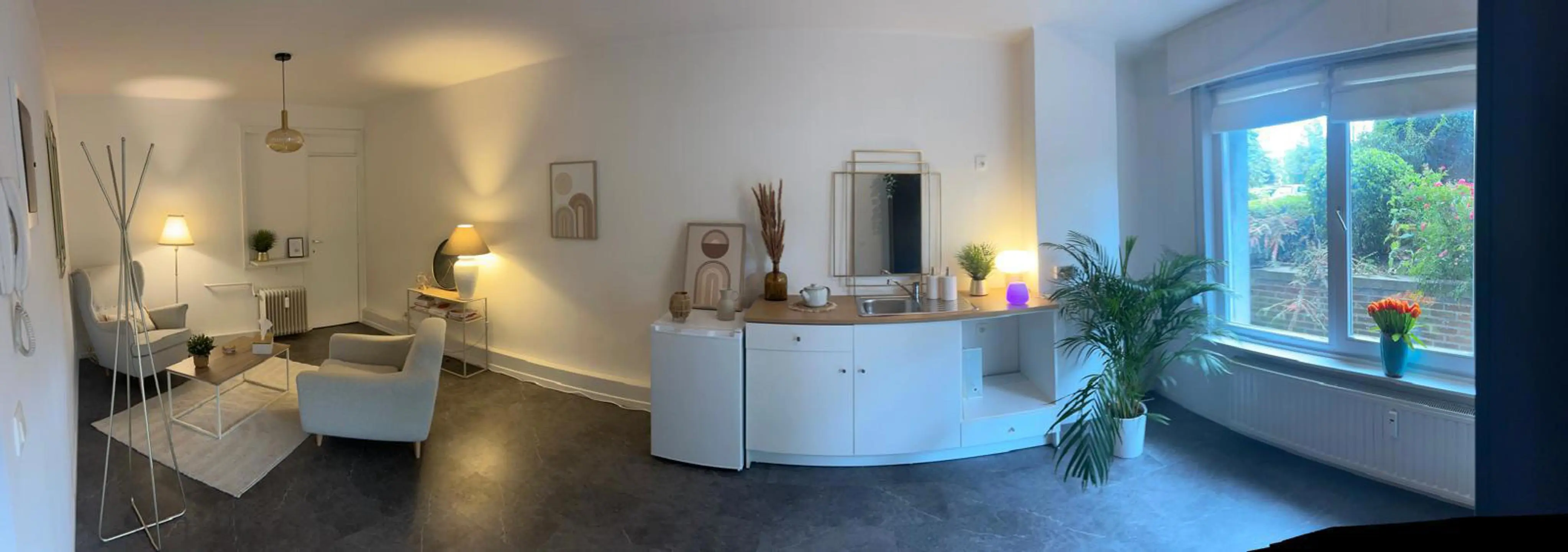 Il se compose une pièce principale avec cuisine semi-équipée de 25m² et d'une salle de douche de 5m².