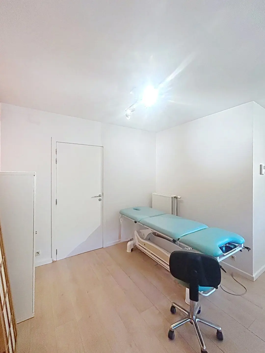 D’une superficie totale de ± 28 m², l’espace principal de +/- 22 m² est complété par une salle d’attente conviviale de ± 5 m² et un WC séparé avec lavabo.