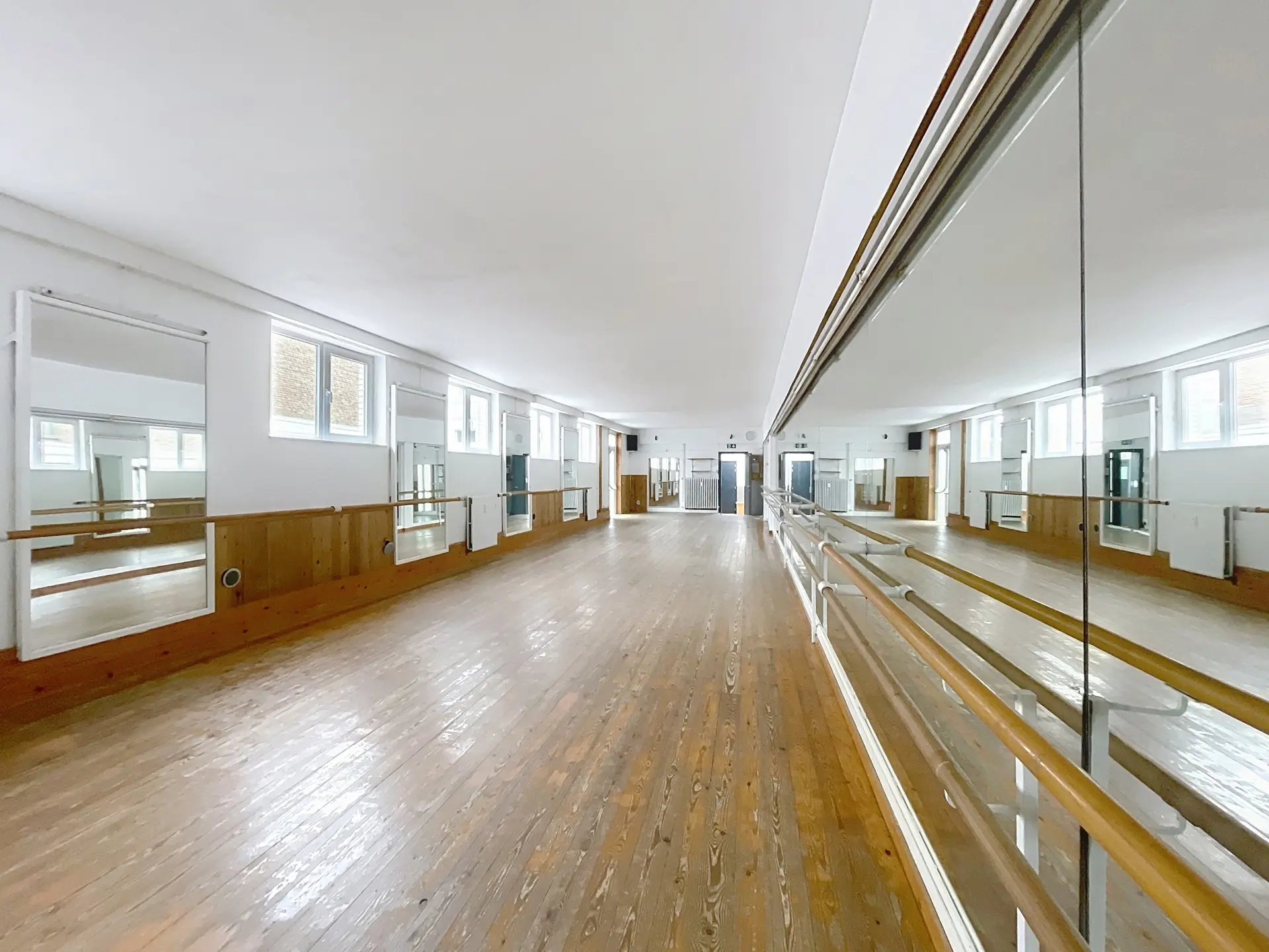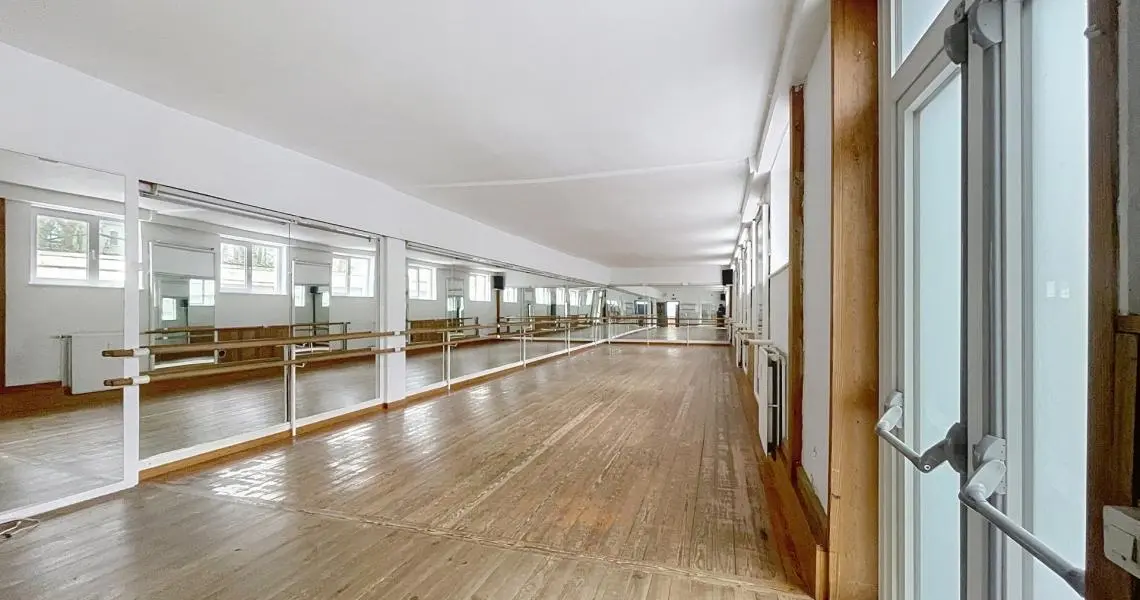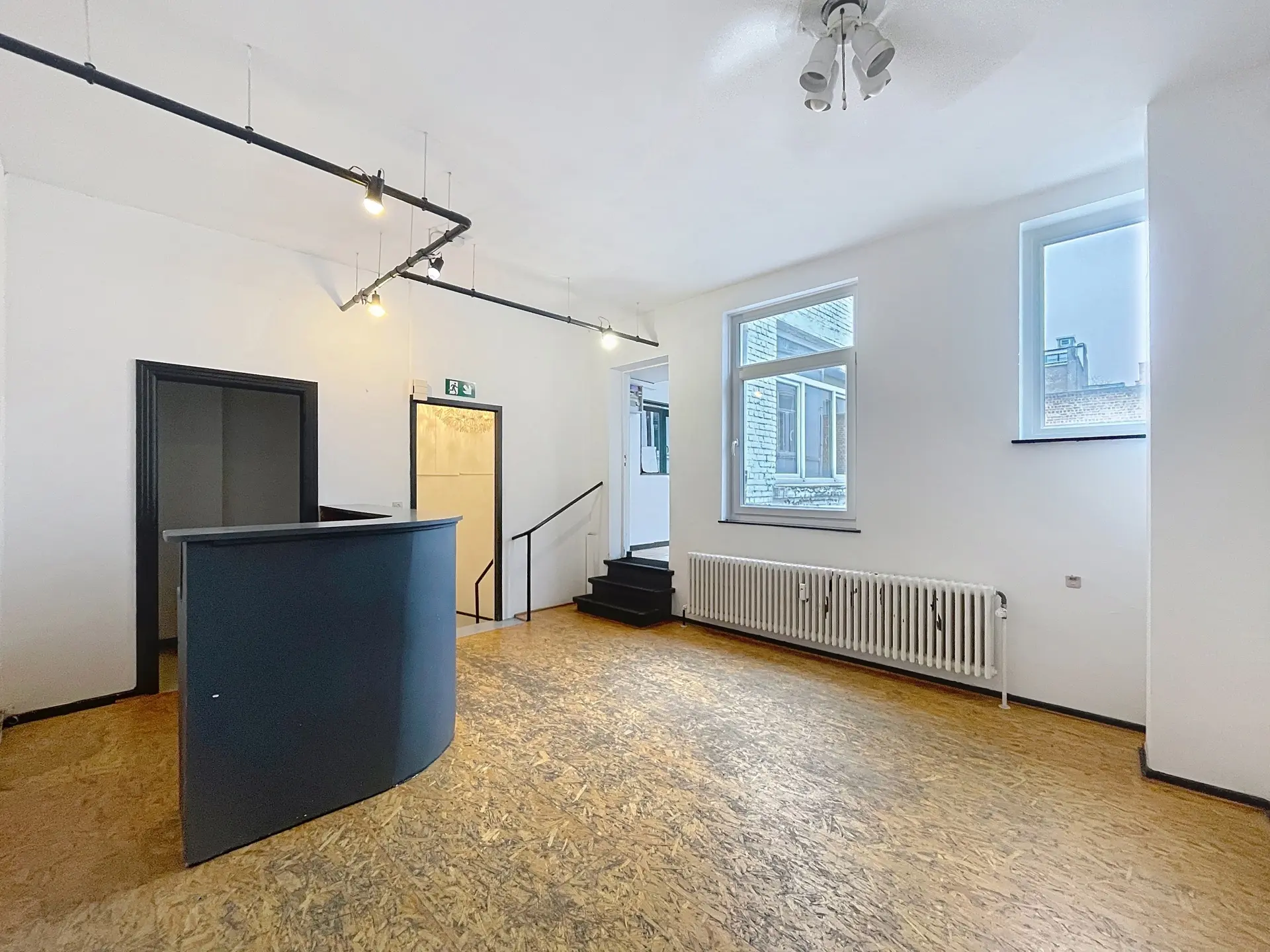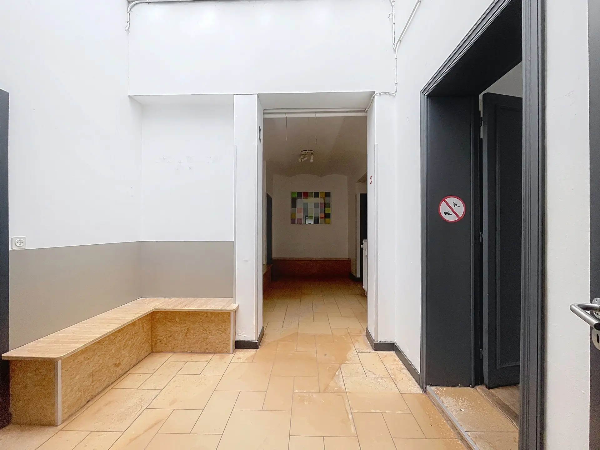 Le bien se compose de deux grandes salles principales, anciennement utilisées comme salles de danse, dont l’une se situe au rez-de-chaussée et développe une surface d’environ 79 m², tandis que la seconde, située au premier étage, offre une superficie d’environ 63 m². Ces espaces sont complétés par deux vestiaires de respectivement ± 4 m² et ± 10 m². Le rez-de-chaussée dispose également de deux toilettes séparées ainsi que d’une petite douche avec lavabo.