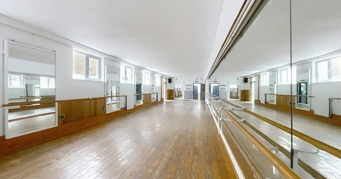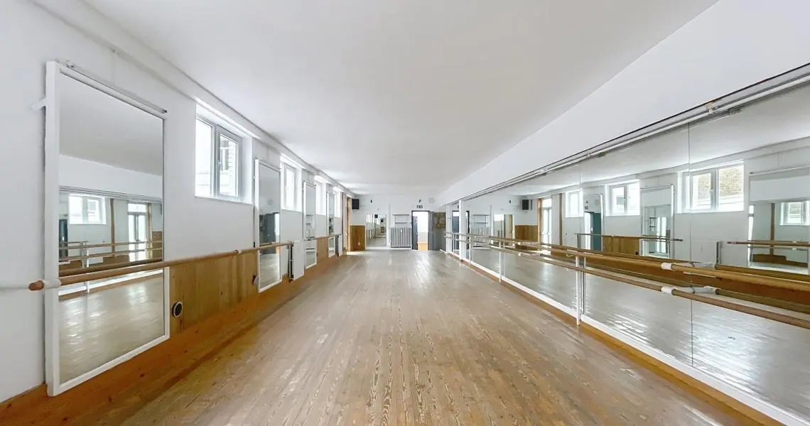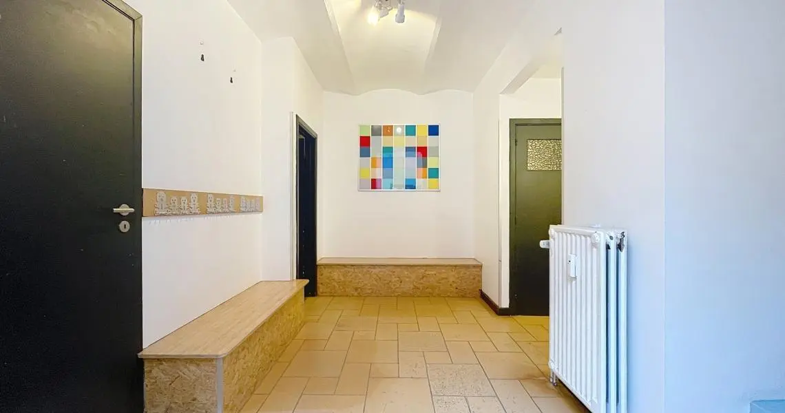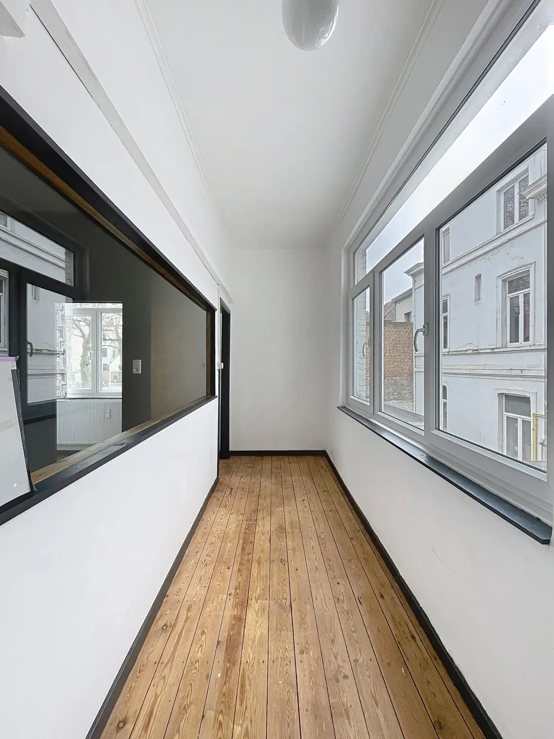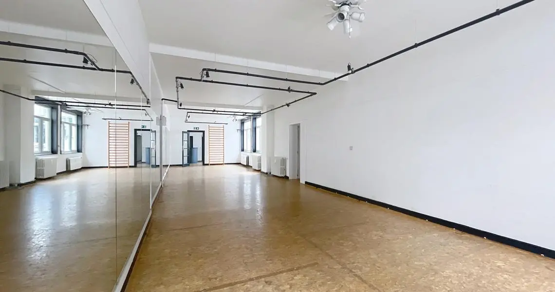 Le bien se compose de deux grandes salles principales, anciennement utilisées comme salles de danse, dont l’une se situe au rez-de-chaussée et développe une surface d’environ 79 m², tandis que la seconde, située au premier étage, offre une superficie d’environ 63 m². Ces espaces sont complétés par deux vestiaires de respectivement ± 4 m² et ± 10 m². Le rez-de-chaussée dispose également de deux toilettes séparées ainsi que d’une petite douche avec lavabo.