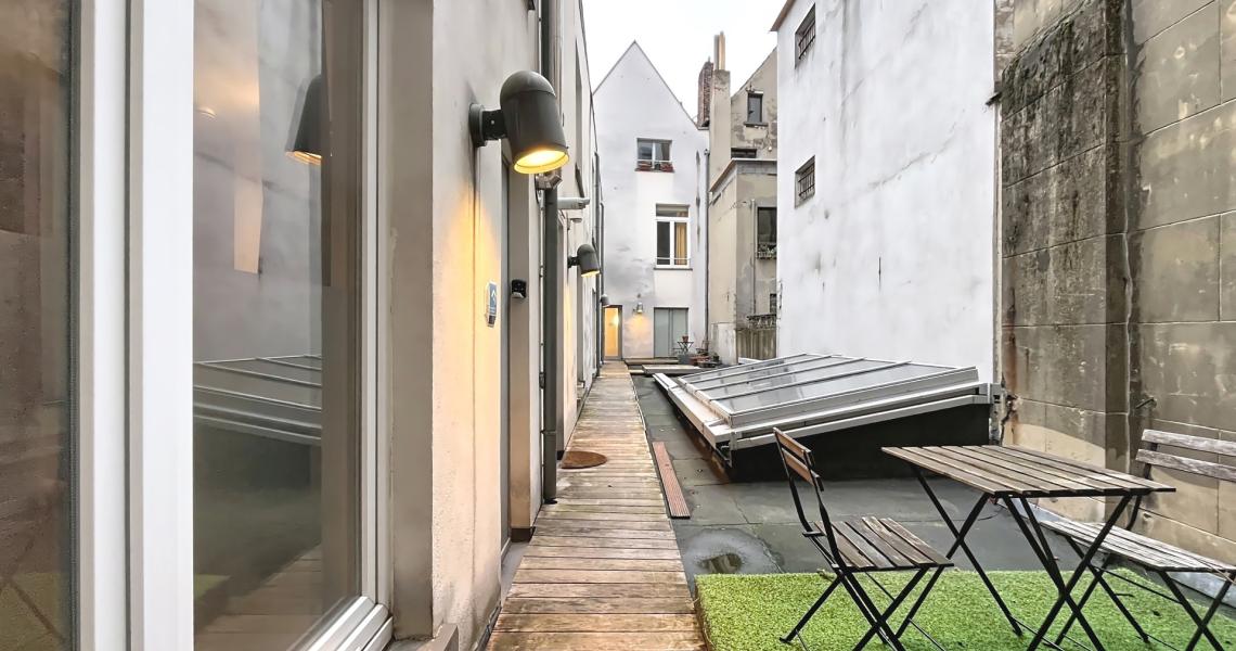 Vous trouverez également une superbe terrasse aménagée dans l'espace commun, accessible pour tous les résidents et profitant surtout à l'appartement.
