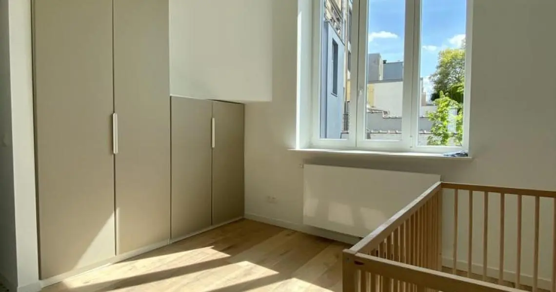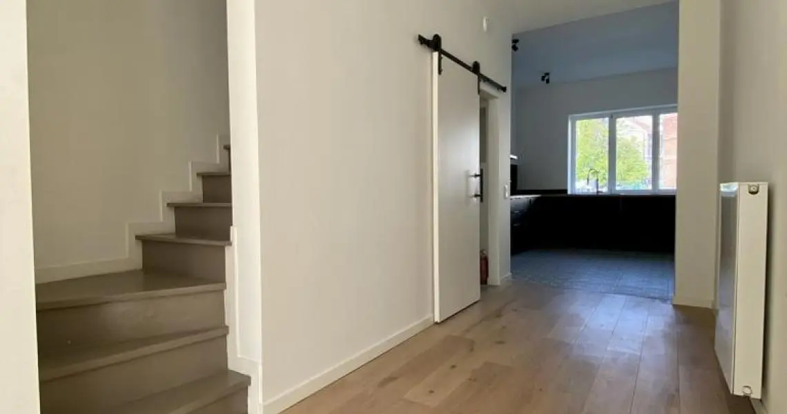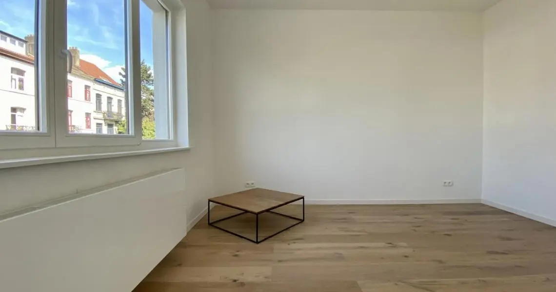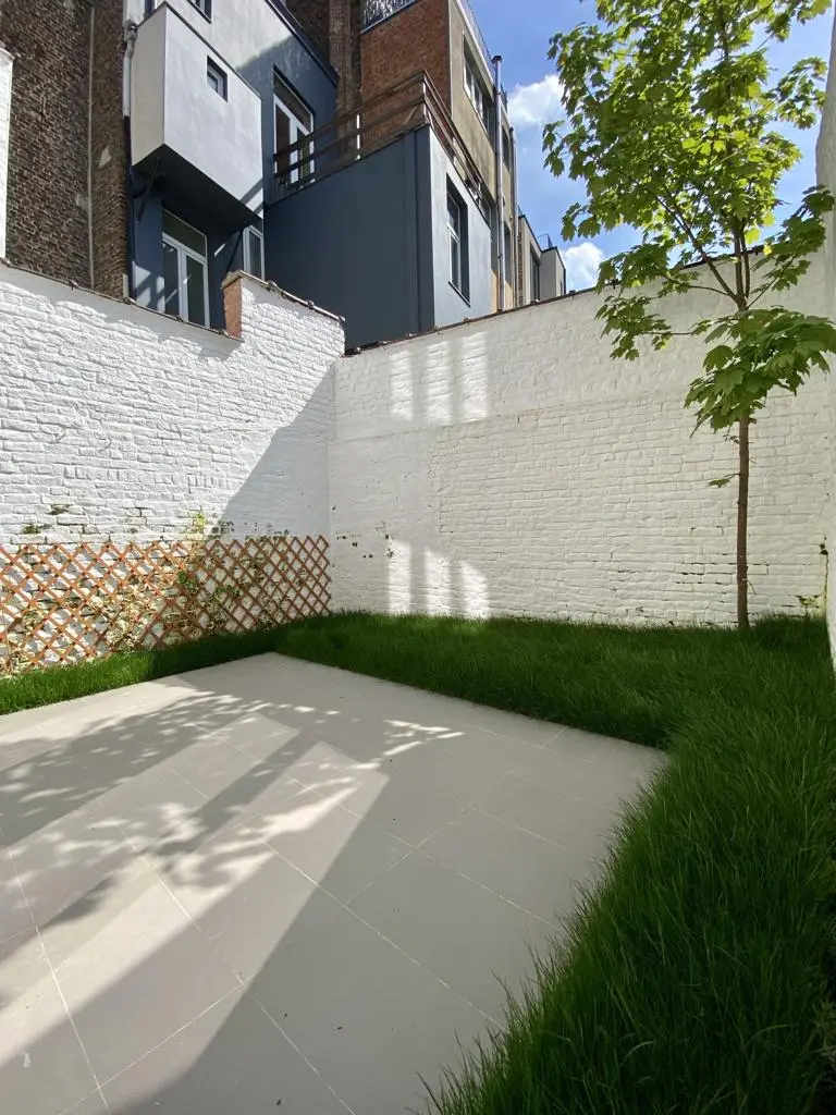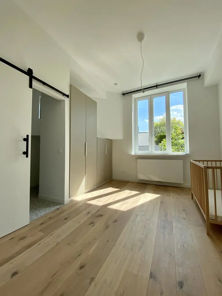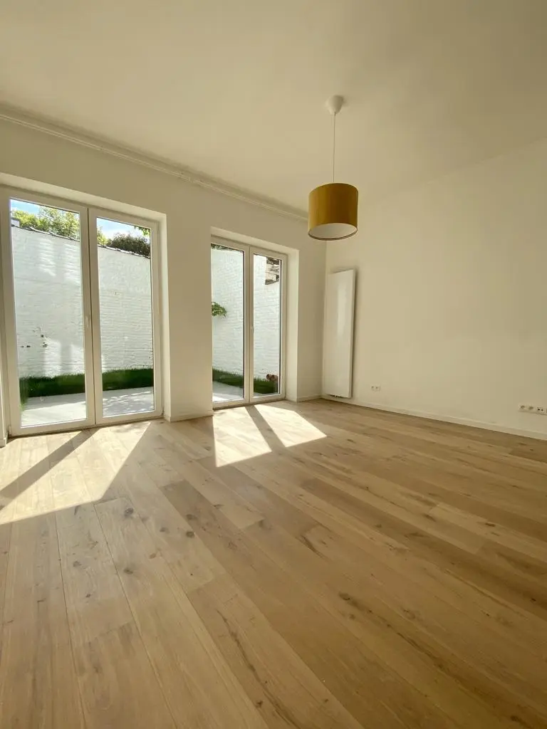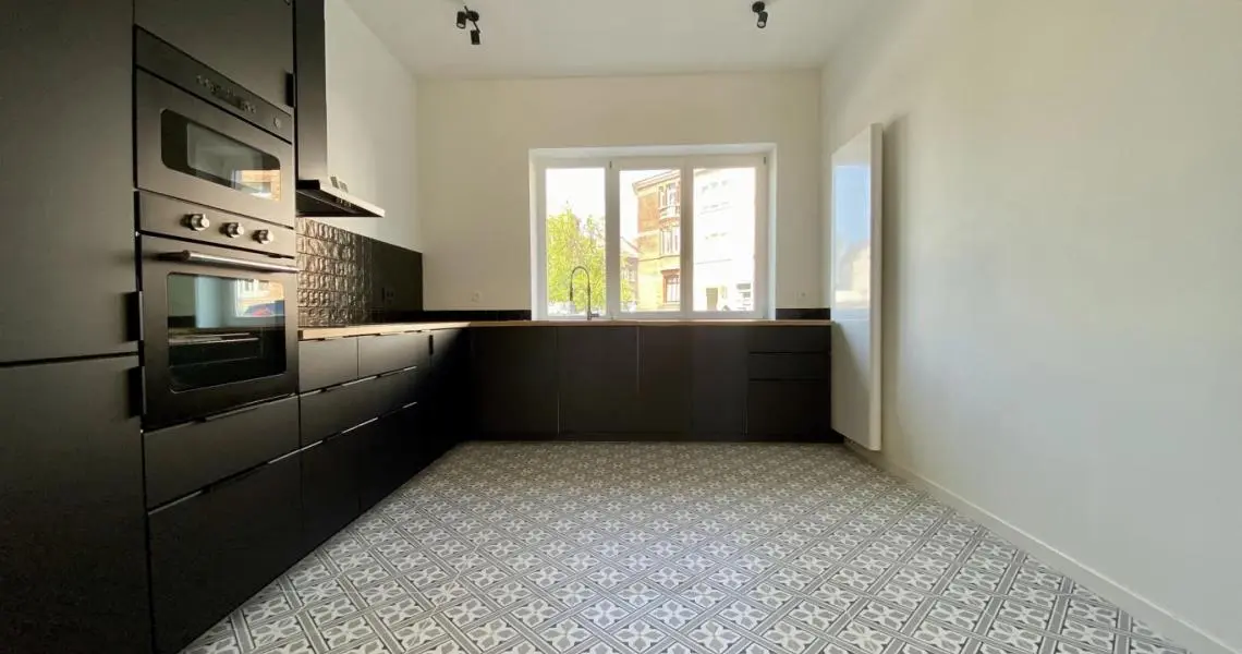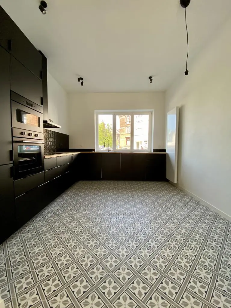 MYIMMO vous propose ce spacieux et lumineux duplex entièrement remis à neuf. Il s situe au rez-de-chaussée et au 1er étage d'une toute petite copropriété (2 lots) et offre une superficie totale de +/- 95m2. Il se compose, au rez-de-chaussée, d'un hall de vie, d'un agréable et lumineux séjour de +/- 20m2 donnant accès au jardin, d'une spacieuse cuisine (super-équipée) et salle à manger de +/- 15m2 , d'une buanderie et d'une toilette invités. Le deuxième étage se compose de deux grandes chambres de +/- 15m2 ayant chacune leur salle de bains, grand pallier permettant de nombreux rangement et d'une deuxième toilette séparée. L'appartement dispose d'une cave privative. Nouveaux chassis phoniques, chaudière individuelle, facades isolées => PEB D+. Proximité immédiates du Parc Duden, transports en commun, commerces, écoles,... 50€ de provision de charges (communs + eau). COUP DE COEUR GARANTI! D'autres biens disponibles sur www.myimmo.be