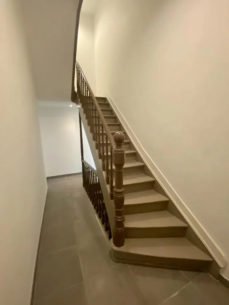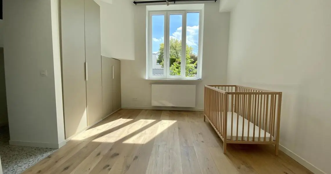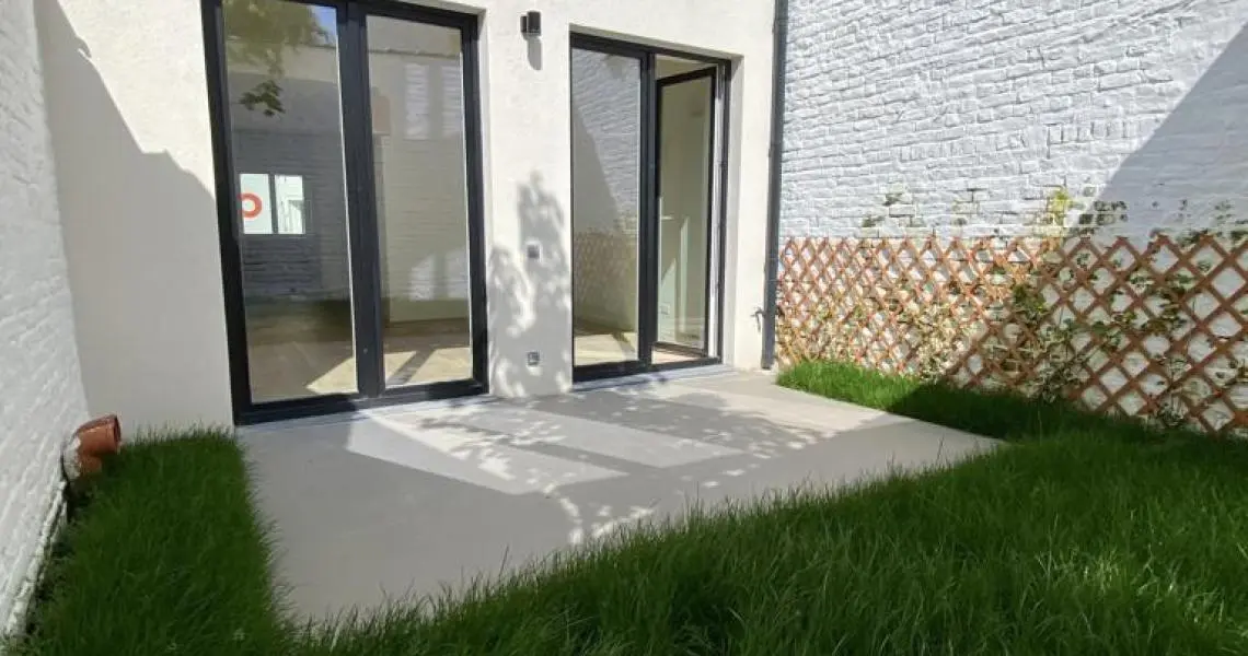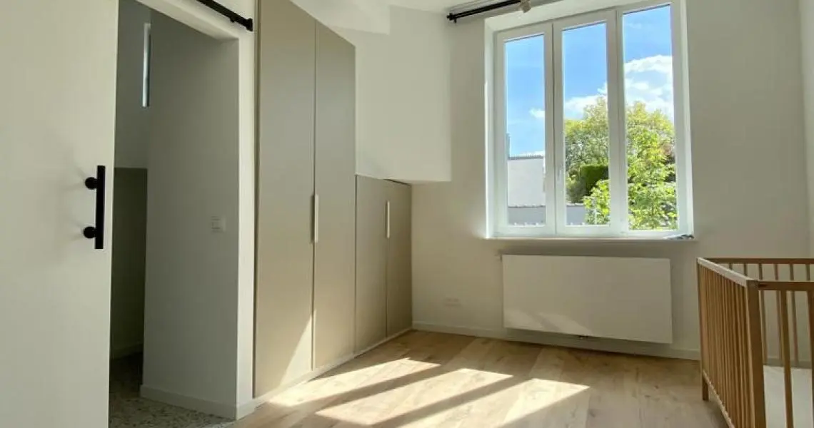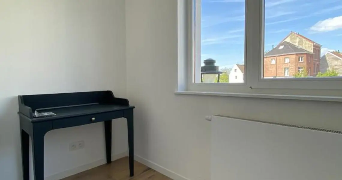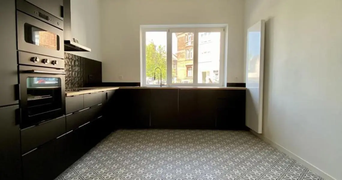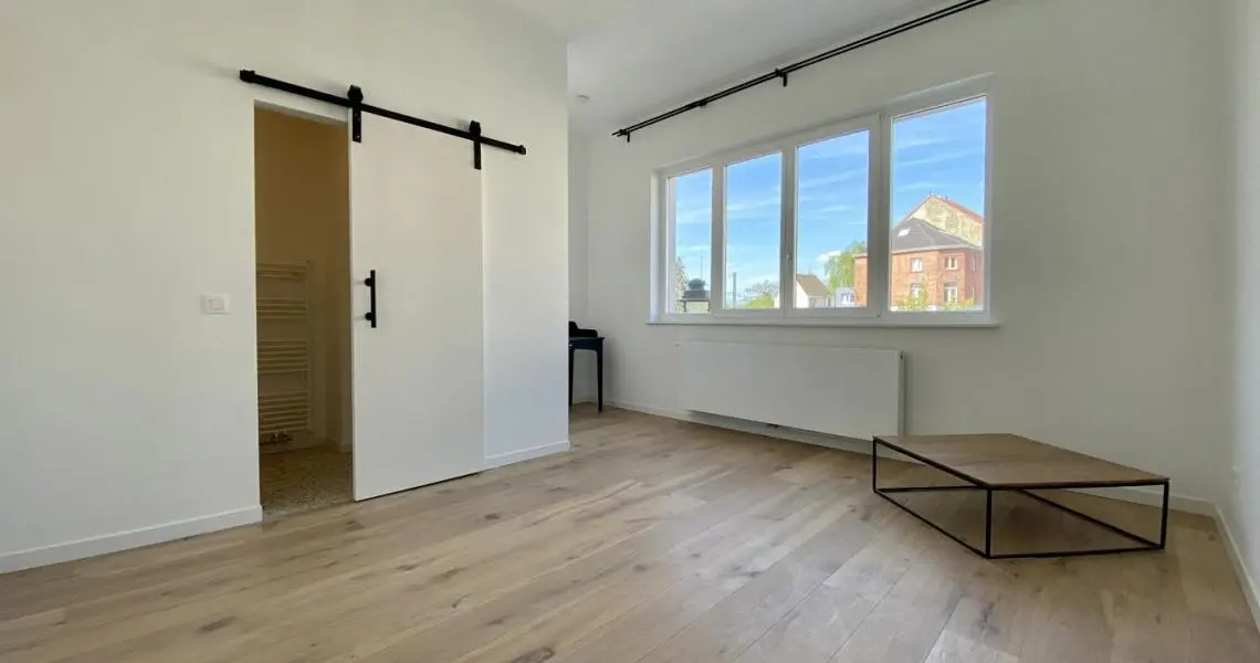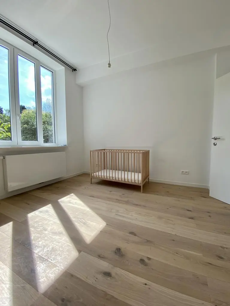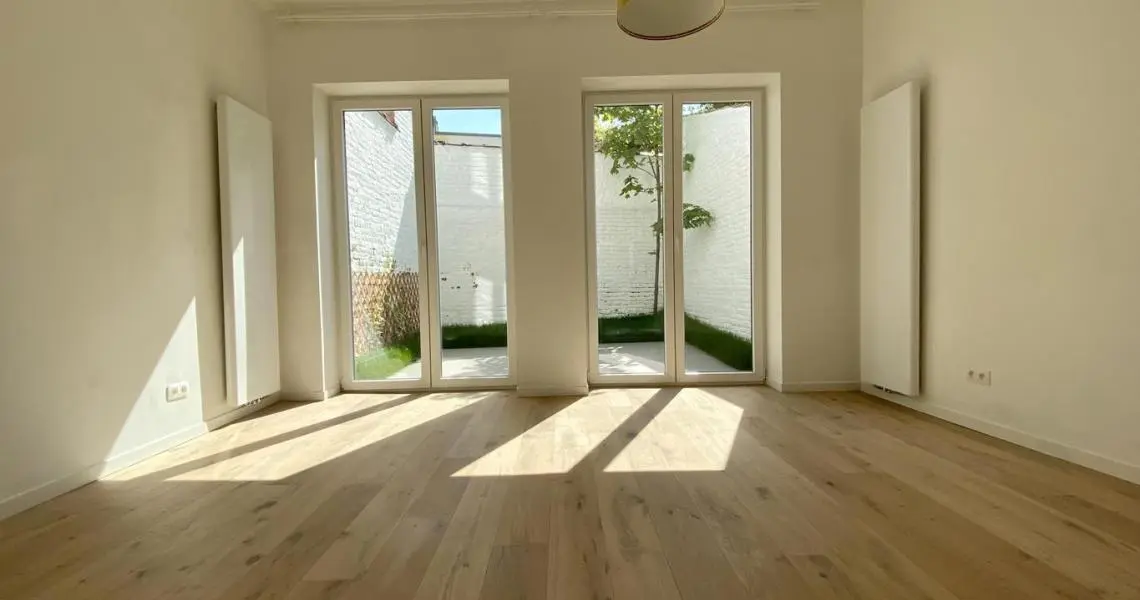 MYIMMO vous propose ce spacieux et lumineux duplex entièrement remis à neuf. Il s situe au rez-de-chaussée et au 1er étage d'une toute petite copropriété (2 lots) et offre une superficie totale de +/- 95m2. Il se compose, au rez-de-chaussée, d'un hall de vie, d'un agréable et lumineux séjour de +/- 20m2 donnant accès au jardin, d'une spacieuse cuisine (super-équipée) et salle à manger de +/- 15m2 , d'une buanderie et d'une toilette invités. Le deuxième étage se compose de deux grandes chambres de +/- 15m2 ayant chacune leur salle de bains, grand pallier permettant de nombreux rangement et d'une deuxième toilette séparée. L'appartement dispose d'une cave privative. Nouveaux chassis phoniques, chaudière individuelle, facades isolées => PEB D+. Proximité immédiates du Parc Duden, transports en commun, commerces, écoles,... 50€ de provision de charges (communs + eau). COUP DE COEUR GARANTI! D'autres biens disponibles sur www.myimmo.be