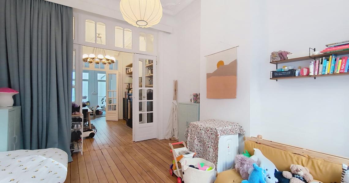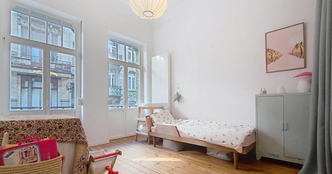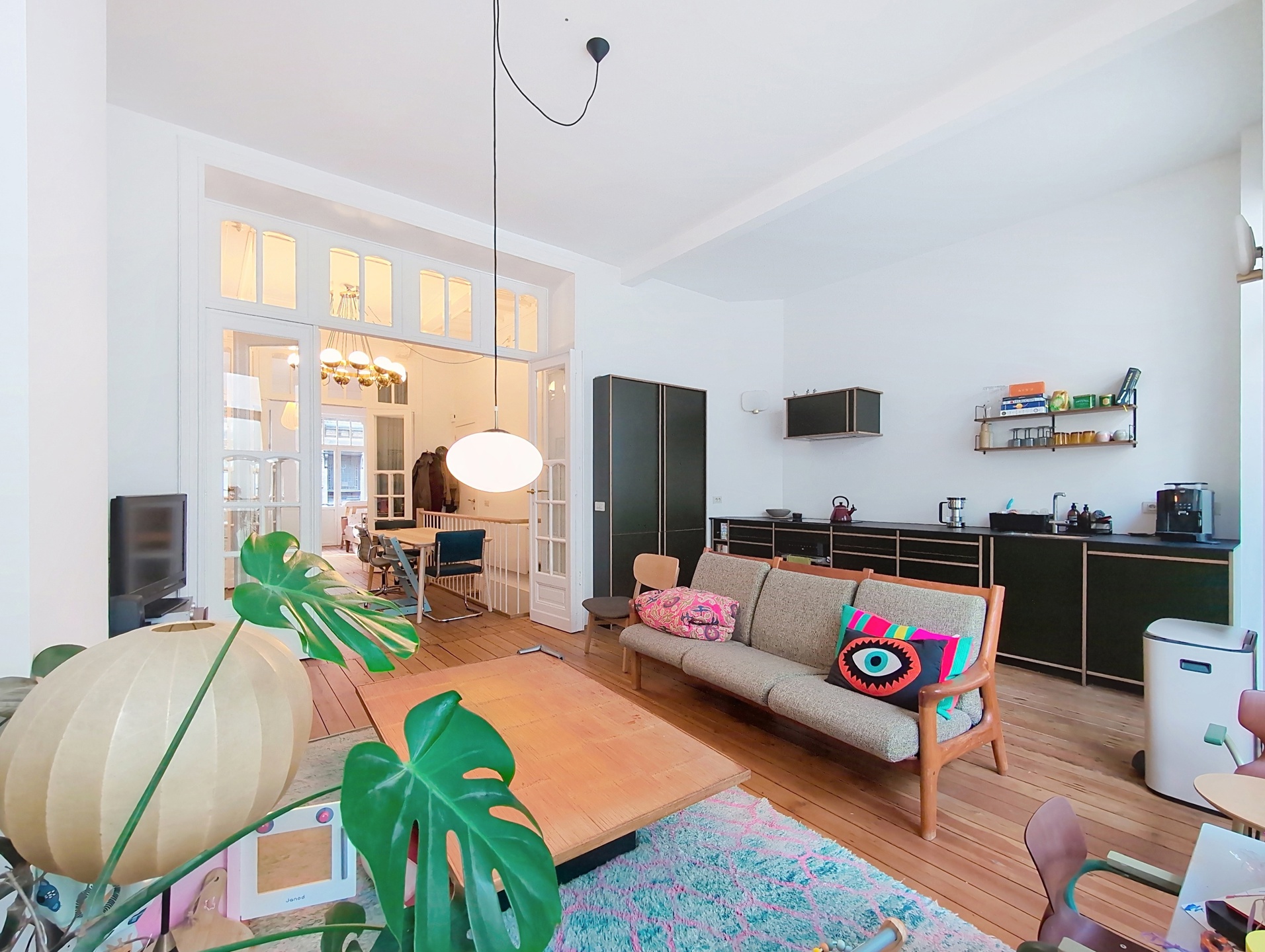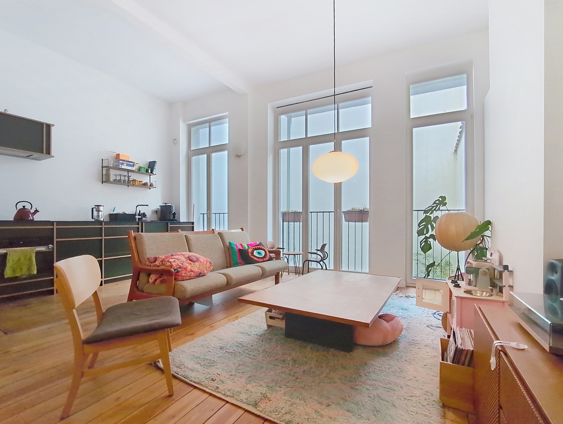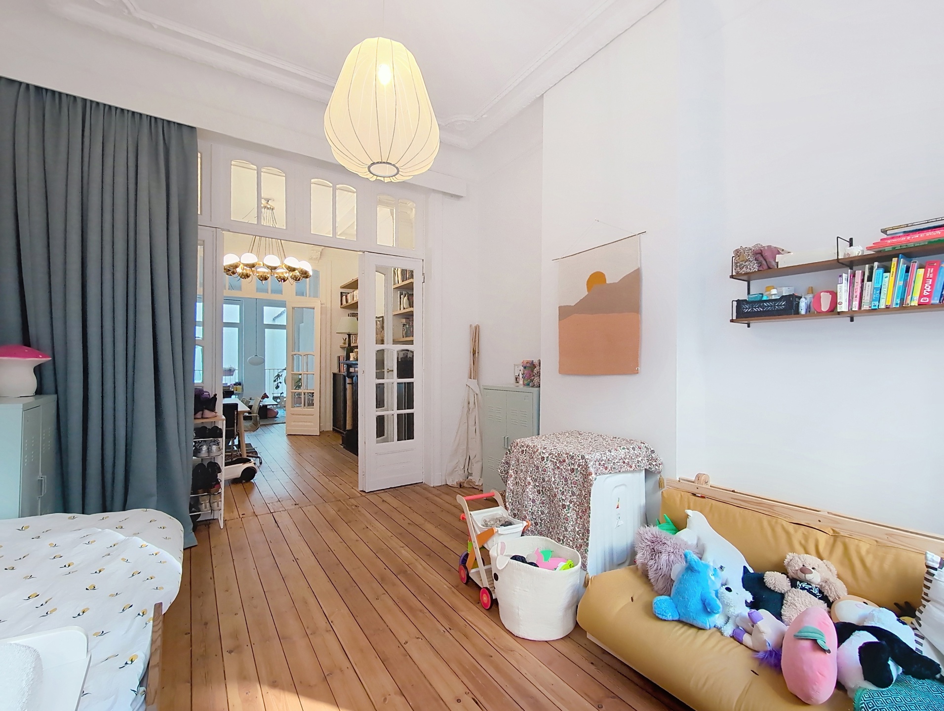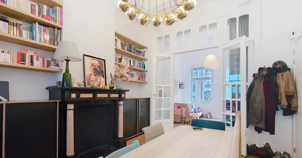 SAINT-GILLES (Prox. Place Van Meenen) – Superbe appartement duplex de style Art déco de ± 110 m², situé dans un quartier prisé, à proximité immédiate des commerces, bars, restaurants et transports.