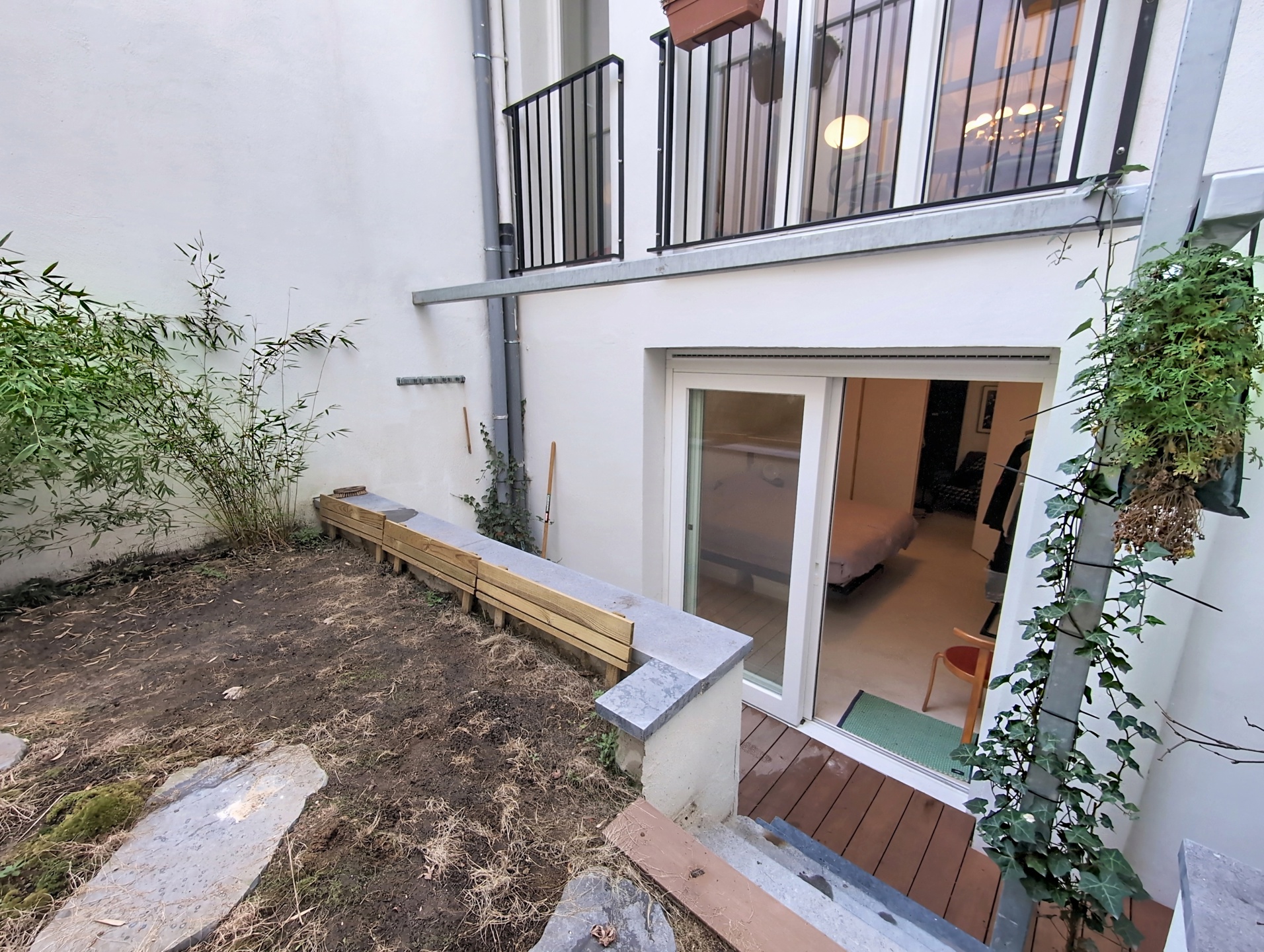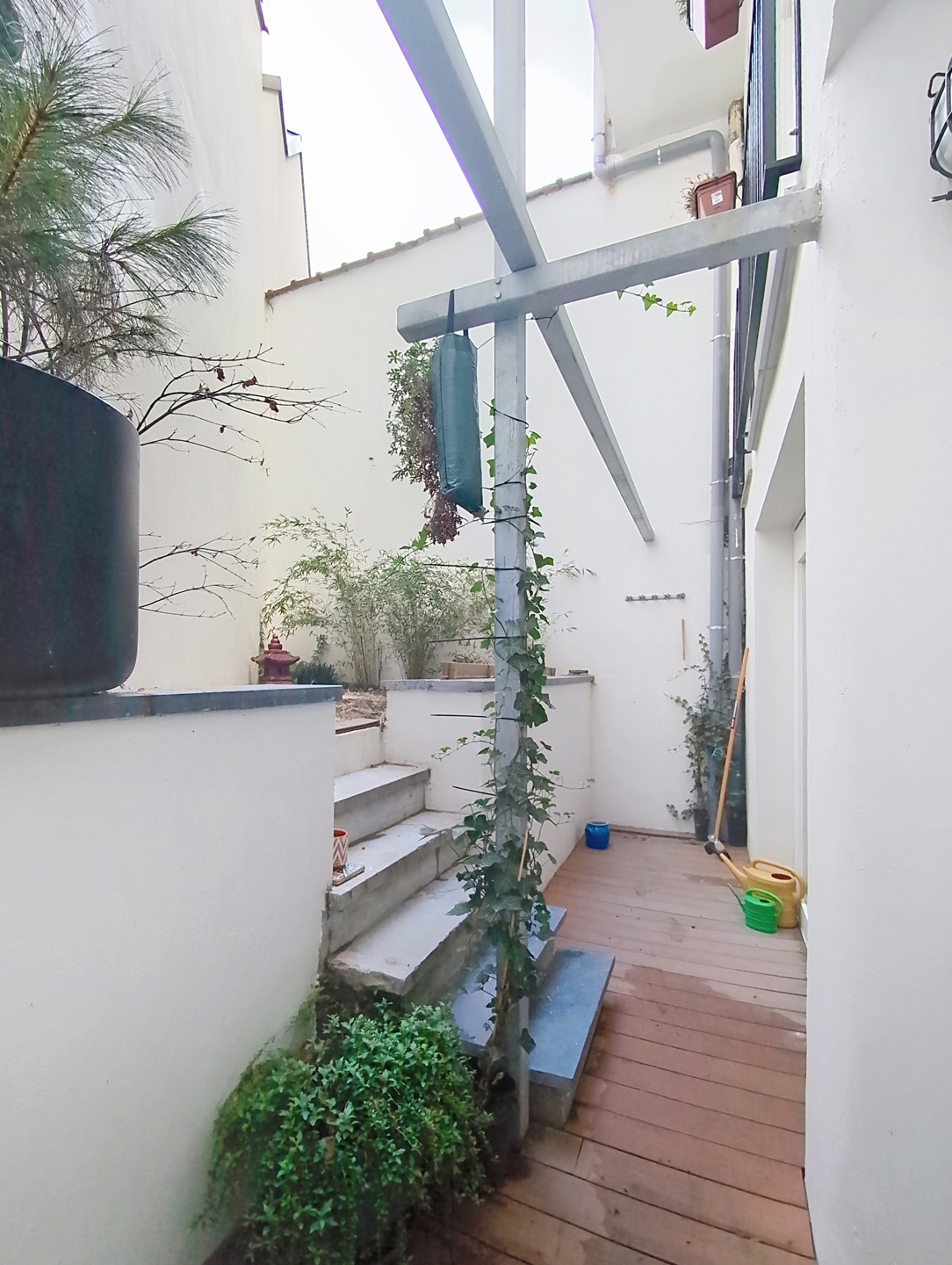 À l’extérieur, vous profiterez d’une cour privative agrémentée d’un petit jardinet, idéale pour les moments de détente ensoleillés.