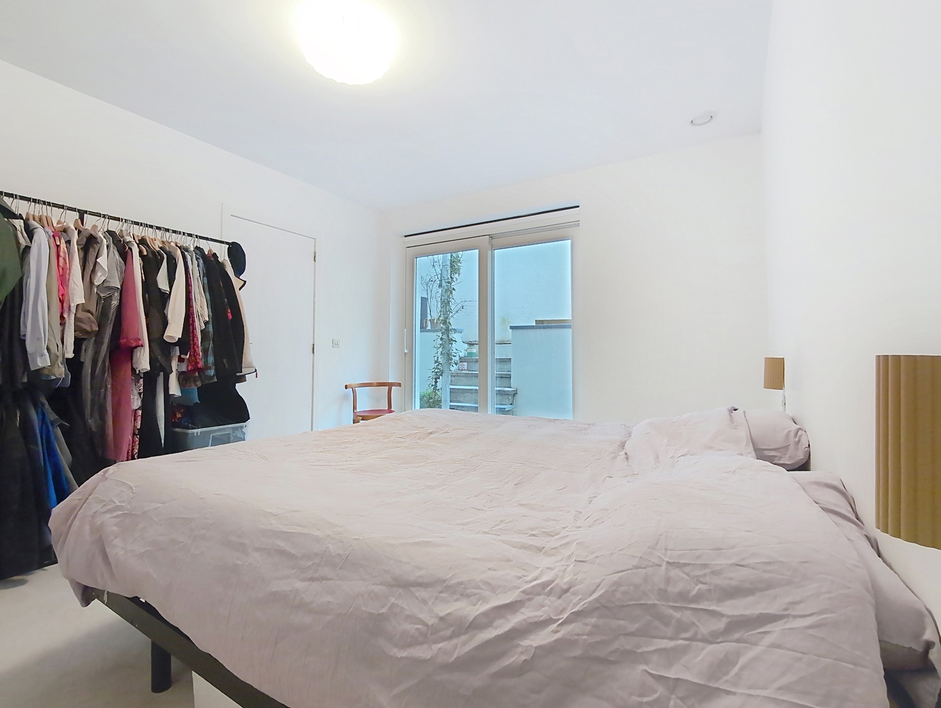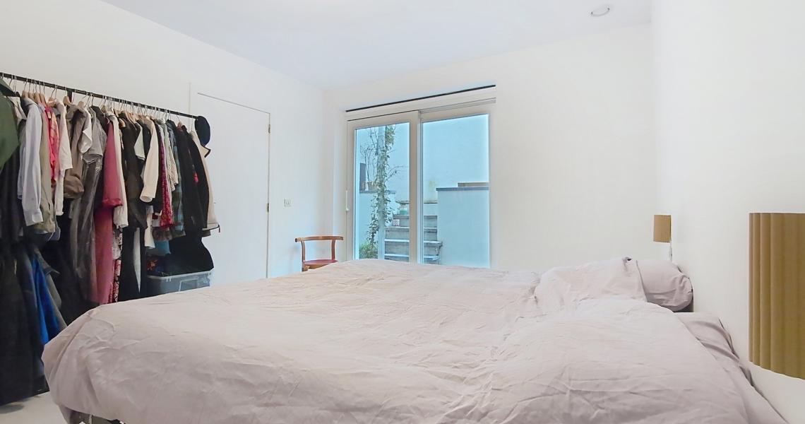 En souplex, la seconde chambre spacieuse de ± 14 m² bénéficie d’un accès vers l’extérieur, apportant lumière et ouverture.