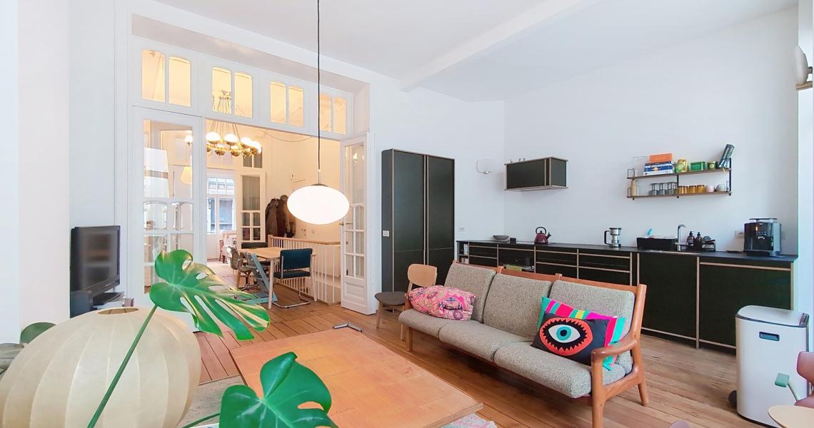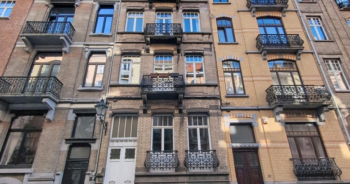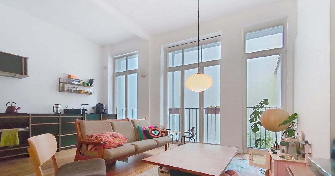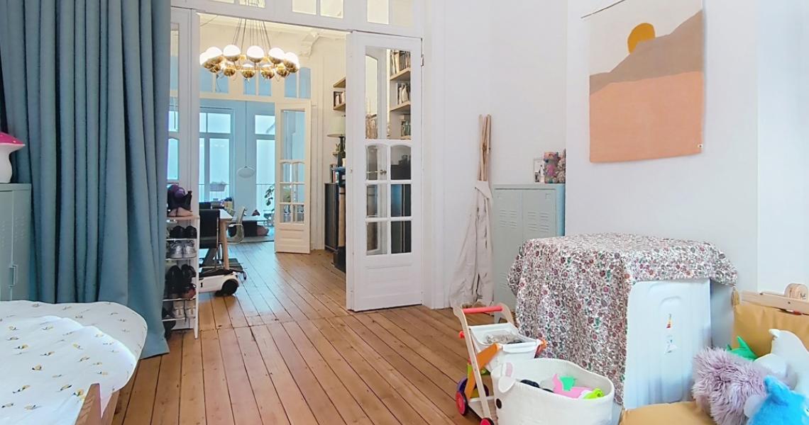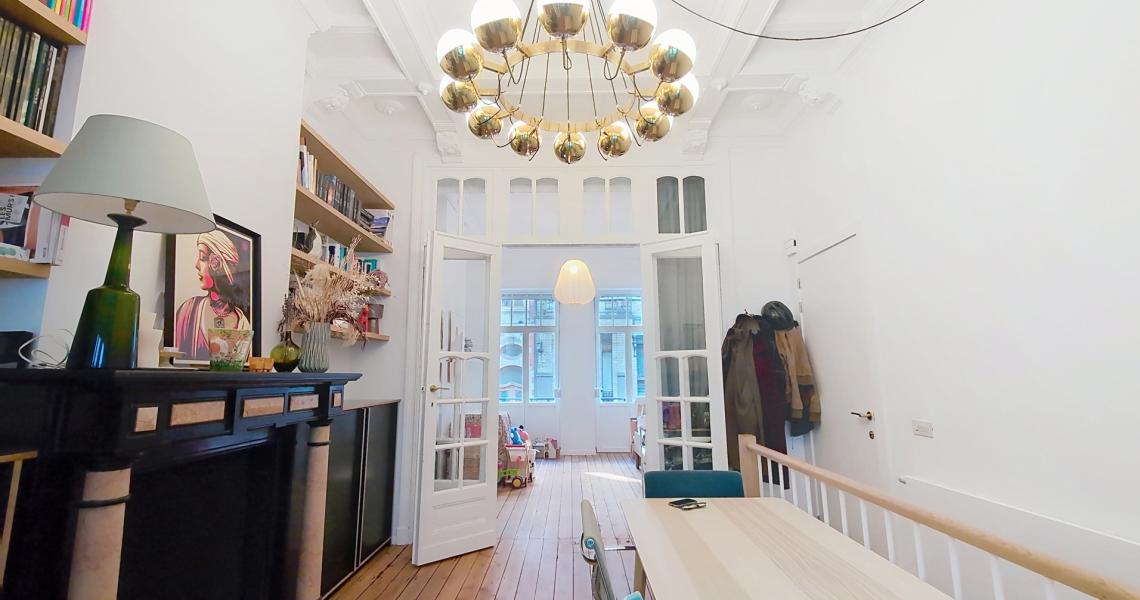 SAINT-GILLES (Prox. Place Van Meenen) – Superbe appartement duplex de style Art déco de ± 110 m², idéalement situé dans un quartier prisé, à proximité immédiate des commerces, bars, restaurants et transports.